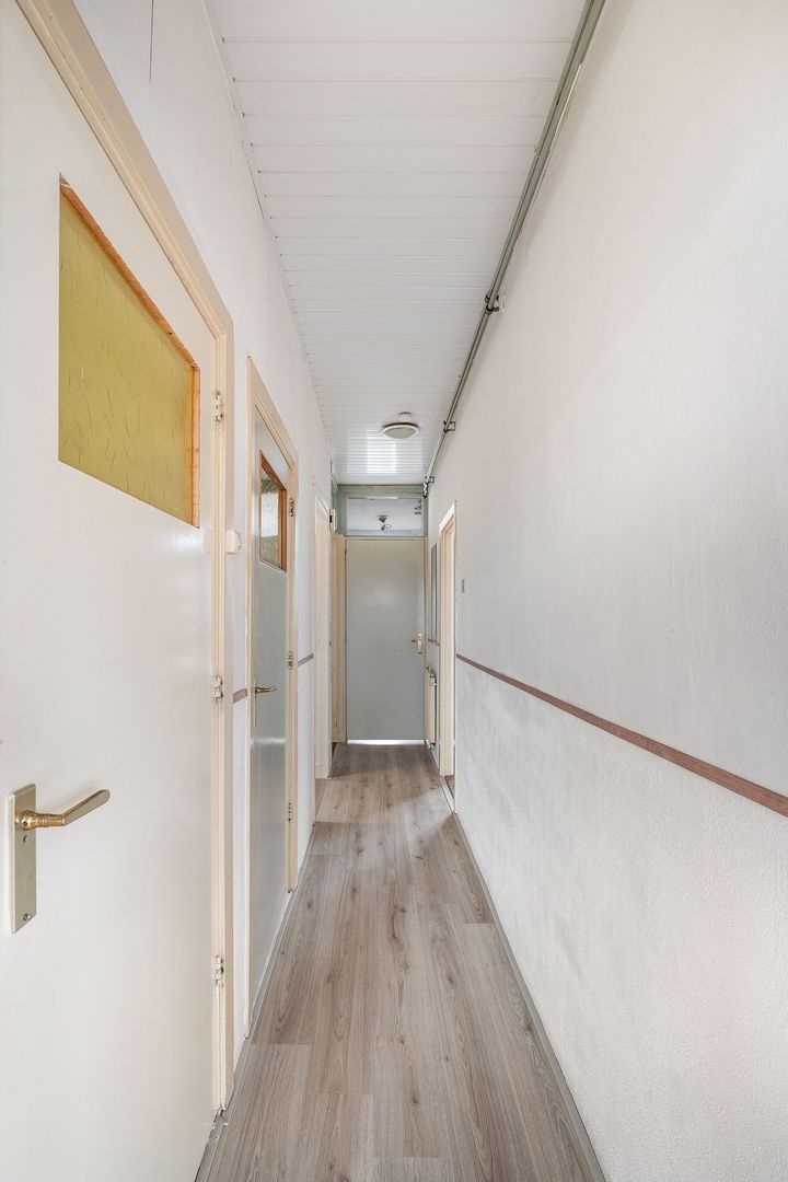 Woningentree via open portiek; gang met meterkast, bergkast; ruime woonkamer met sfeervolle erker en toog naar de bijgetrokken voorzijkamer; nette keuken voorzien van een gaskookplaat met openslaande deur naar het balkon; 1e slaapkamer aan de achterzijde; 2e slaapkamer aan de achterzijde met toegang tot het balkon; eenvoudige badkamer met douche en wasmachine aansluiting; separaat toilet;
