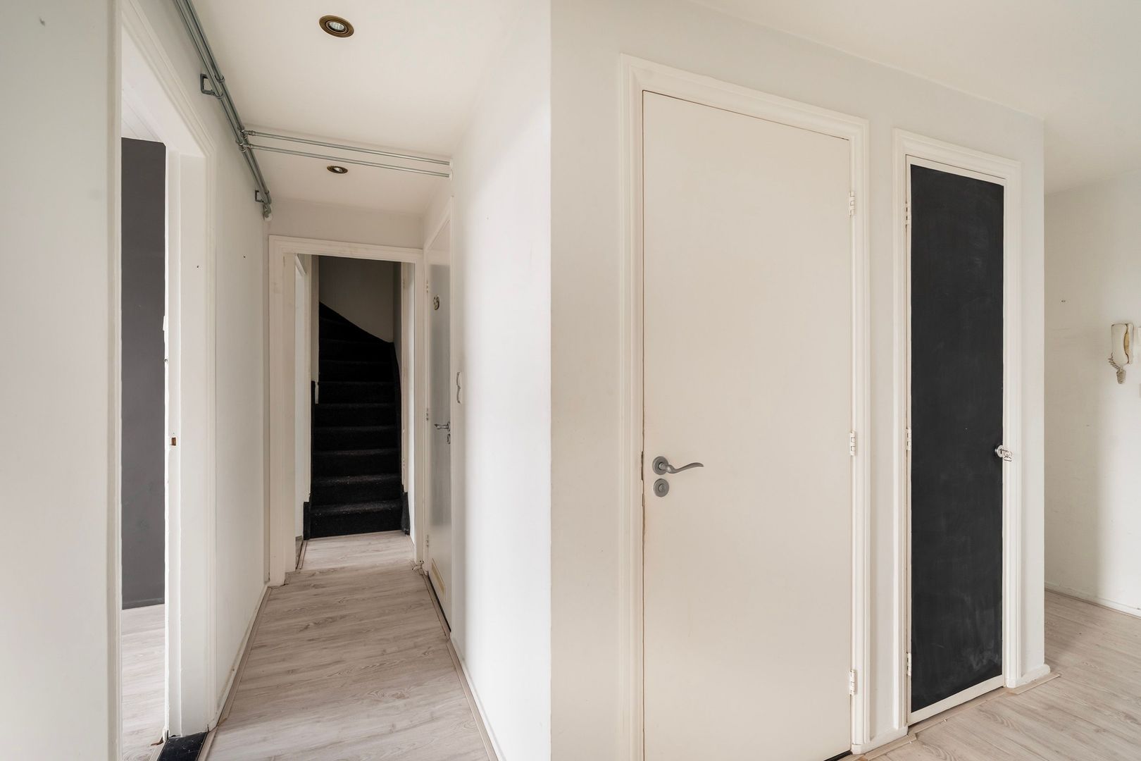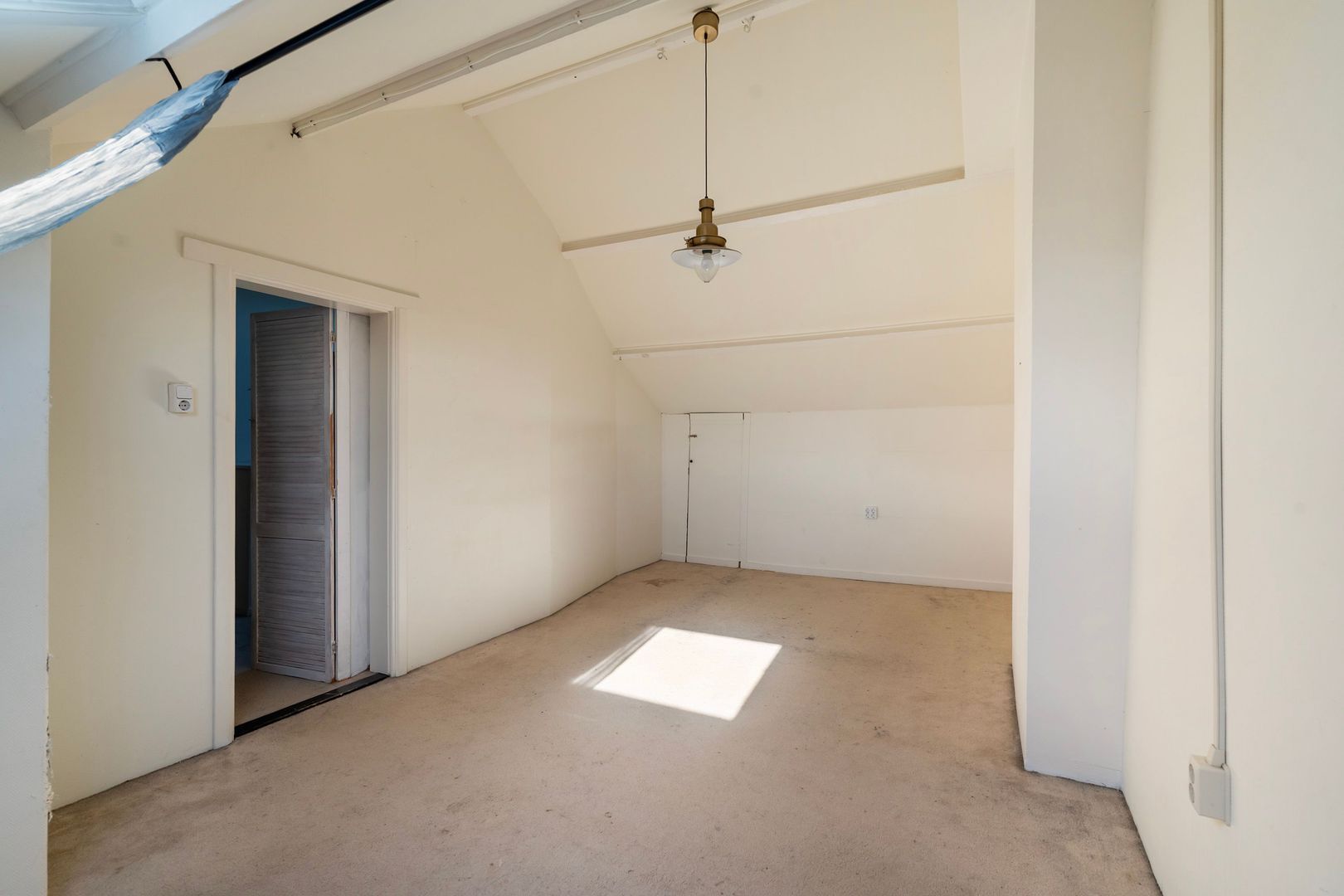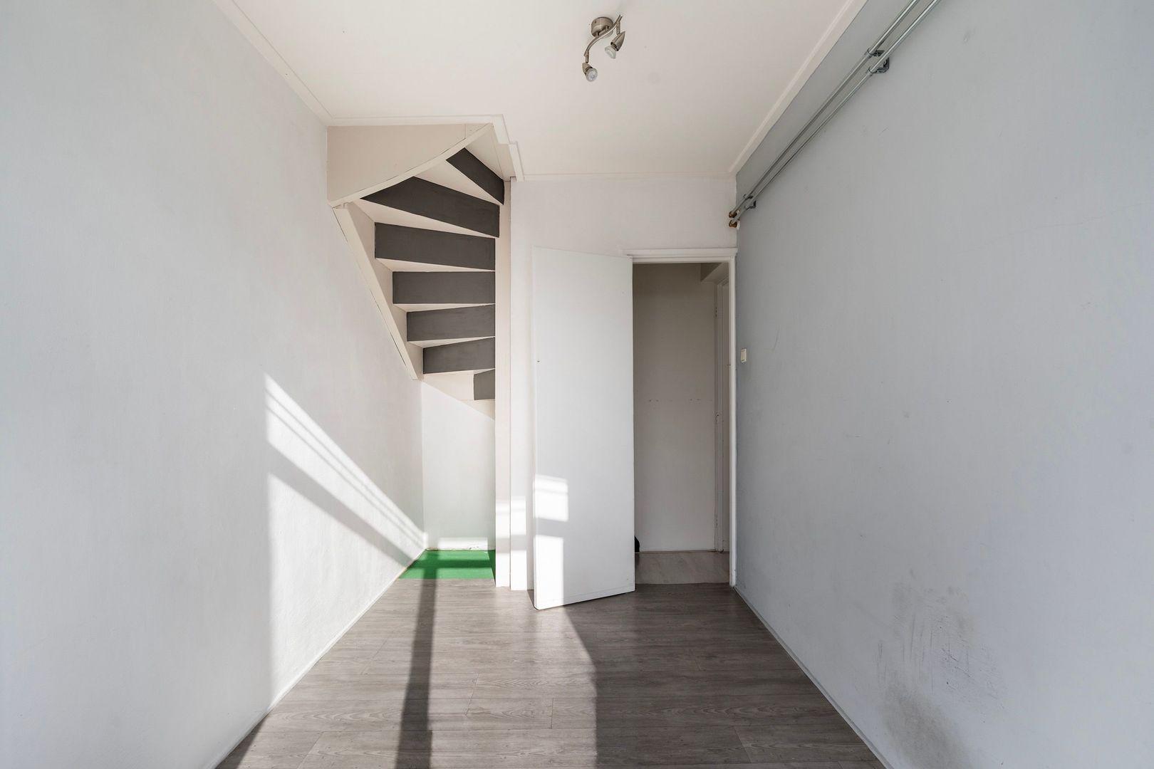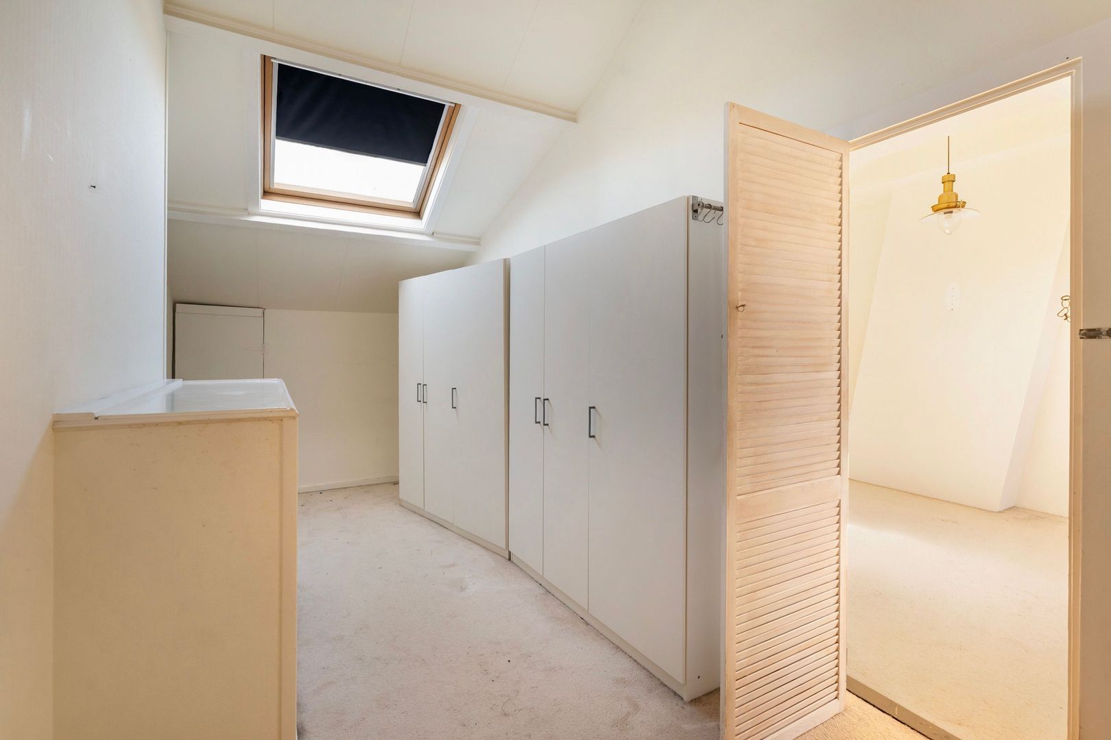 Trap vanuit de gang naar de overloop op de kapverdieping; grote overloop met opstelplaats cv-ketel en de aansluiting voor de wasmachine, dakraam, bergruimte en de mogelijkheid tot het realiseren van een extra slaapkamer; royale 4e slaapkamer met dakraam.