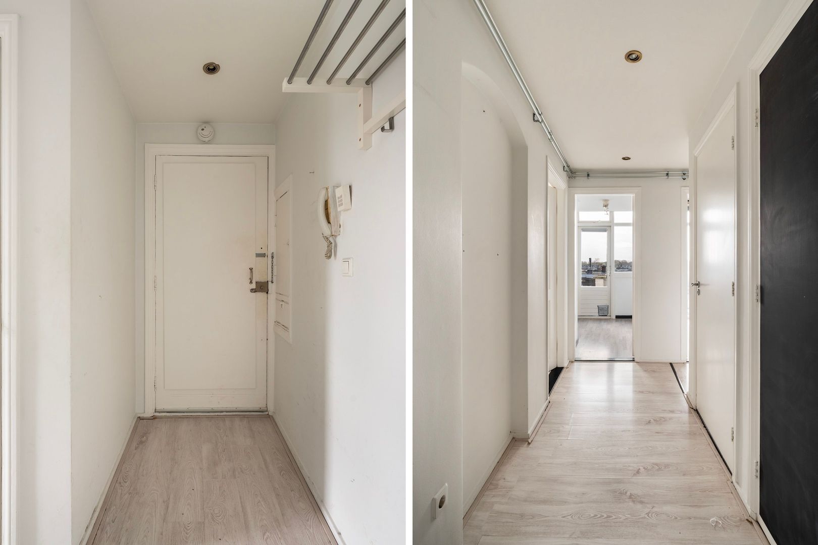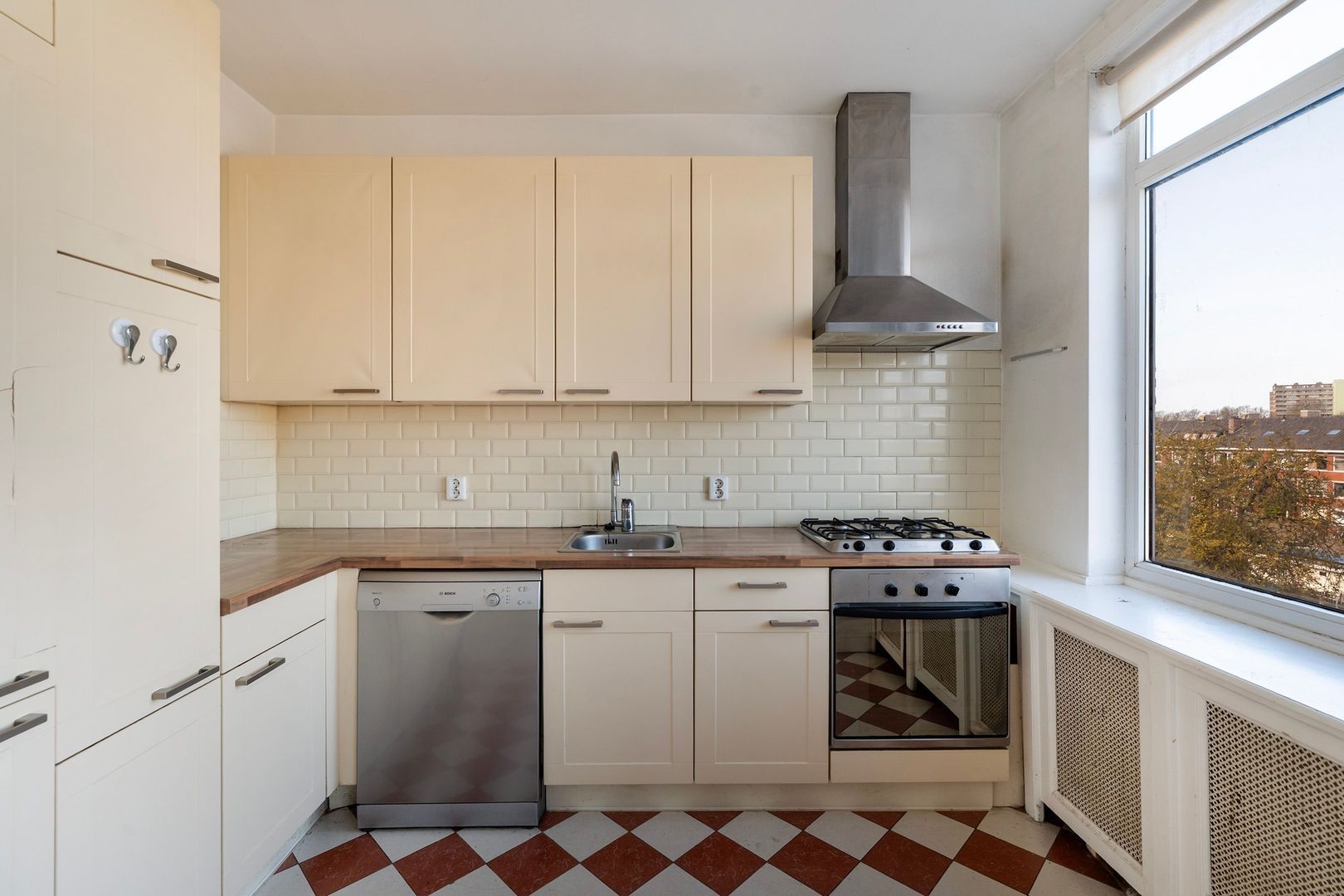 Afgesloten portiek met toegang tot de berging en trappenhuis naar de woningentree op de 3e etage; gang met meterkast; riante woonkamer met 4 vaste kasten, toegang tot het 1e balkon en een ruime open keuken voorzien van een gaskookplaat, afzuigkap, oven en een koel-vriescombinatie; 1e slaapkamer aan de achterzijde met toegang tot het 1e balkon; 2e slaapkamer; 3e slaapkamer met toegang tot het 2e balkon; eenvoudige netjes betegelde badkamer met douche en wastafelmeubel; separaat toilet;