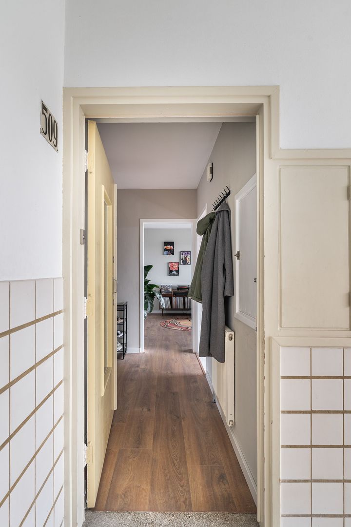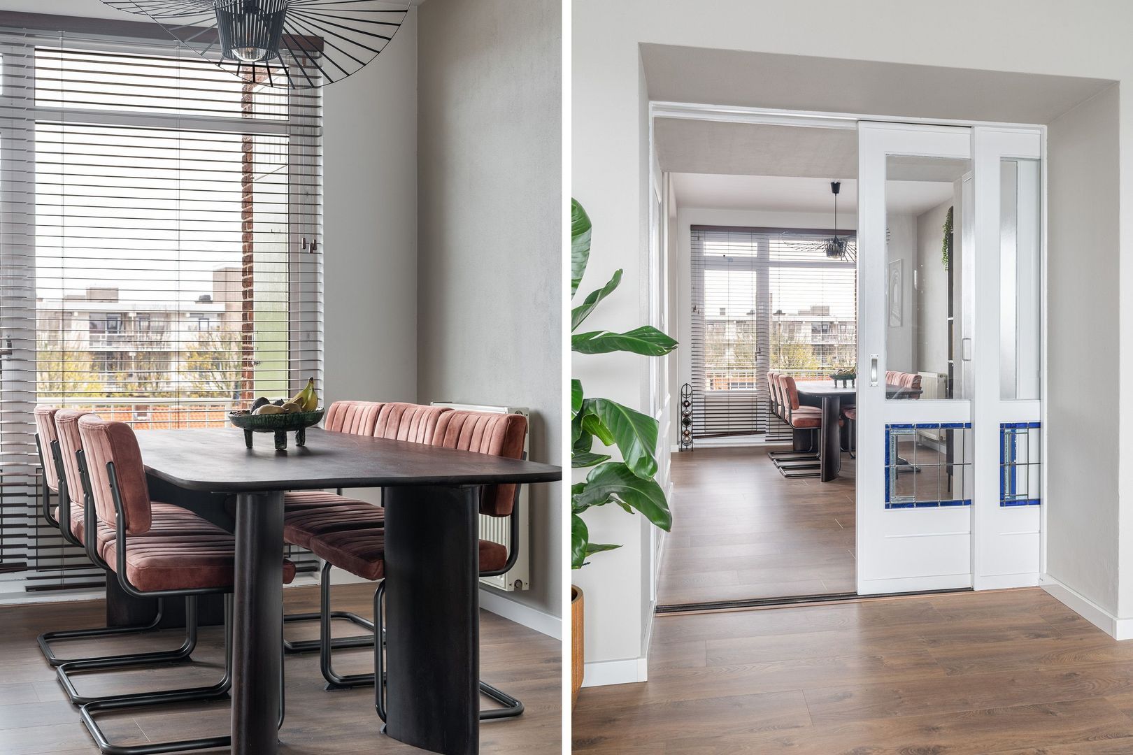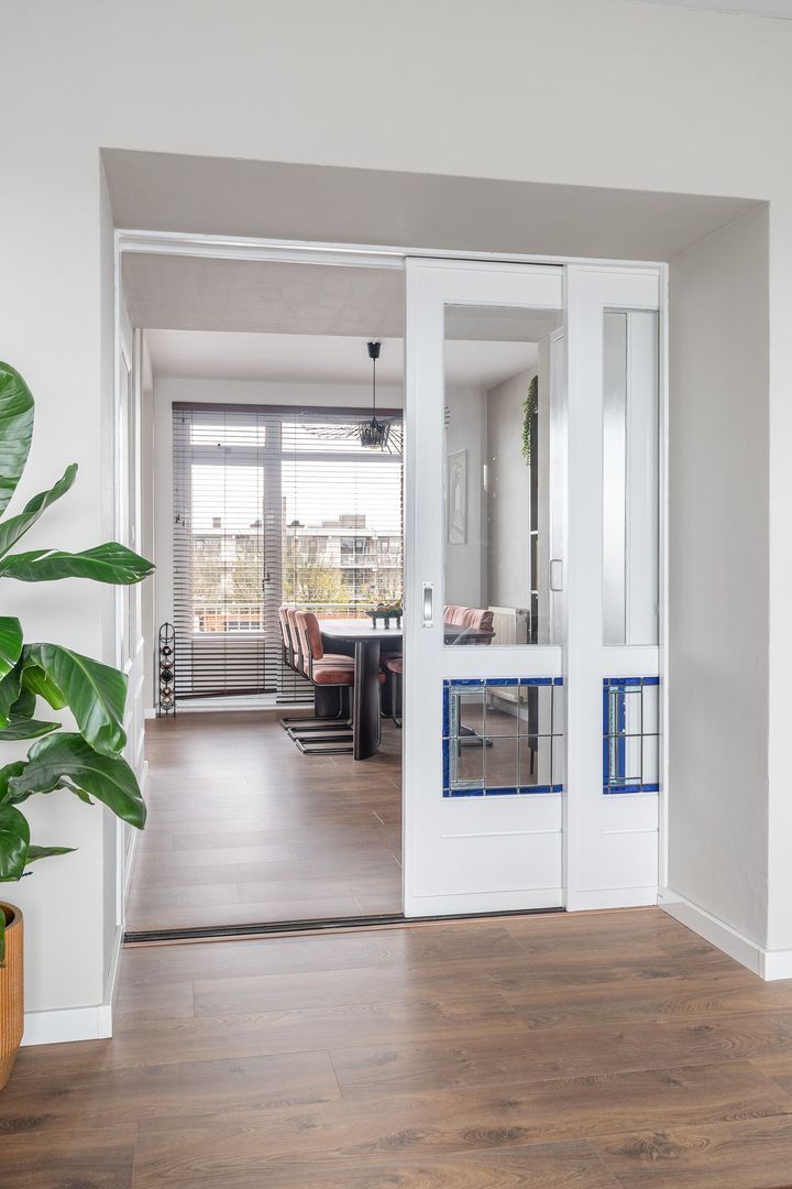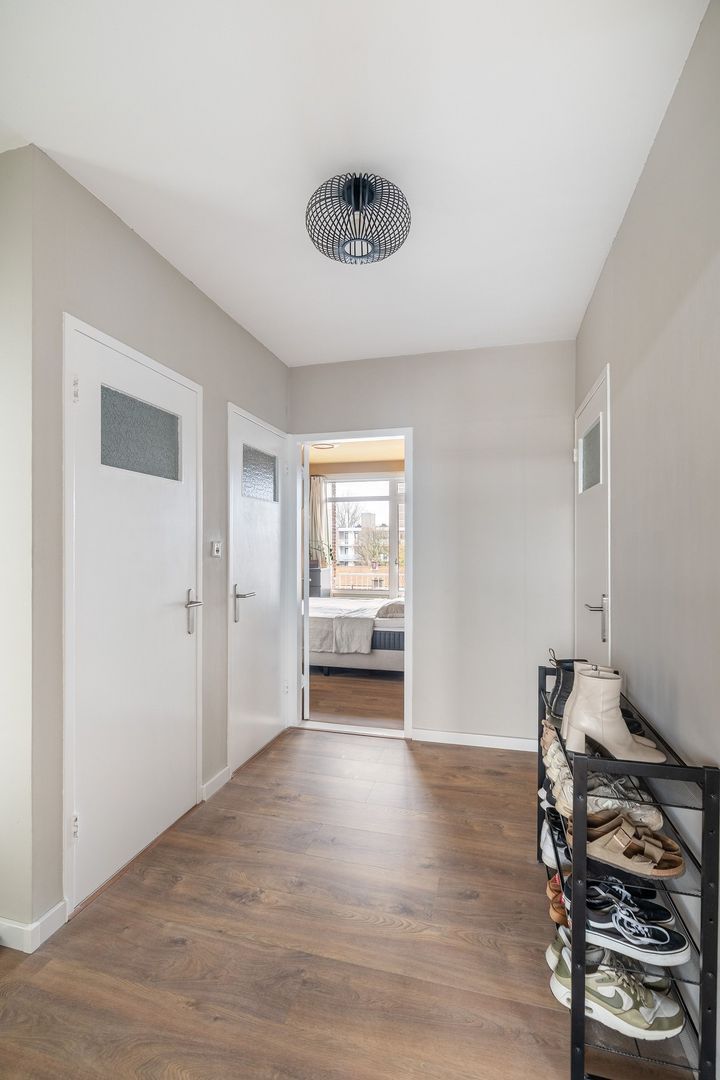 Afgesloten entree met trappenhuis naar de berging in de onderbouw en woningentree op de 3e etage; grote hal met een vaste kast voorzien van de cv-opstelling en de wasmachineaansluiting; riante woonkamer en suite met vaste kasten, een sfeervolle schuifseparatie en toegang tot het balkon; moderne open keuken in hoekopstelling met een inductiekookplaat, afzuigkap, oven, vaatwasser, koel-vriescombinatie en toegang tot het balkon; 1e slaapkamer aan de voorzijde met een vaste kast; 2e slaapkamer aan de achterzijde met toegang tot het balkon; nette badkamer met douche en wastafelmeubel; separaat toilet met fonteintje;