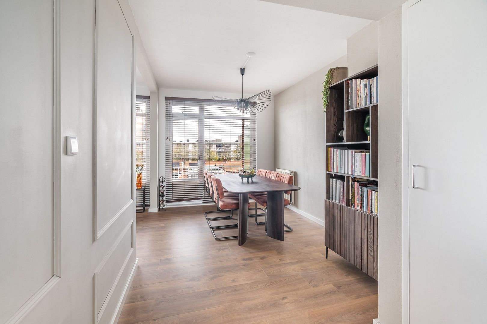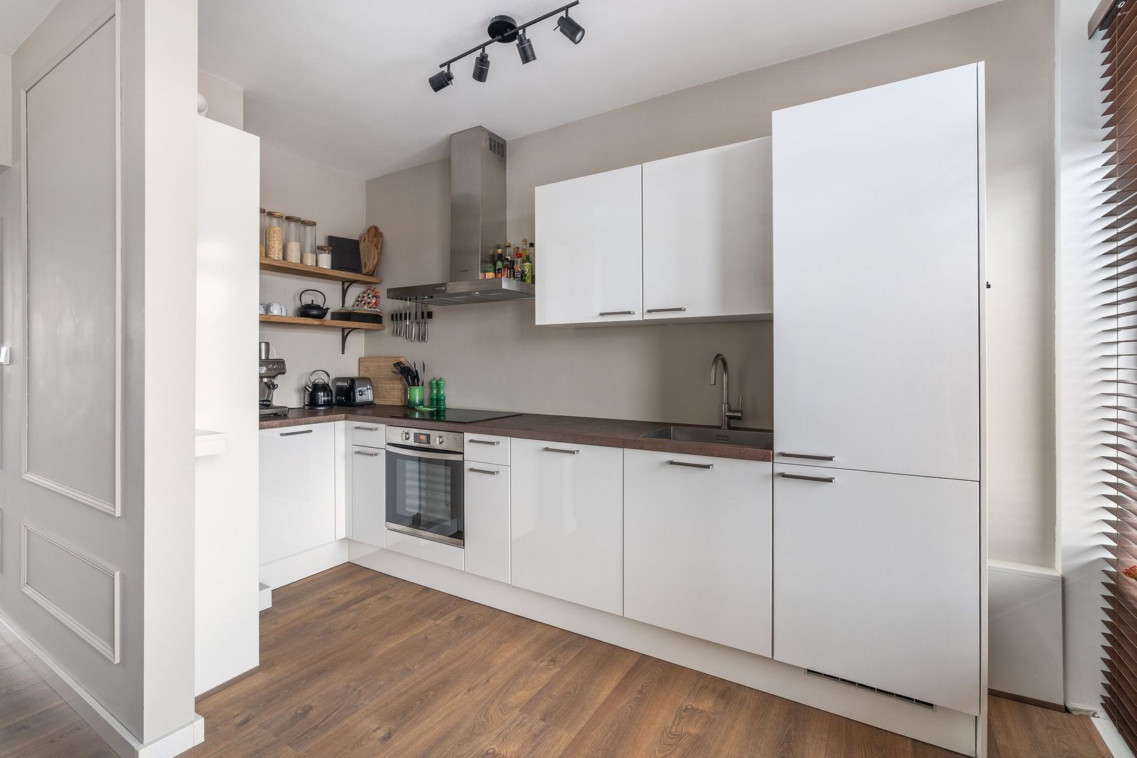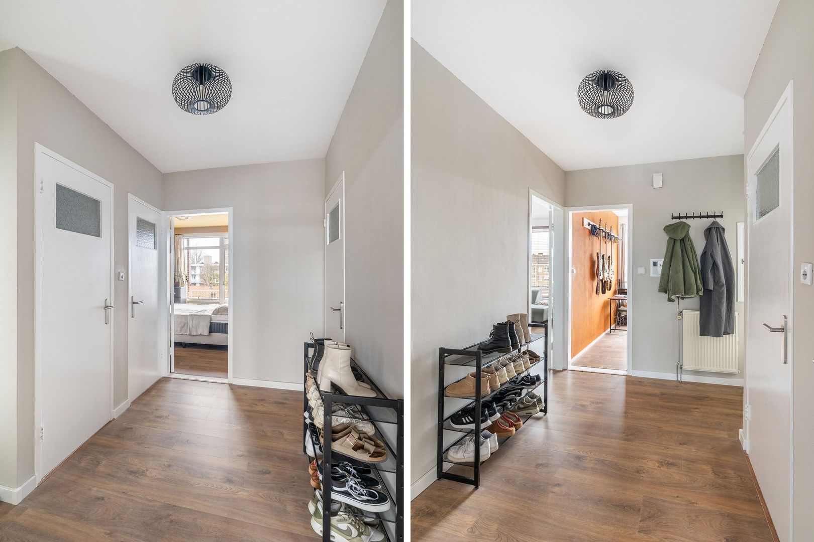 Afgesloten entree met trappenhuis naar de berging in de onderbouw en woningentree op de 3e etage; grote hal met een vaste kast voorzien van de cv-opstelling en de wasmachineaansluiting; riante woonkamer en suite met vaste kasten, een sfeervolle schuifseparatie en toegang tot het balkon; moderne open keuken in hoekopstelling met een inductiekookplaat, afzuigkap, oven, vaatwasser, koel-vriescombinatie en toegang tot het balkon; 1e slaapkamer aan de voorzijde met een vaste kast; 2e slaapkamer aan de achterzijde met toegang tot het balkon; nette badkamer met douche en wastafelmeubel; separaat toilet met fonteintje;