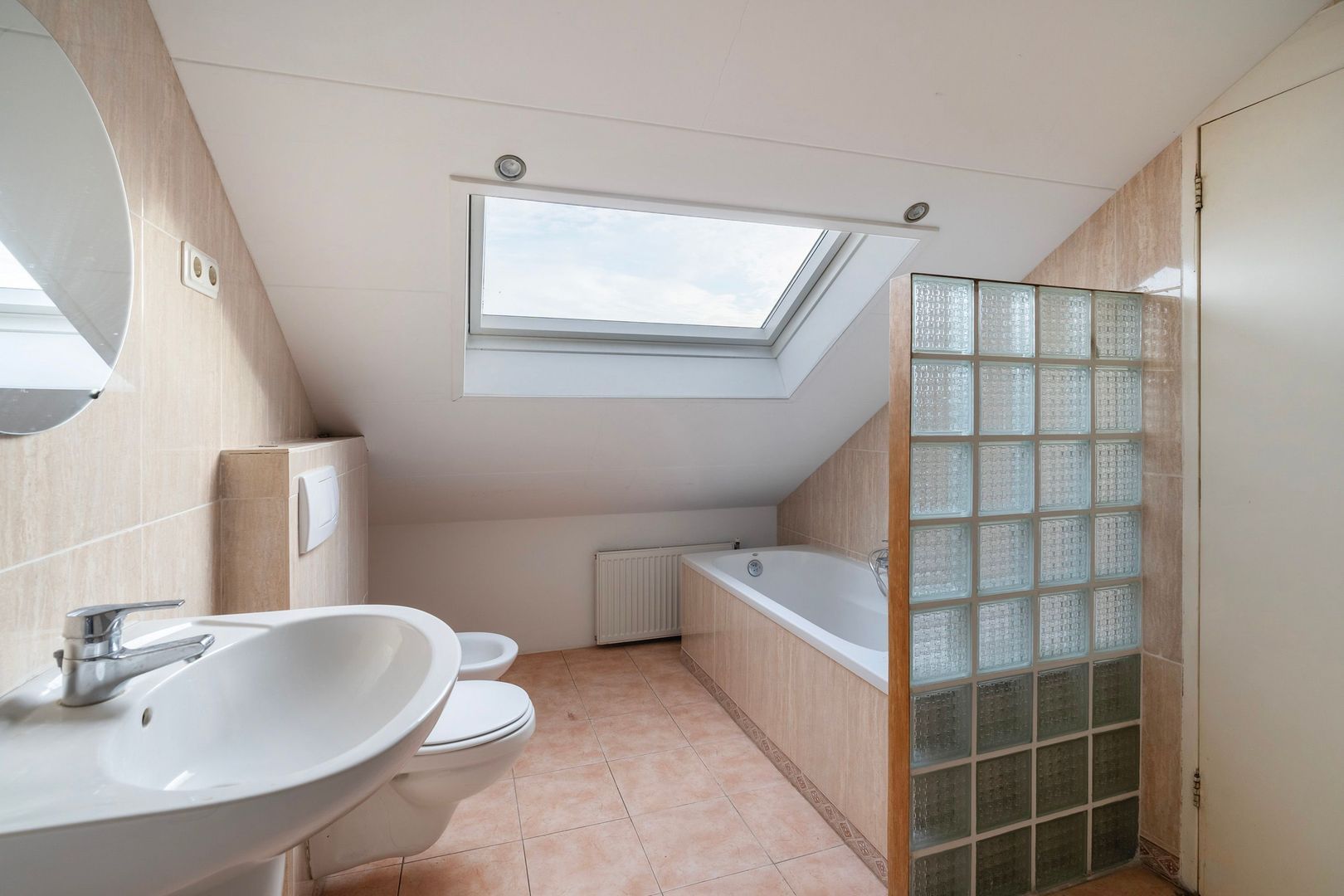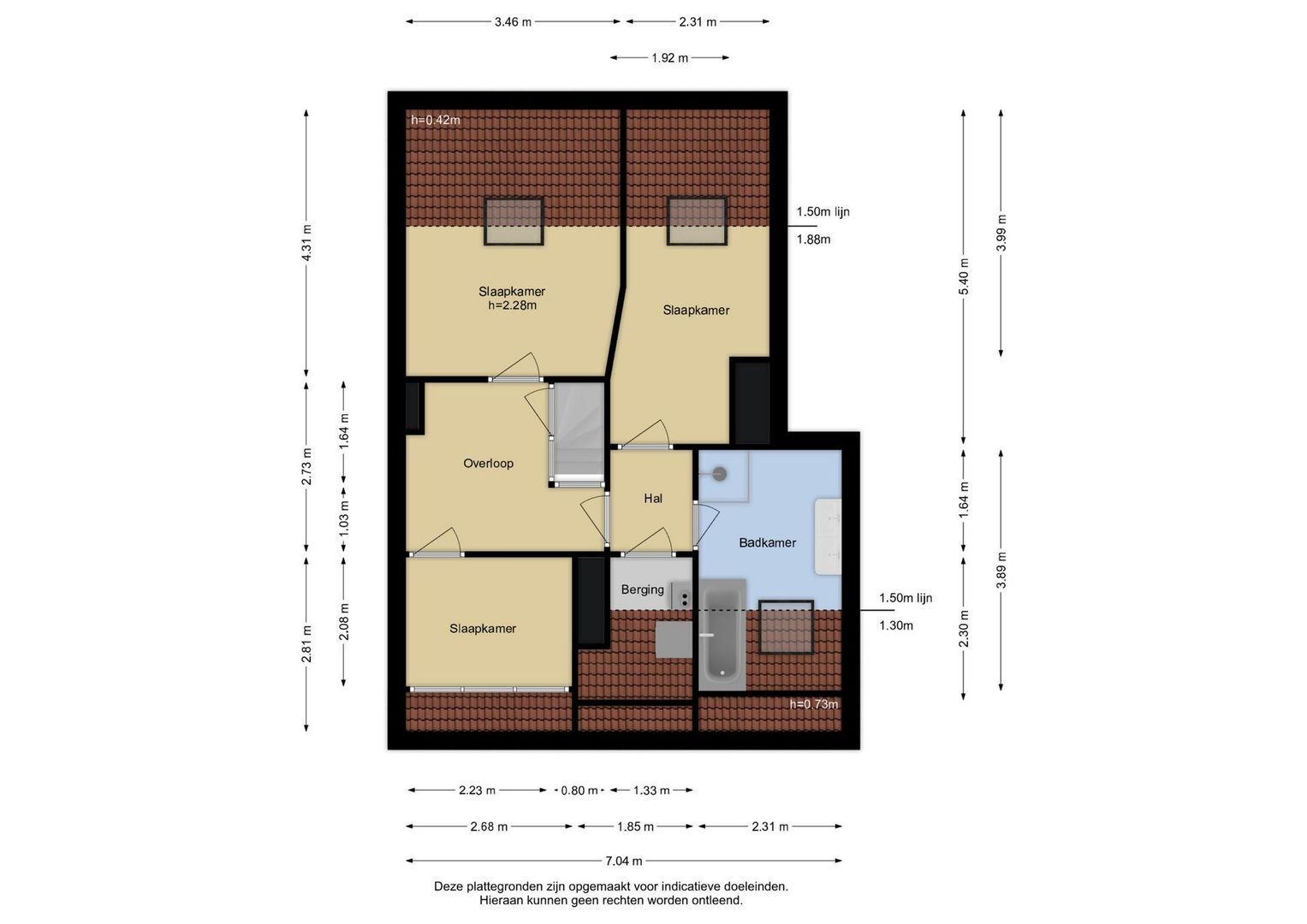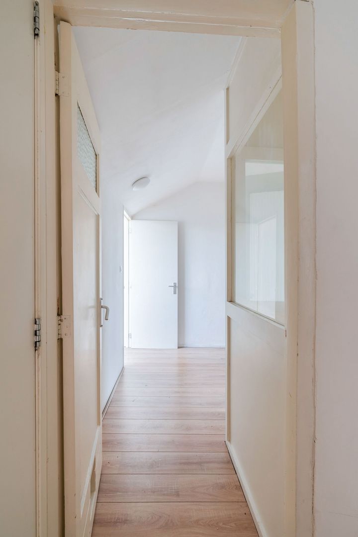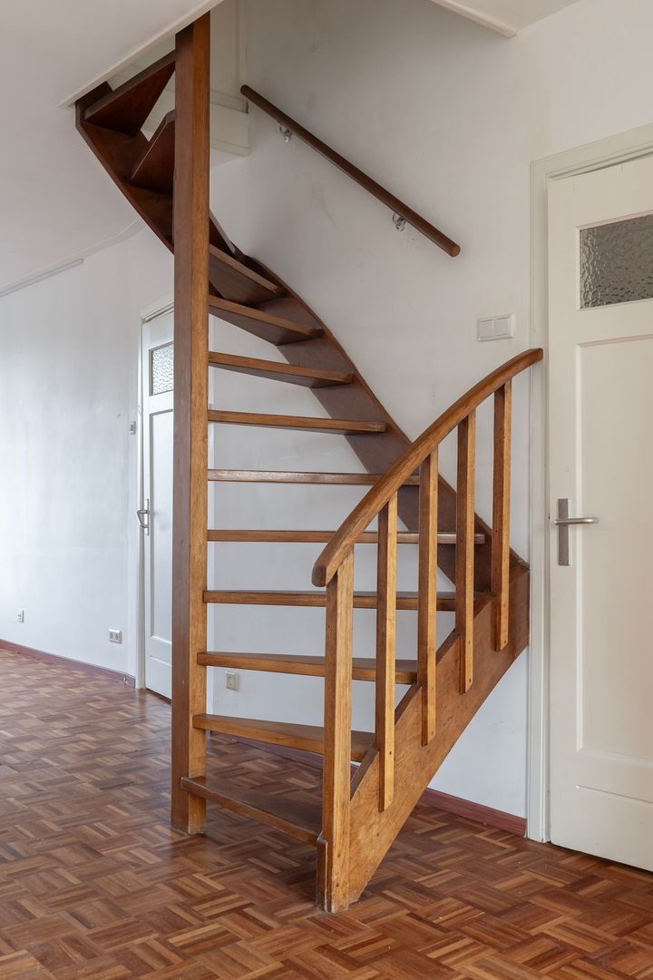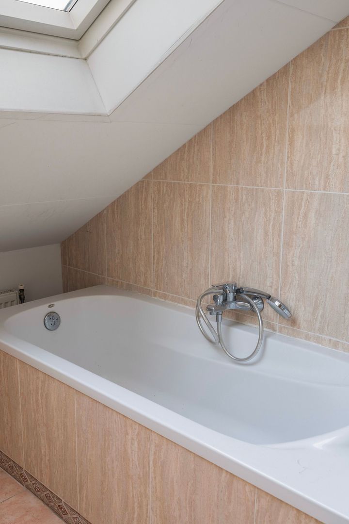 Zolderverdieping: Ruime overloop; 1e slaapkamer aan de voorzijde met dakraam; 2e slaapkamer aan de voorzijde met dakraam; 3e slaapkamer aan de achterzijde met dakkapel; net betegelde badkamer met douche, bidet, ligbad, dubbele wastafel, toilet (wandcloset) en dakraam, berging met opstelplaats cv-ketel, wasmachineaansluiting en dakraam.