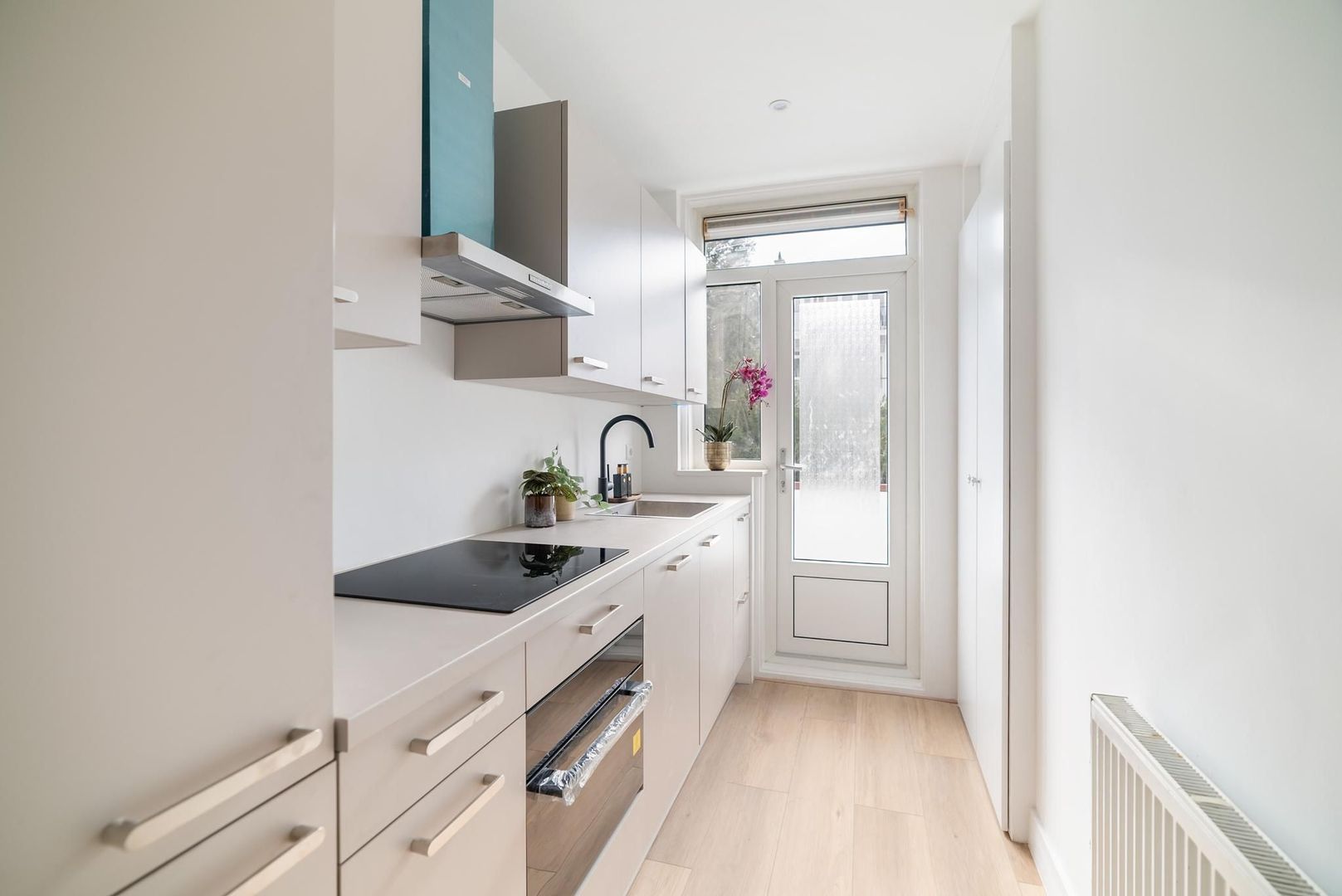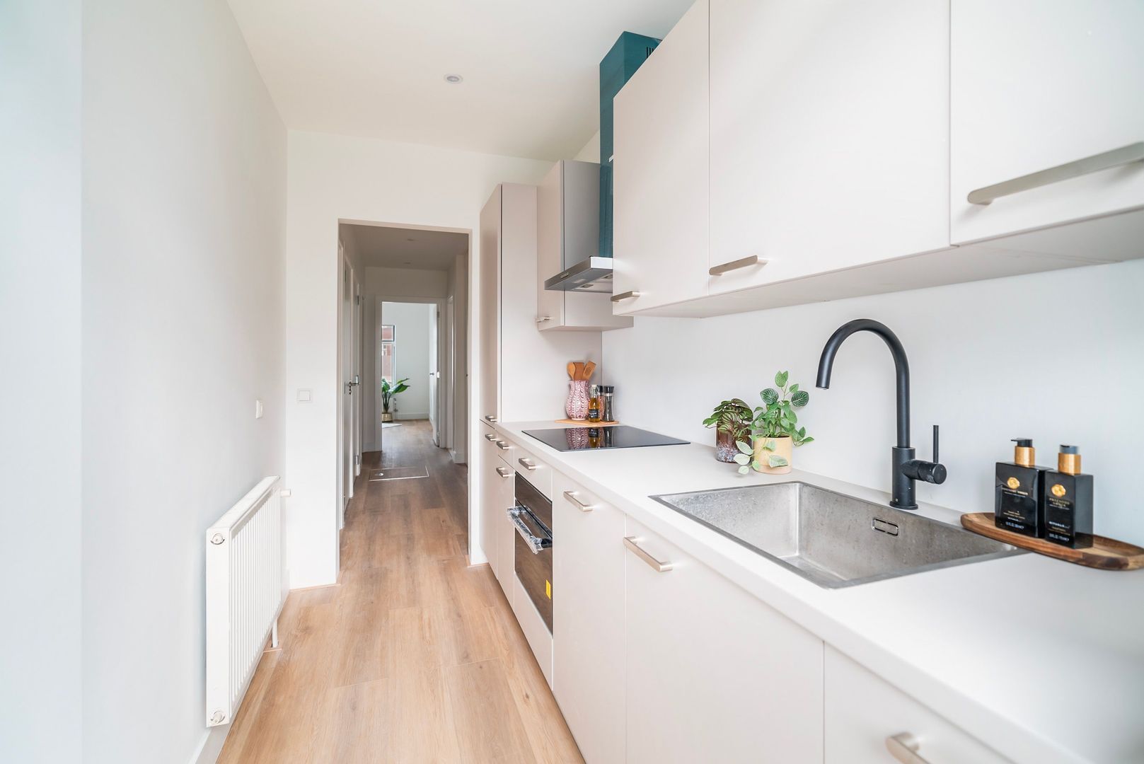 Woningentree via open portiek; tochtportaal met de meterkast; gang; ruime woonkamer; moderne keuken met een fraai stenen aanrechtblad, inductiekookplaat, afzuigkap, koel-vriescombinatie, vaatwasser en toegang tot het balkon; 1e slaapkamer aan de voorzijde; 2e slaapkamer aan de achterzijde; 3e slaapkamer aan de achterzijde; moderne badkamer met inloopdouche en een wastafelmeubel; modern separaat toilet;