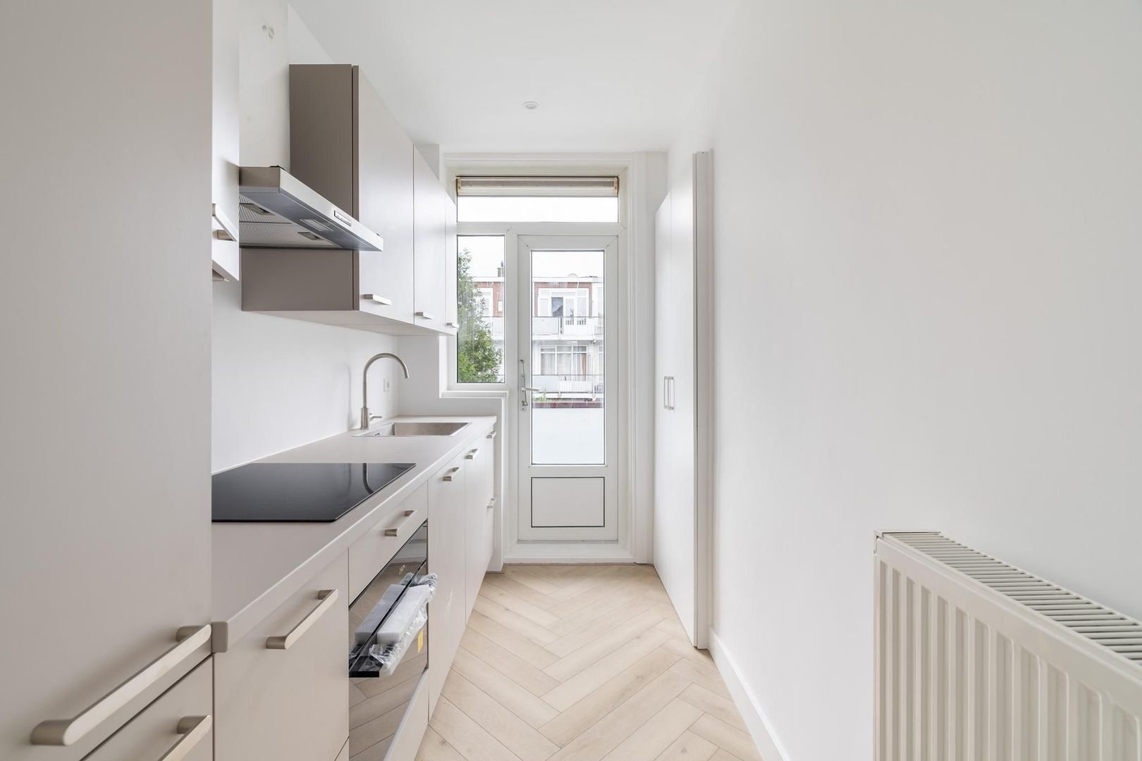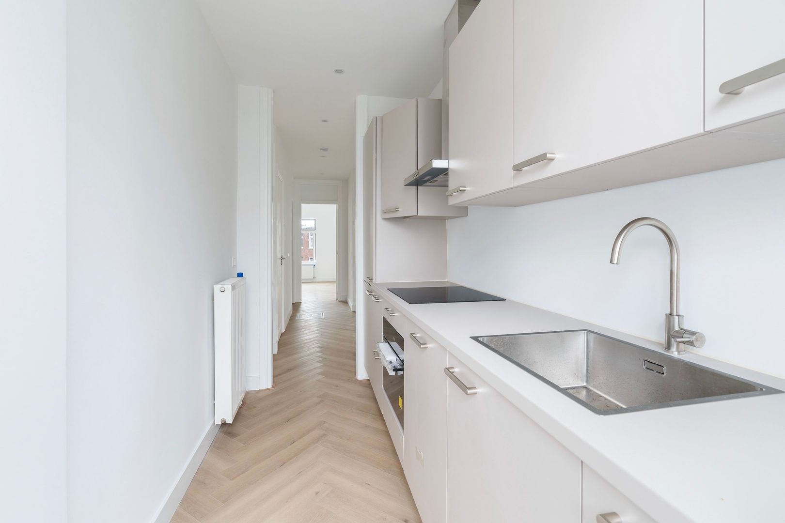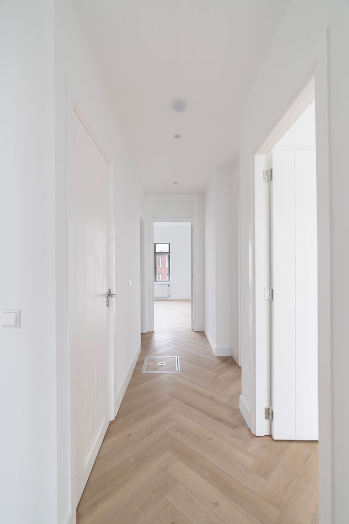 Woningentree via open portiek; tochtportaal met de meterkast; gang; ruime woonkamer 6.77 x 3.42m; moderne keuken met een fraai stenen aanrechtblad, inductiekookplaat, afzuigkap, koel-vriescombinatie, vaatwasser, inbouwoven en toegang tot het balkon; 1e slaapkamer aan de voorzijde, 2.82 x 3.97m; 2e slaapkamer aan de achterzijde, 2.64 x 3.28m; 3e slaapkamer aan de achterzijde, 3.46 x 5.13m; moderne badkamer met inloopdouche, wastafelmeubel en de wasmachine aansluiting; modern separaat toilet;