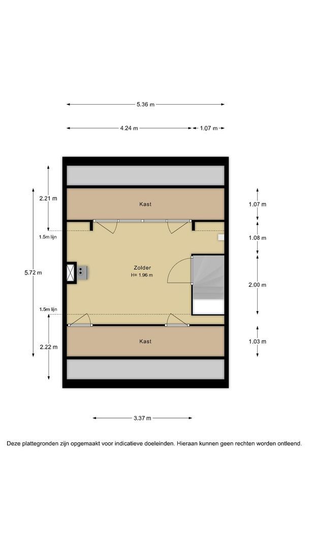 Deze informatie is door ons met de nodige zorgvuldigheid samengesteld. Onzerzijds wordt echter geen enkele aansprakelijkheid aanvaard voor enige onvolledigheid, onjuistheid of anderszins, dan wel de gevolgen daarvan. Alle opgegeven maten en oppervlakten zijn indicatief.