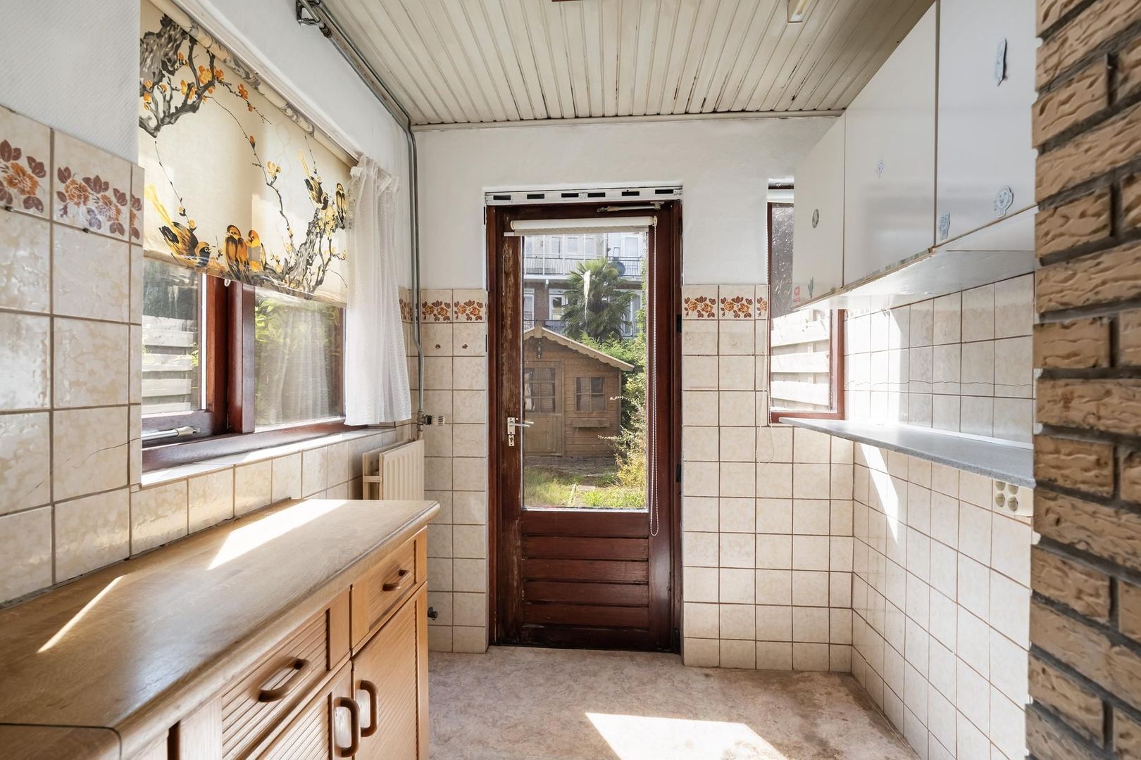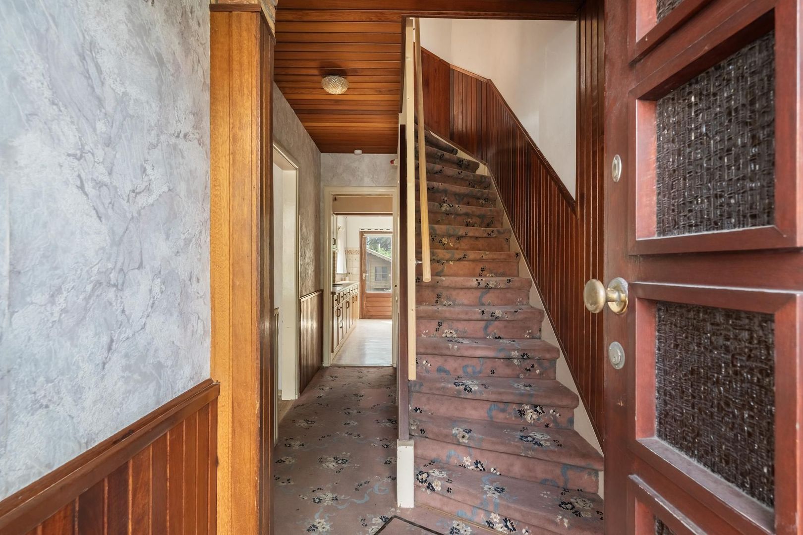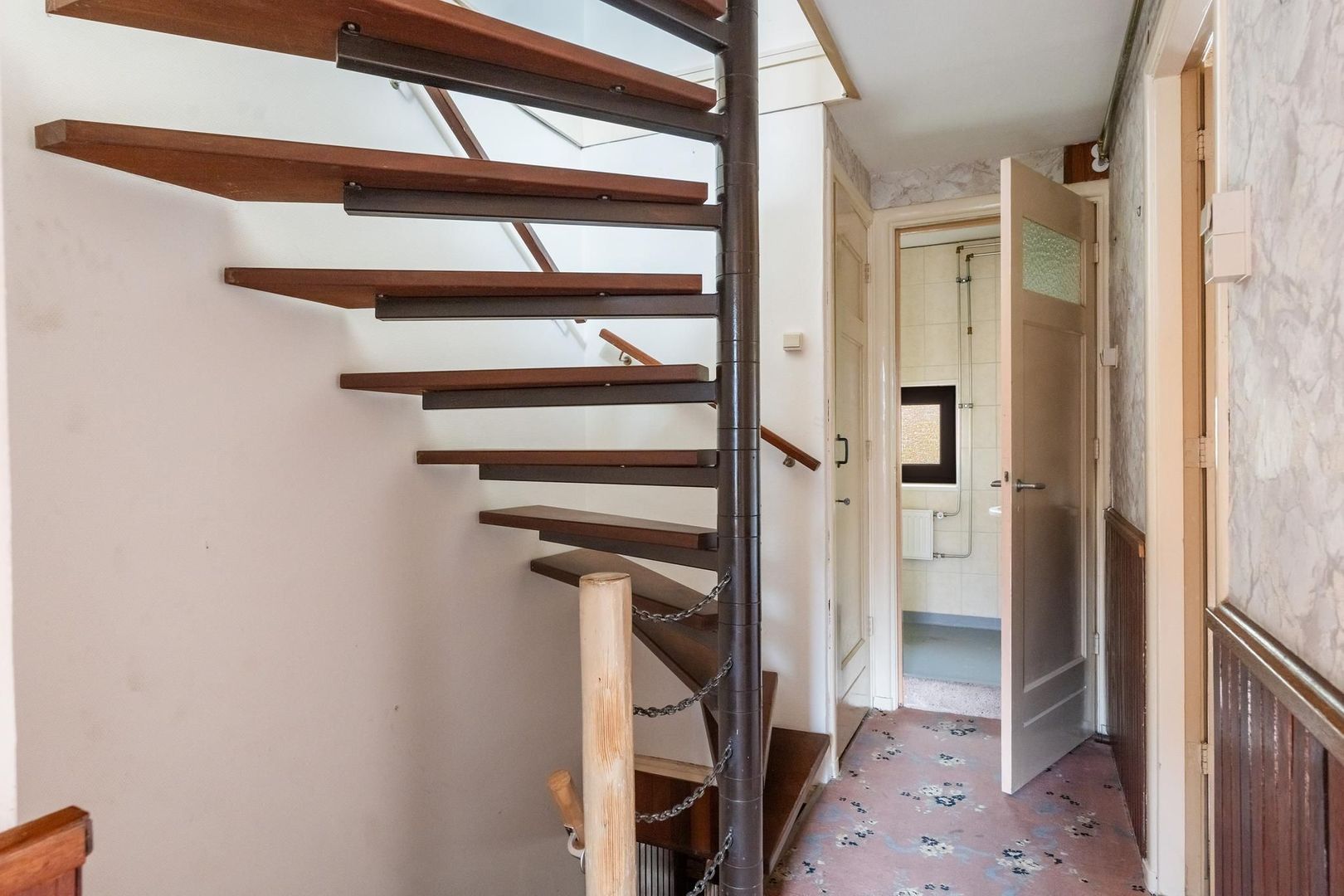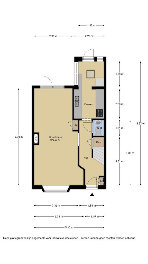 Begane grond: Woningentree via eigen voortuin; hal met meterkast, bergkast onder de trap en toilet met fonteintje; doorzonwoonkamer met deur naar de achtertuin; eenvoudige keuken met uitbouw en toegang tot de achtertuin.