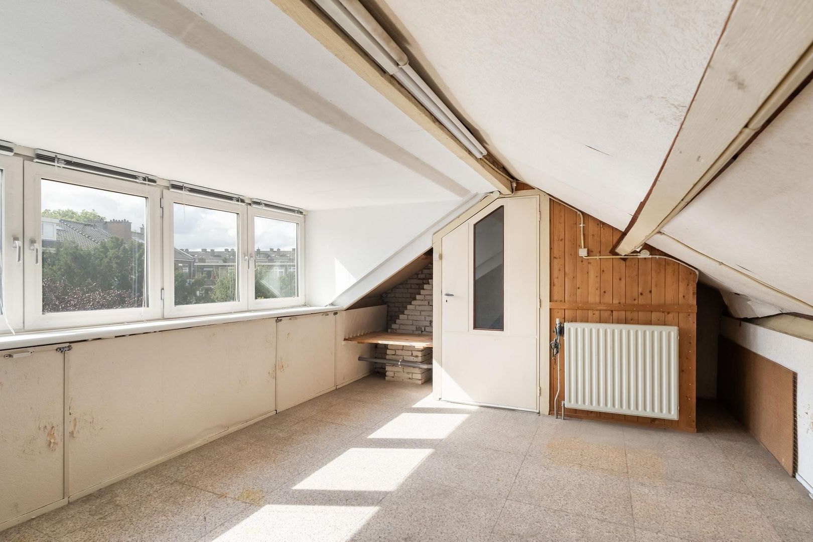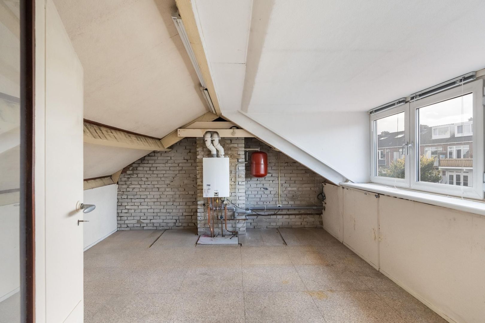 2e etage: zolderetage bereikbaar via een vaste trap; open ruimte (ca 1.96 nokhoogte) met dakkapel aan de achterzijde en zowel aan de voor als aan de achterzijde knieschotten met daarachter bergruimte. Tevens zit hier de opstelplaats voor de CV-ketel.