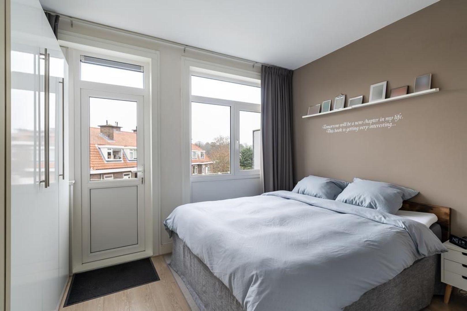 - Voorzijde voorzien van kunststof kozijnen met dubbel glas