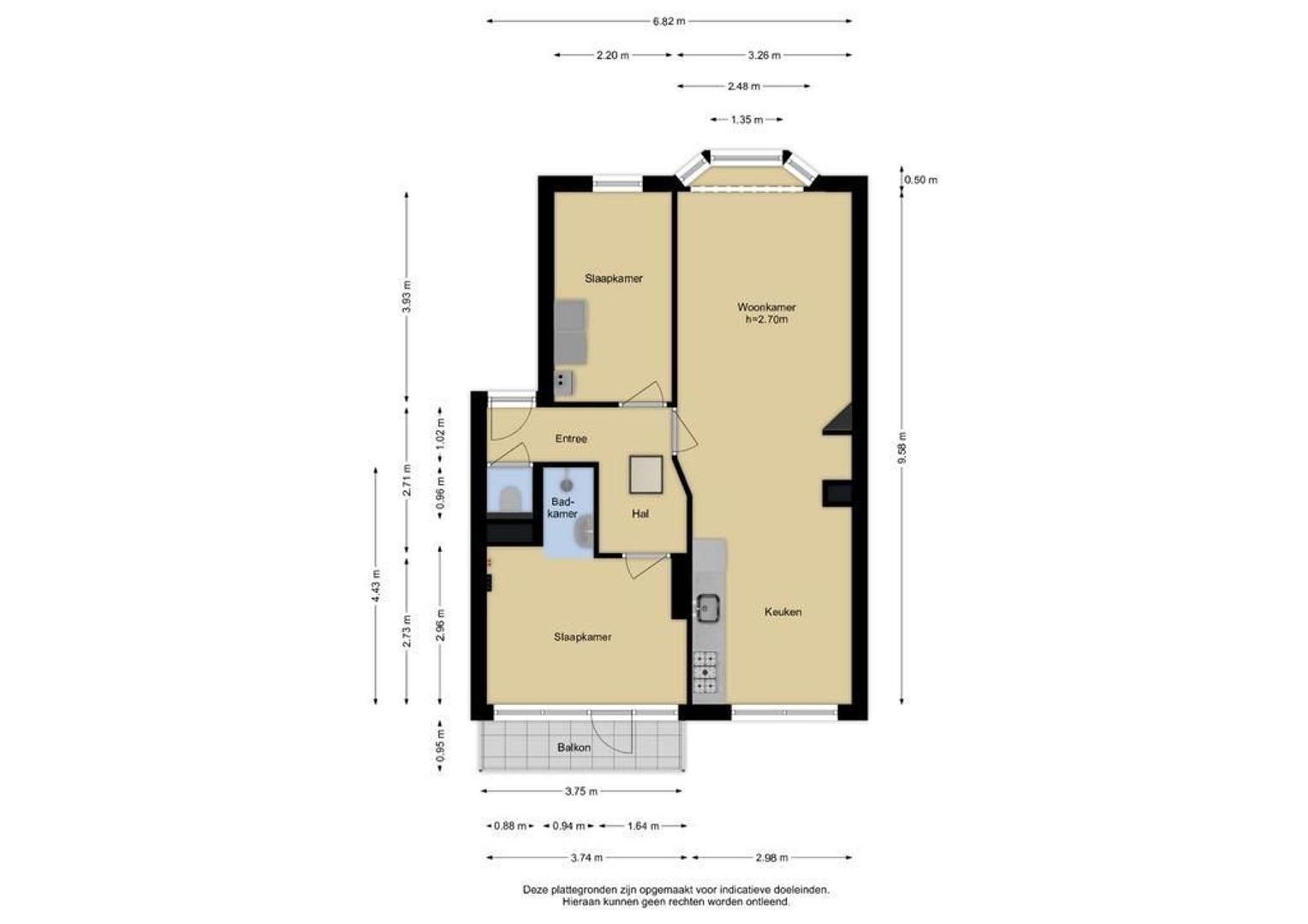 Deze informatie is door ons met de nodige zorgvuldigheid samengesteld. Onzerzijds wordt echter geen enkele aansprakelijkheid aanvaard voor enige onvolledigheid, onjuistheid of anderszins, dan wel de gevolgen daarvan. Alle opgegeven maten en oppervlakten zijn indicatief.