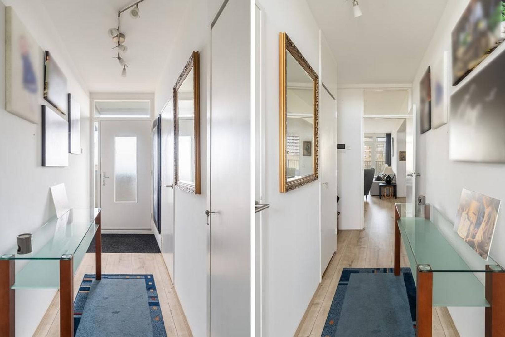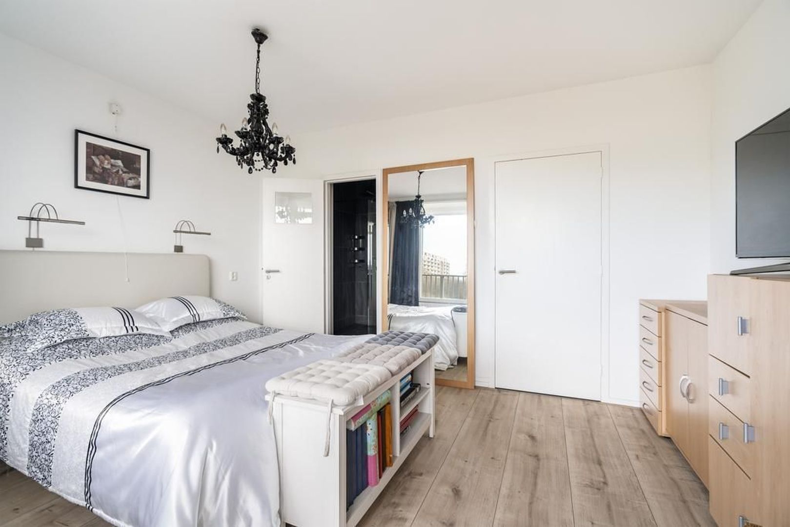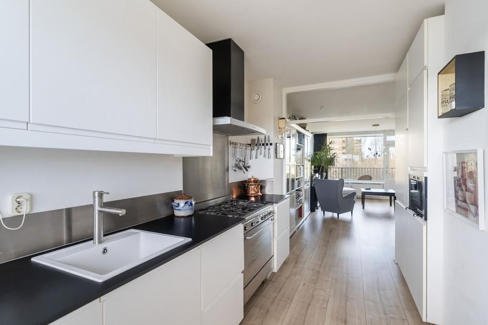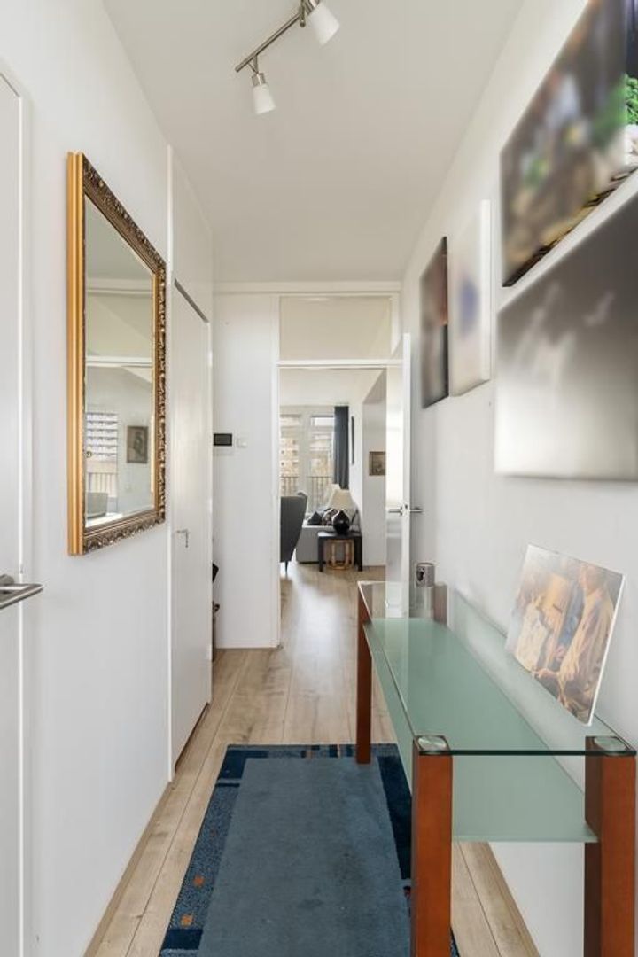 Afgesloten entree met bellentableau, trappenhuis en lift naar 5e etage; woningentree; tochtportaal met meterkast; grote bergkast met de aansluiting voor de wasmachine; ruime woonkamer met toegang tot het balkon; moderne open keuken welke is voorzien van een 5-pits gasfornuis met oven, afzuigkap, koel-vriescombinatie, magnetron, combi-magnetron/-oven en een vaatwasser; 1e slaapkamer aan de voorzijde; 2e slaapkamer aan de voorzijde; 3e royale slaapkamer aan de achterzijde met toegang tot het balkon; moderne badkamer met een ruime inloopdouche en een wastafelmeubel; modern separaat toilet met fonteintje;