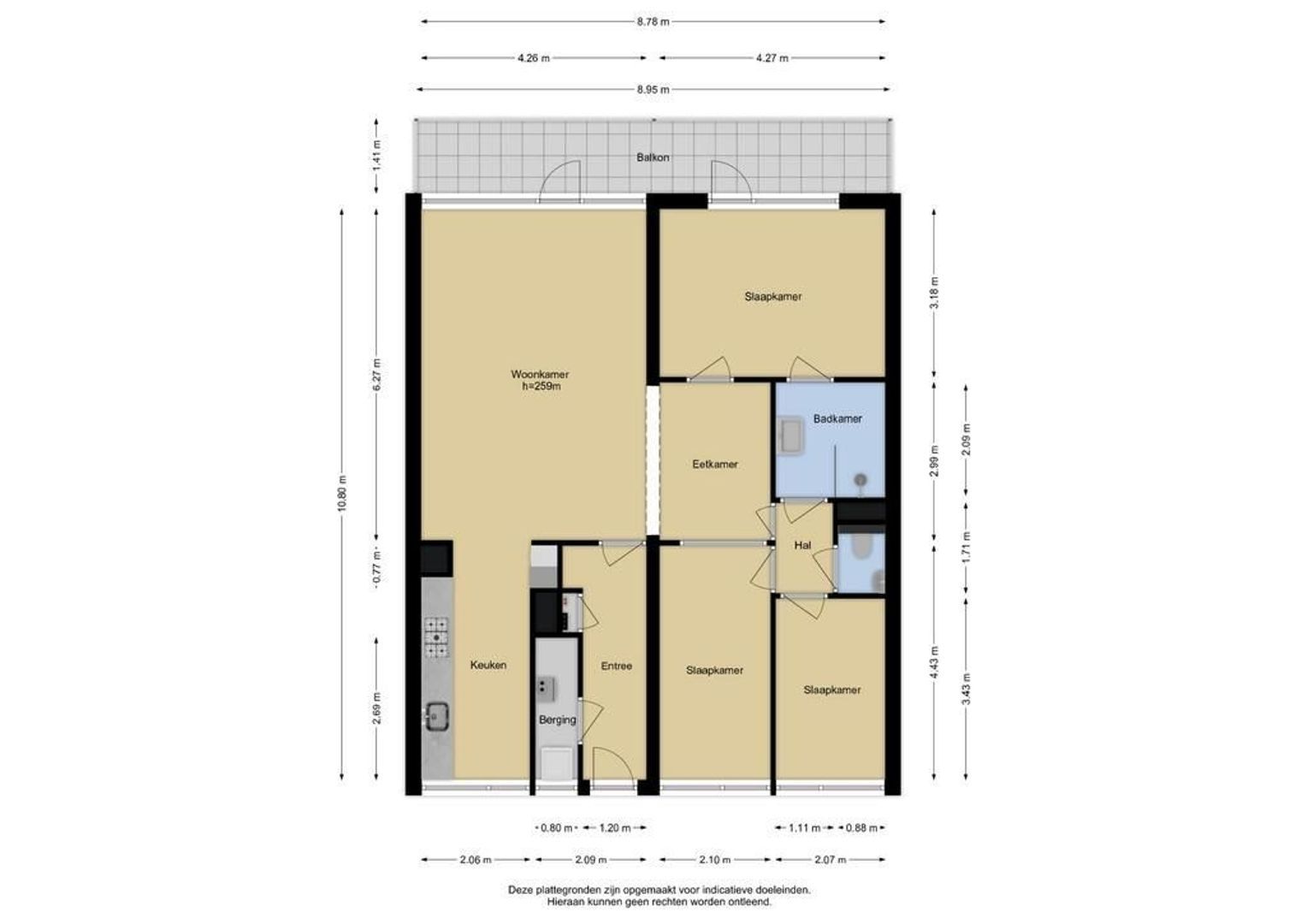 Deze informatie is door ons met de nodige zorgvuldigheid samengesteld. Onzerzijds wordt echter geen enkele aansprakelijkheid aanvaard voor enige onvolledigheid, onjuistheid of anderszins, dan wel de gevolgen daarvan. Alle opgegeven maten en oppervlakten zijn indicatief.