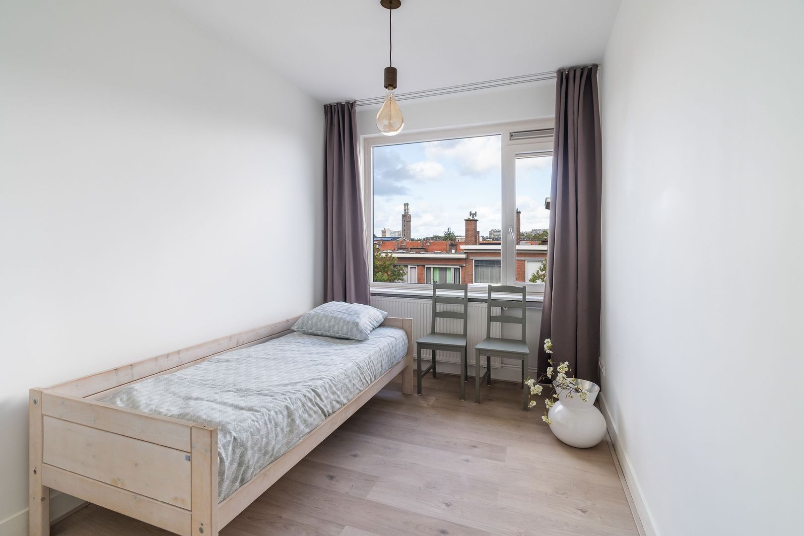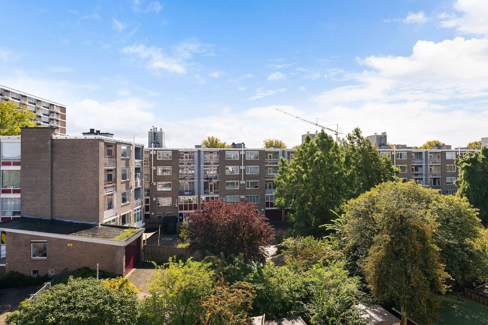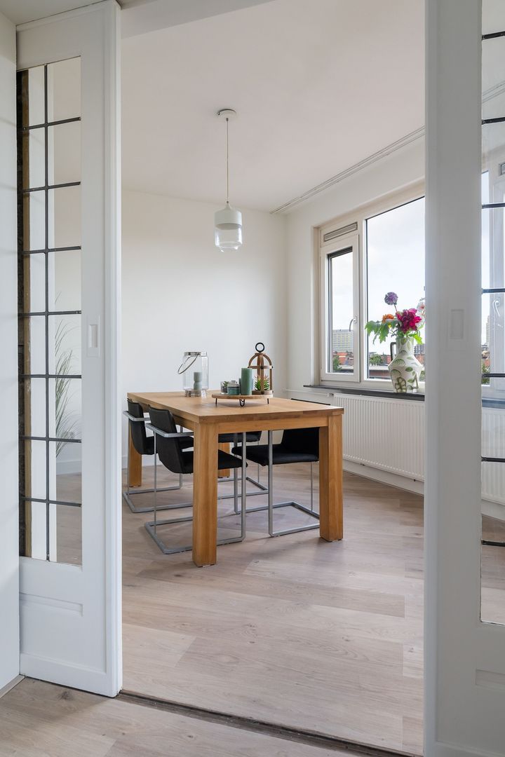 Leyenburg. Goed onderhouden royaal 4 kamer topappartement (89m²) op de 3e etage met achterbalkon op het zuid-oosten en een gemeenschappelijke fietsenberging op de begane grond. Deze moderne woning met vrij uitzicht aan de voorzijde is o.a. voorzien van een ruime woonkamer en suite met een sfeervolle schuifseparatie, splinternieuwe keuken met inbouwapparatuur, 2 grote slaapkamers en een royale nette badkamer. De Vereniging van Eigenaren is actief met een meerjarenonderhoudsplan. Bovendien is de woning geheel voorzien strak stuc- en schilderwerk, kozijnen met HR++ dubbel glas en gelegen op eigen grond. Dit appartementen complex is een van de weinige uit de jaren '30 met betonnen vloeren!