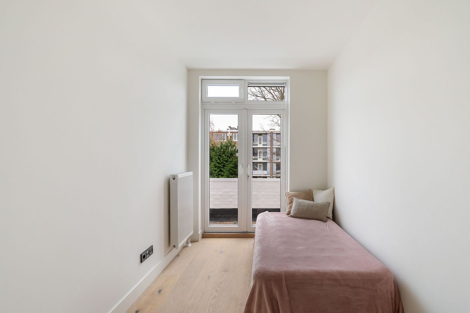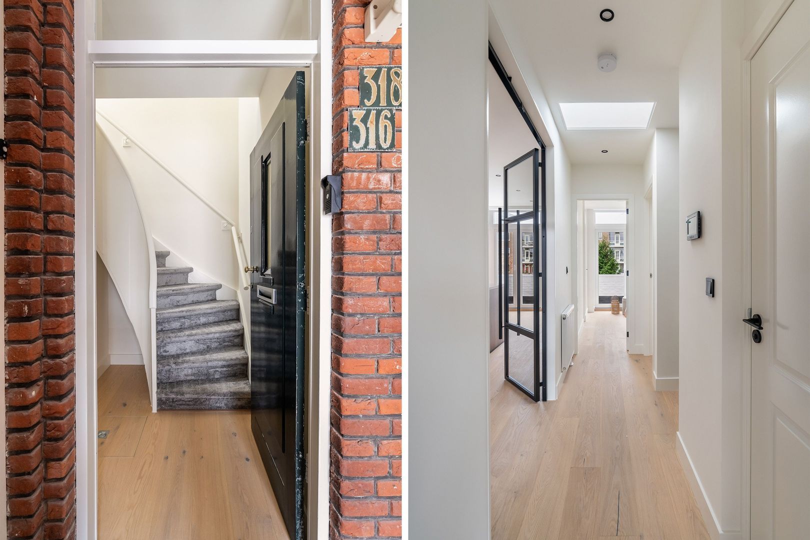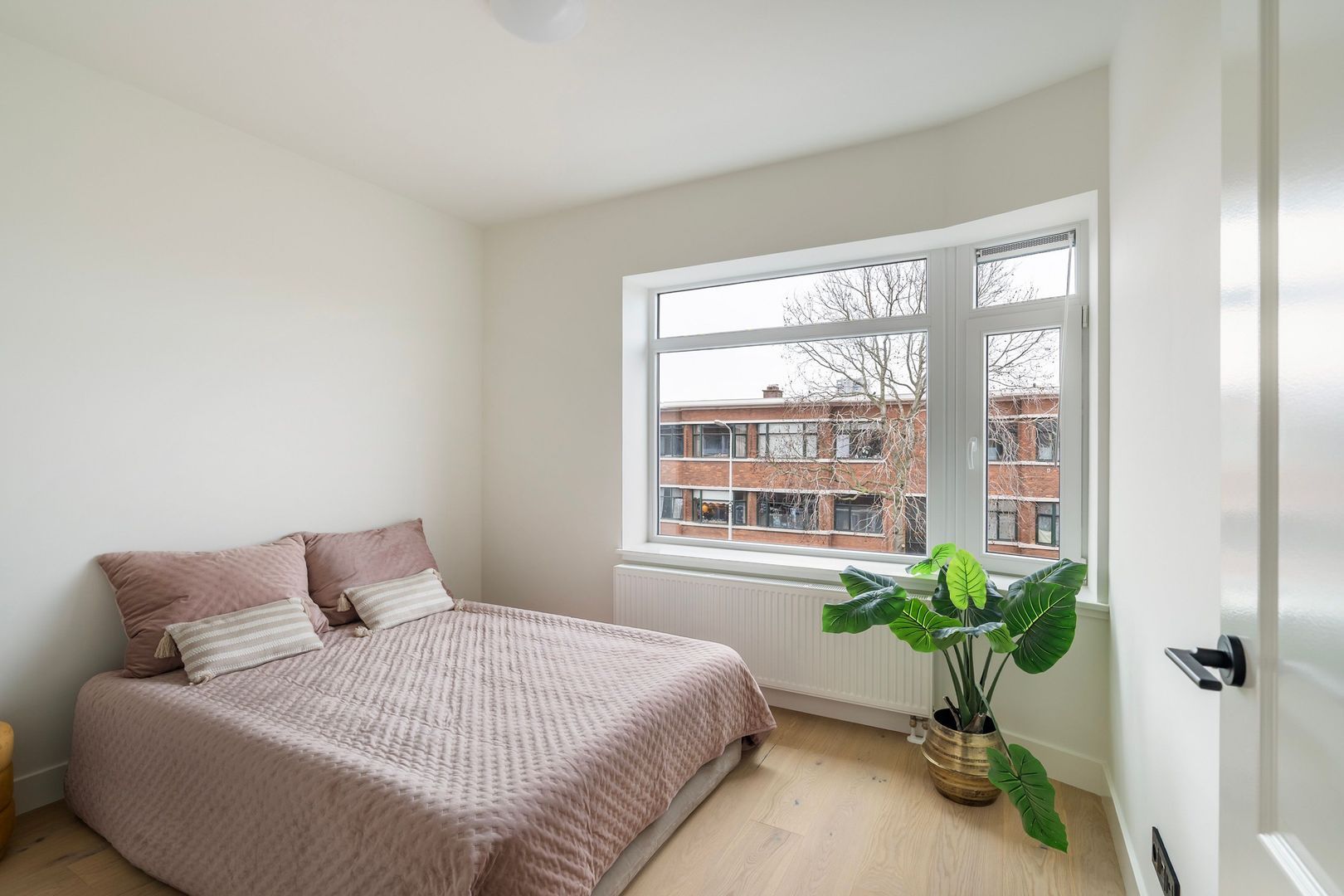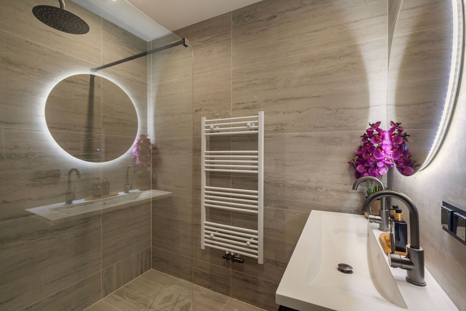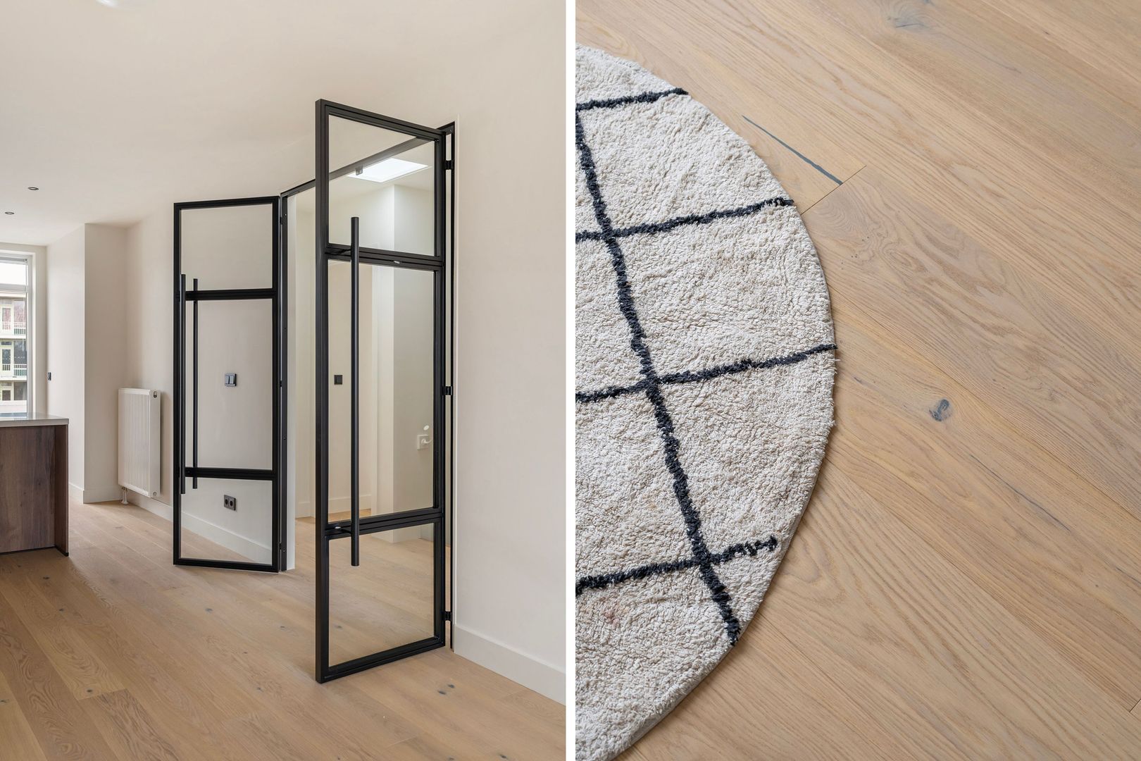 Open portiek naar de entree op de 1e etage; hal met meterkast, binnentrap naar de woningentree op de 2e etage; ruime hal met een toegang tot alle vertrekken; dubbele deuren naar de riante woonkamer met een luxe open keuken voorzien van een inductiekookplaat met afzuigkap, oven-magnetroncombinatie, koel-vriescombinatie en een vaatwasser; 1e slaapkamer aan de voorzijde; 2e slaapkamer aan de achterzijde met openslaande deuren naar het balkon; 3e slaapkamer aan de achterzijde met vaste kast met opstelplaats cv-ketel en toegang tot het balkon; balkon over de gehele breedte met vaste kast; moderne badkamer met wastafel met dubbele kranen, handdoekradiator en inloopdouche; separaat toilet met fonteintje.