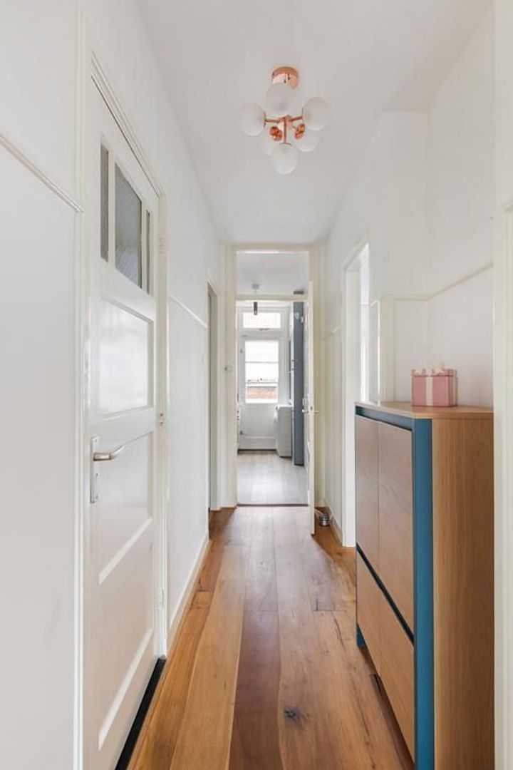 Toegang tot de woning op de eerste etage via een open portiek. Binnenkomst in de hal met meterkast. Naast de meterkast is er een handige garderobekast.