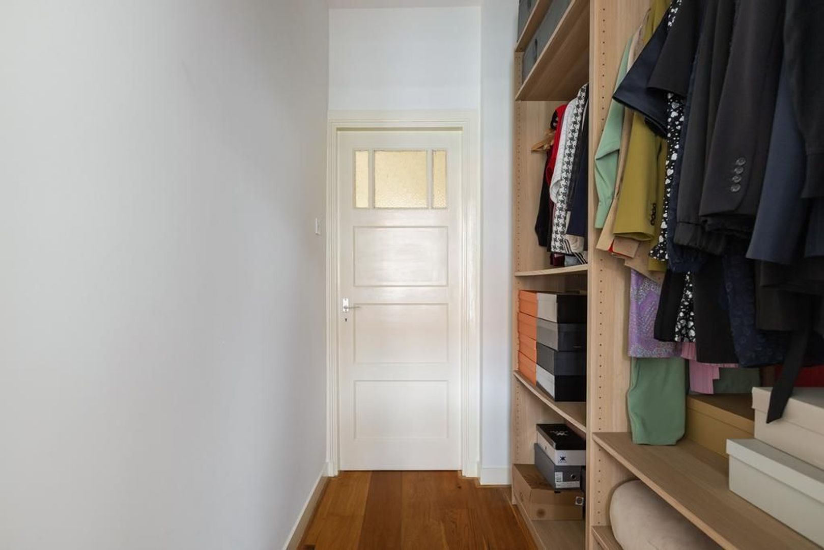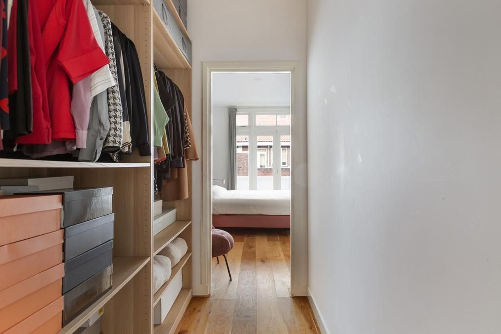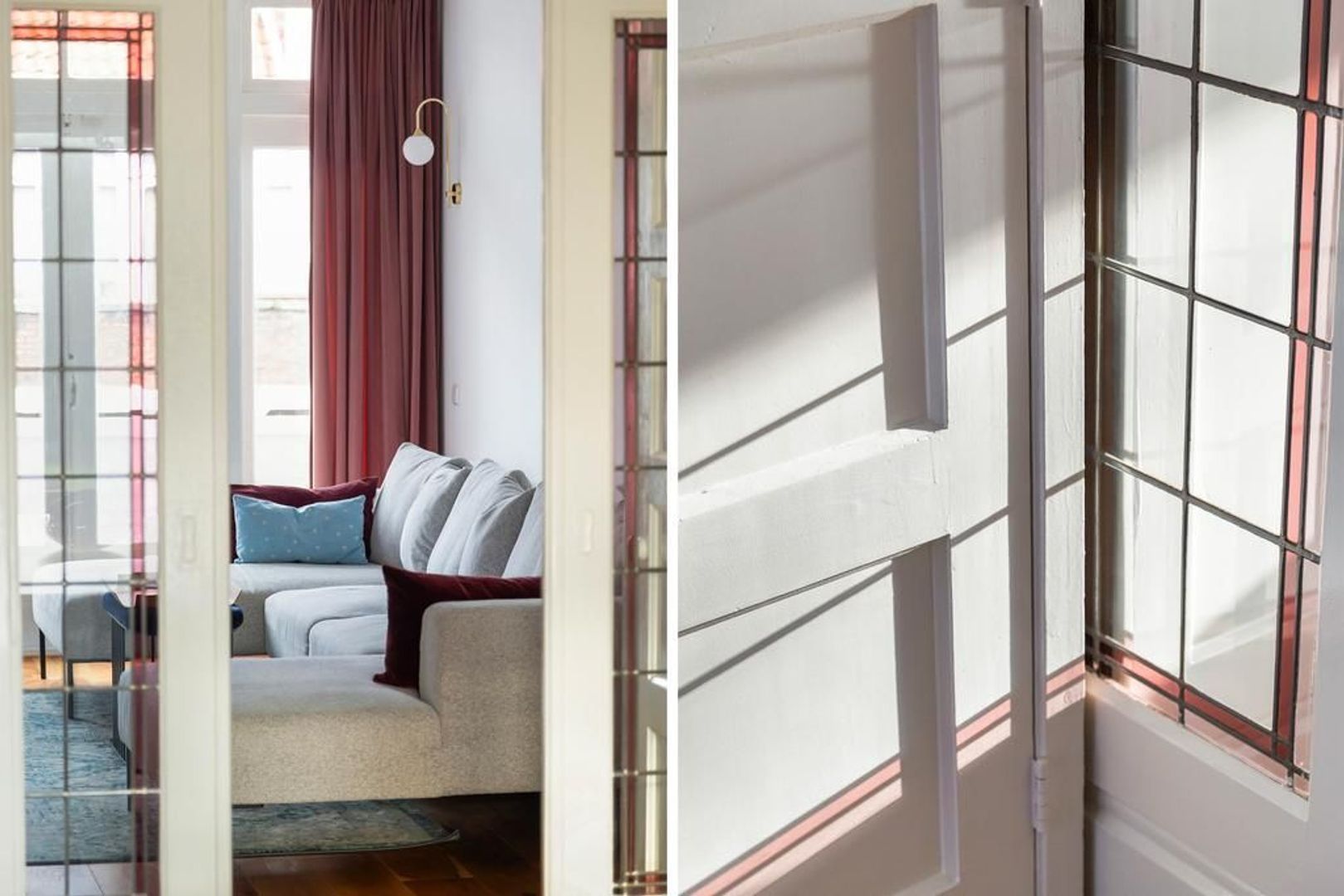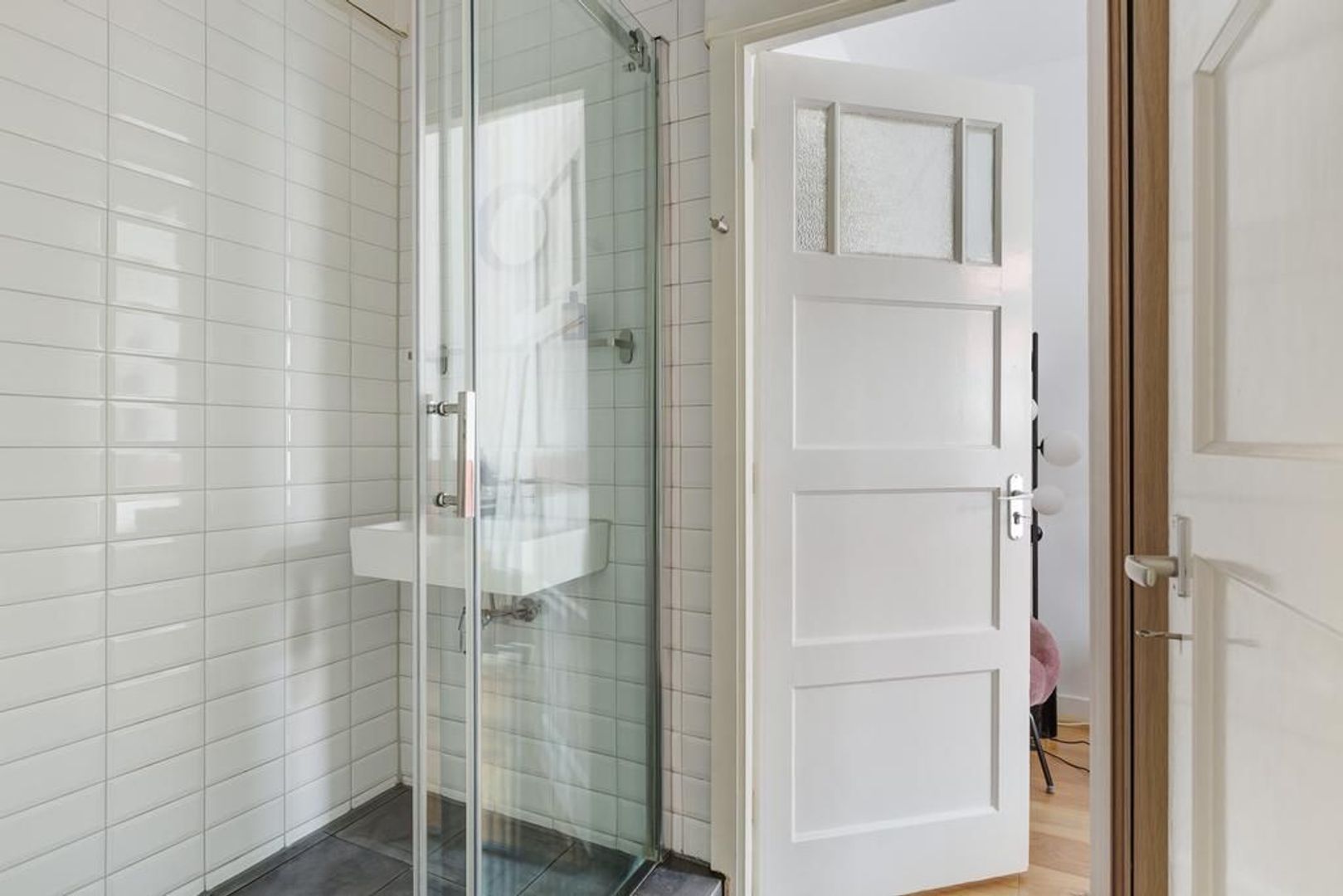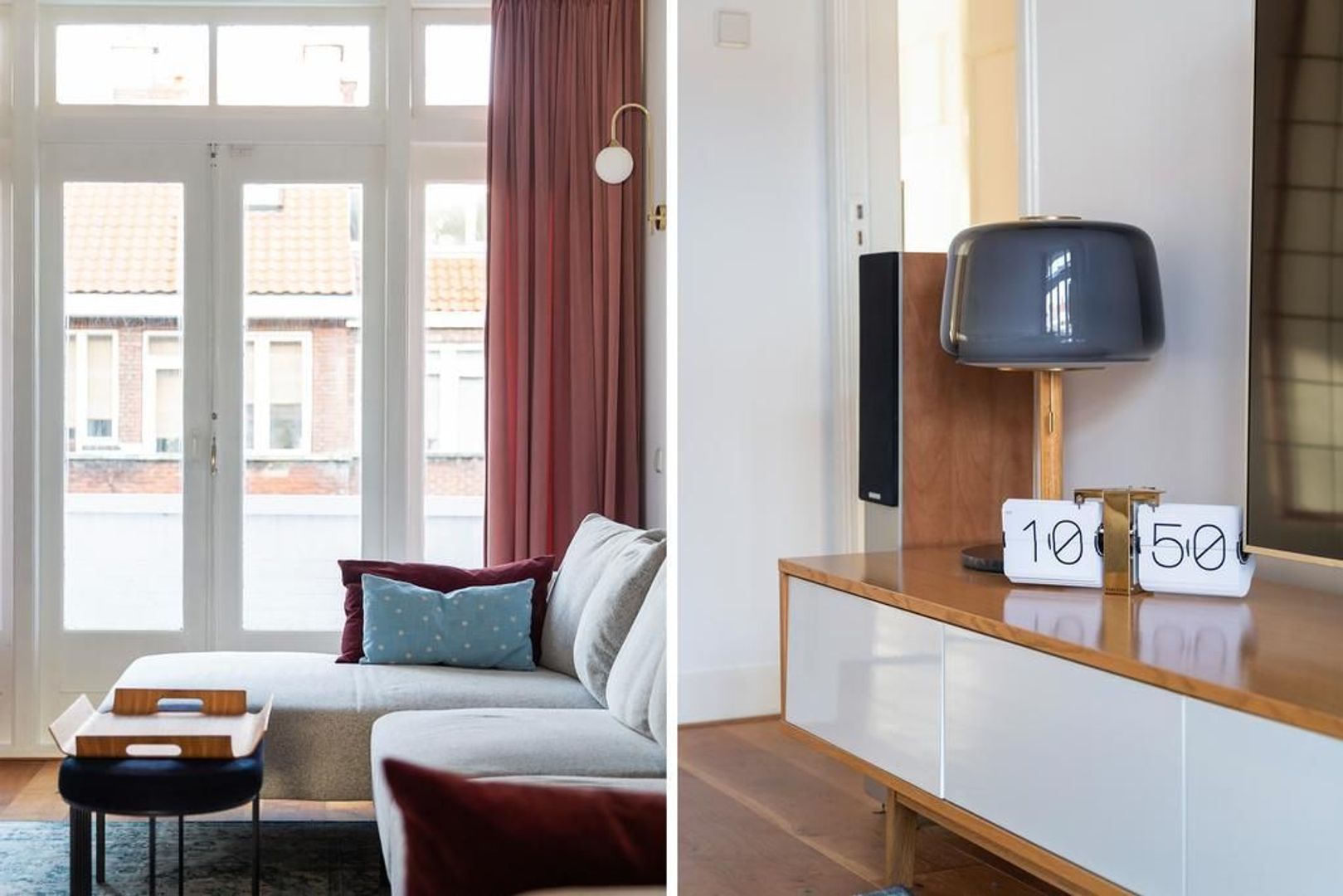 De hal biedt toegang tot alle ruimtes en een separaat toilet met fontein. Ruime en lichte woon-/eetkamer ensuite met ruime inbouwkasten en een authentieke schuifseparatie voorzien van glas in lood. Via openslaande deuren toegang tot het balkon. Een keurige keuken met een gaskookplaat, afzuigkap, magnetron, oven, koel-vriescombinatie en vaatwasser en wederom toegang tot het balkon. De eerste slaapkamer ligt aan de voorzijde en heeft een vaste kast. De tweede slaapkamer aan de achterzijde heeft een inloopkast en openslaande deuren naar het balkon. De woning is voorzien van een doorgelegde parketvloer. Een nette badkamer met inloopdouche en wastafel. Het is mogelijk een 3e slaapkamer te realiseren.