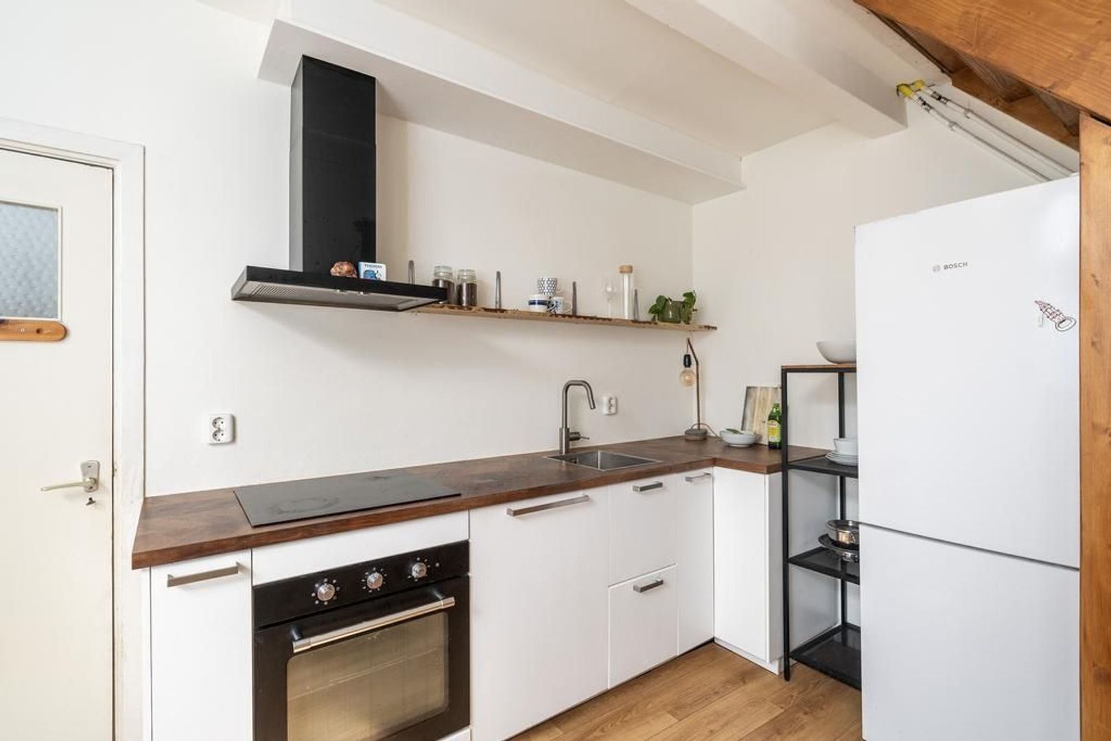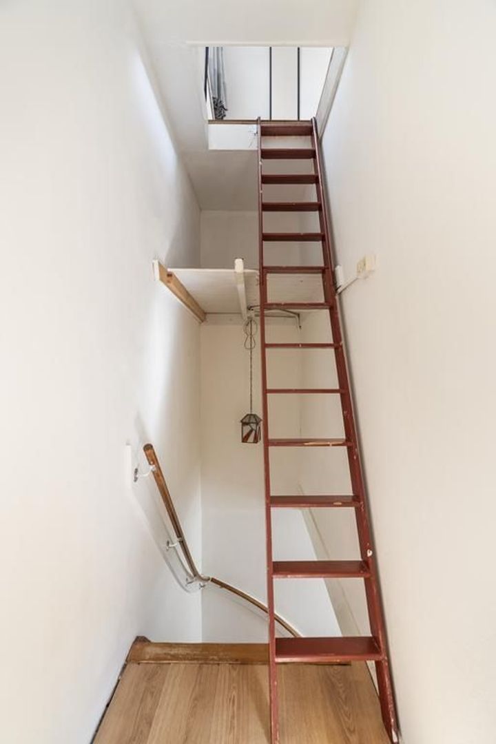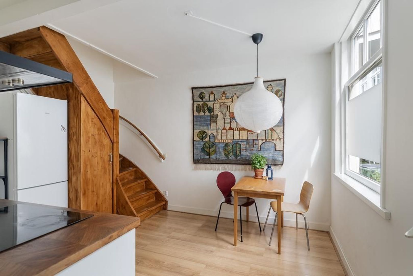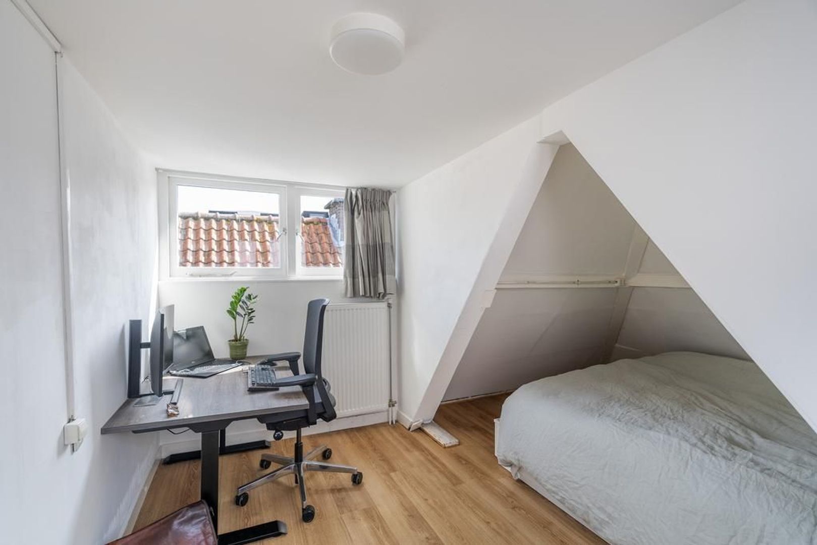 Klein halletje; sfeervolle leefkeuken met modern keukenblok en ingebouwde apparatuur zoals inductie kookplaat, afzuigkap, oven, vaatwasser. Keurige badkamer met douche toilet en wastafel. Trap naar 1e etage; overloop met bergruimte en opstelplaats cv-ketel en wasmachine, woonkamer met aan 2 zijden raamkozijnen; smalle trap naar de zolderetage met daar de slaapruimte, 2 dakkapelletjes zowel aan voor- als achterzijde. Naast de woning heeft de huidige eigenaar een schattig stadstuintje aangelegd op grond van (en met toestemming van) de VvE.