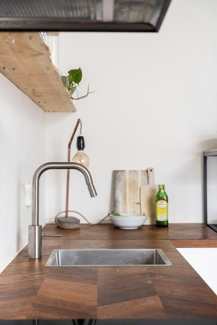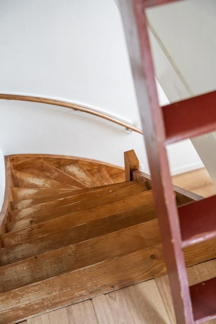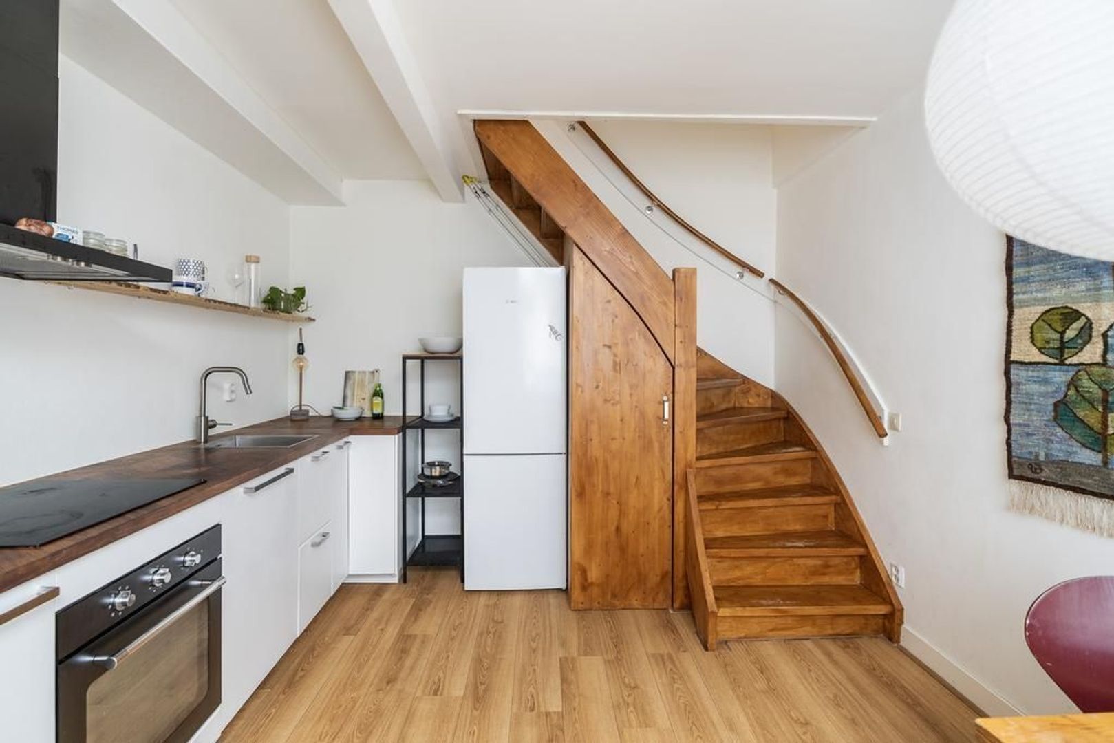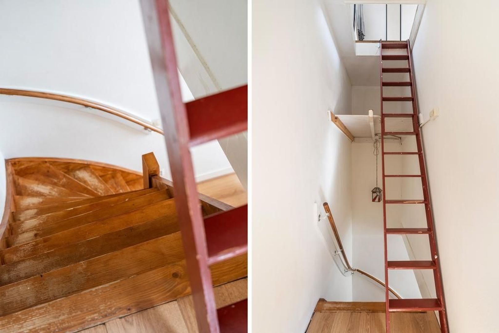 Klein halletje; sfeervolle leefkeuken met modern keukenblok en ingebouwde apparatuur zoals inductie kookplaat, afzuigkap, oven, vaatwasser. Keurige badkamer met douche toilet en wastafel. Trap naar 1e etage; overloop met bergruimte en opstelplaats cv-ketel en wasmachine, woonkamer met aan 2 zijden raamkozijnen; smalle trap naar de zolderetage met daar de slaapruimte, 2 dakkapelletjes zowel aan voor- als achterzijde. Naast de woning heeft de huidige eigenaar een schattig stadstuintje aangelegd op grond van (en met toestemming van) de VvE.