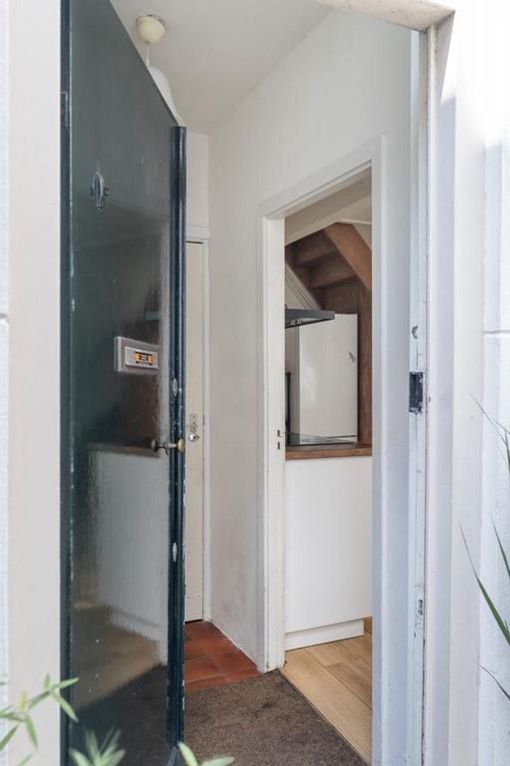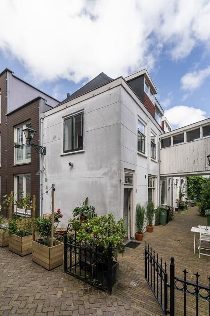 Via een rustig pad aan een pleintje van de Wagenstraat kom bij het hofje met als eerste deur deze woning.