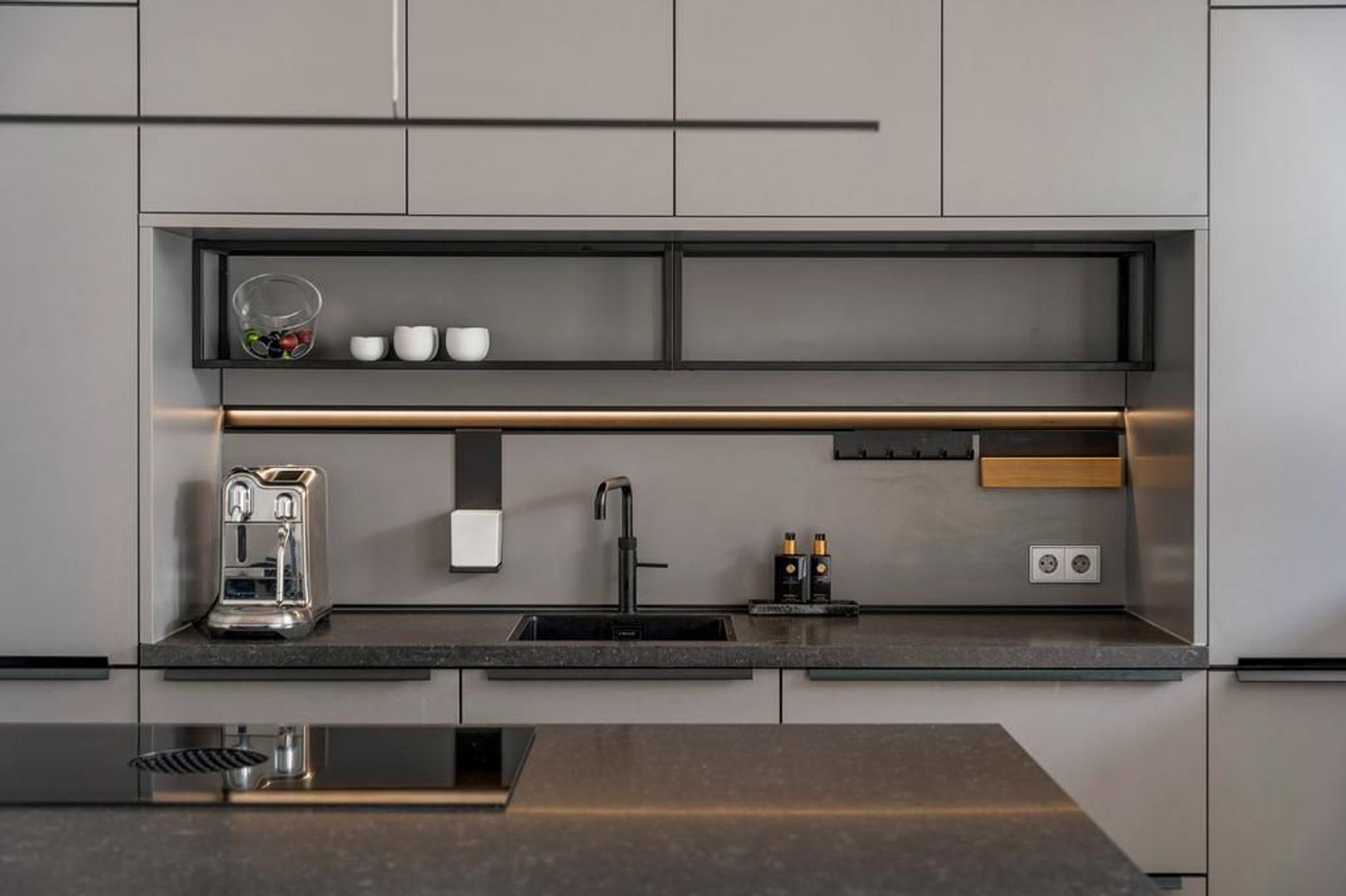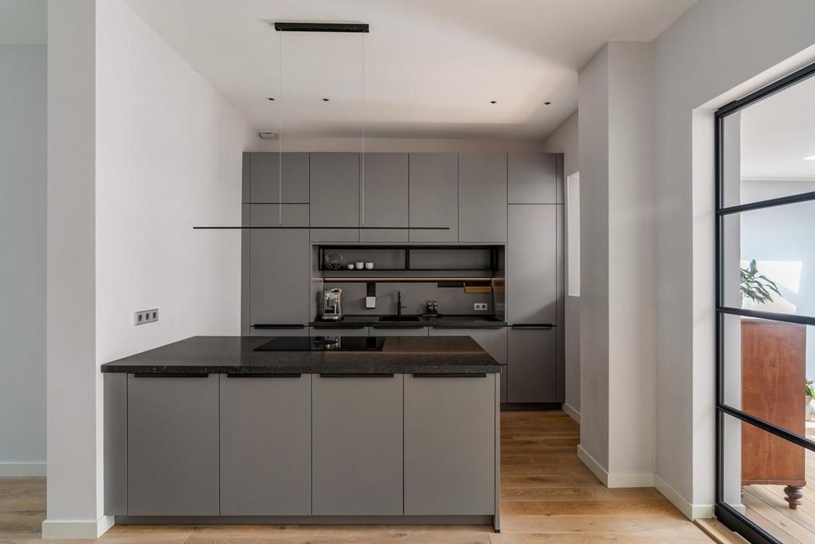 Entree start via de keurig bestrate voortuin met veel privacy en ruimte genoeg voor een zitje en eventueel de stalling van (bak)fietsen; binnenkomst via het fraaie tochtportaal met lambrisering, tegelvoer en openslaande deuren naar de gang met luxe toilet en fraaie trap met spijlen naar de 1e etage. Via dubbele staal/glazen deur toegang tot de woonkamer met schouw en een zeer smaakvolle luxe open keuken. Deze keuken bevat een kookeiland en een kastenwand en spoelgedeelte, hardstenen werkblad en alle inbouw apparatuur waaronder een Quooker, Bora inductiekookplaat met afzuiging en overige apparatuur van Bosch. Achterliggend is de aanbouw/serre met dakkoepel en van het voorkamer en keukengedeelte afsluitbaar via een grote staal/glazen kozijn met dubbele deuren. Door deze indeling lijkt het alsof de keuken in het midden van de woning geplaatst is. Vanuit de serre kom je via de schuifpui en via een trap met 3 treden in de royale bestrate achtertuin die op het Zuid/Oosten is georiënteerd. De gehele begane grond is voorzien van eiken vloerdelen parket.