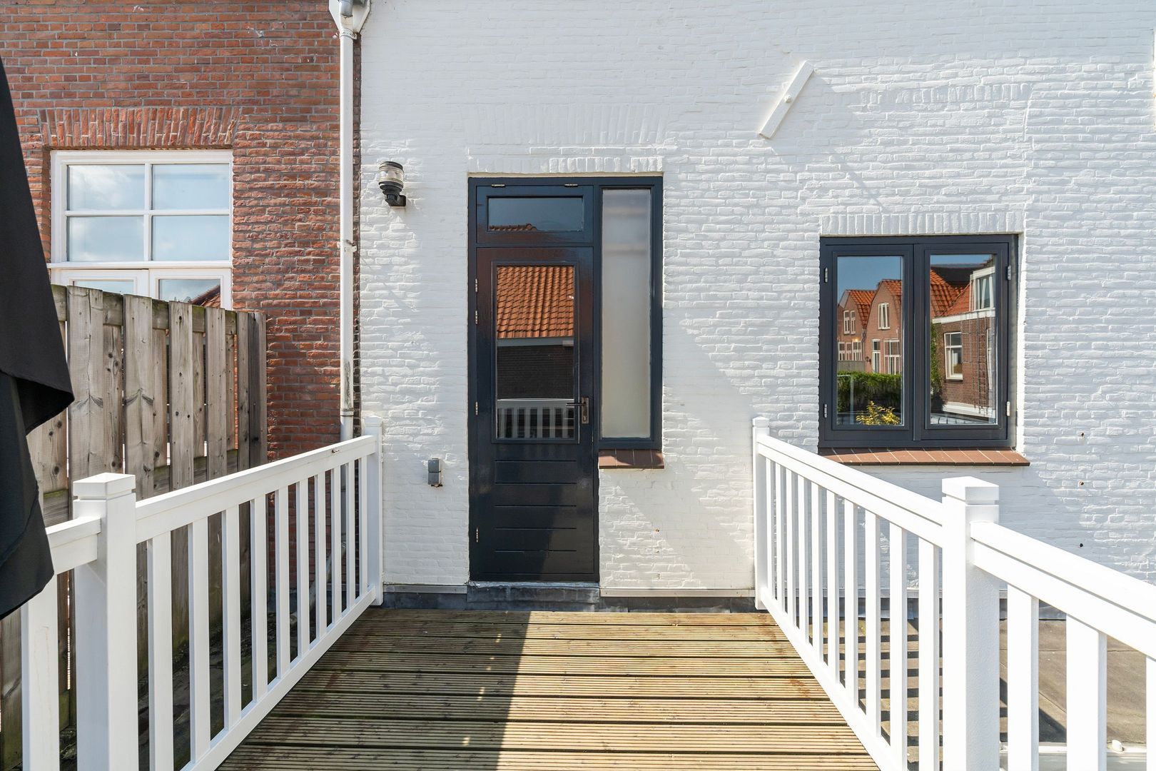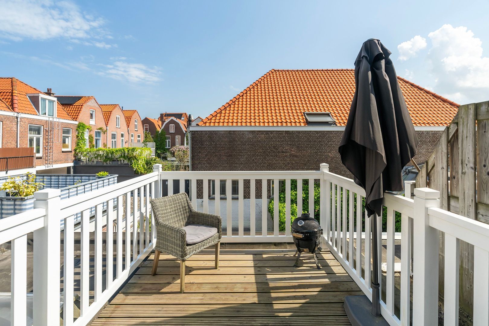 - Het dakterras is voorzien van houten vloerdelen en balustrade;