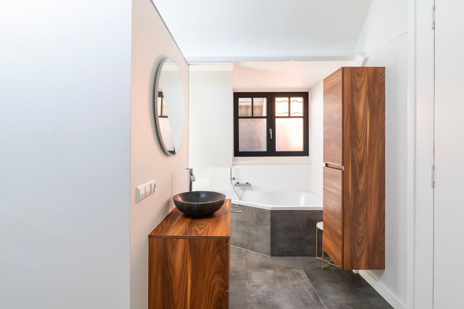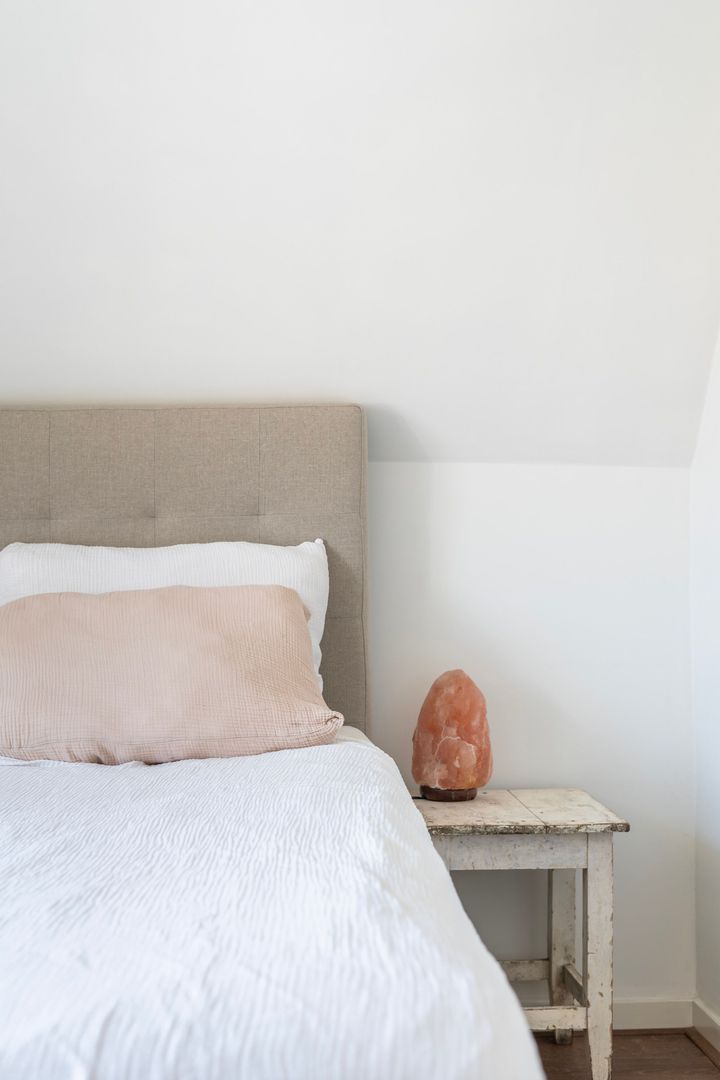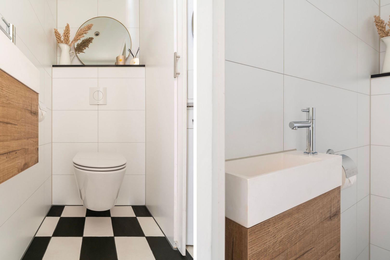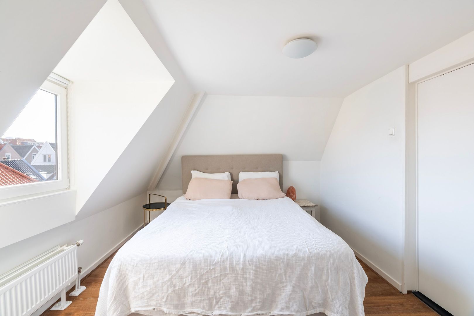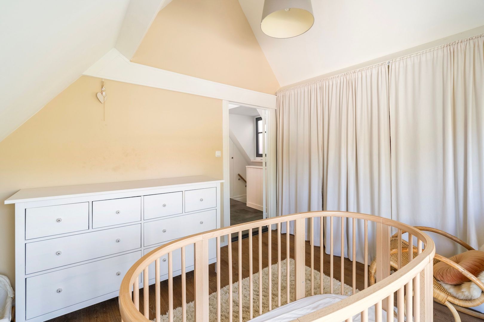 Trap naar de tweede etage; overloop met tegelvloer en opstelplaats cv ketel; en bergruimte; keurige sfeervolle achterkamer met dakkapel en voorzien van laminaatvloer; speelse semi open badkamer met vloerverwarming en voorzien van ruime inloopdouche met thermostaatkraan, fraai wastafelmeubel met waskom, ligbad, wandkast en dakraam; lichte voorkamer met een (nokhoogte 3.34) met laminaatvloer, balken plafond, bergruimte en twee raamkozijnen.