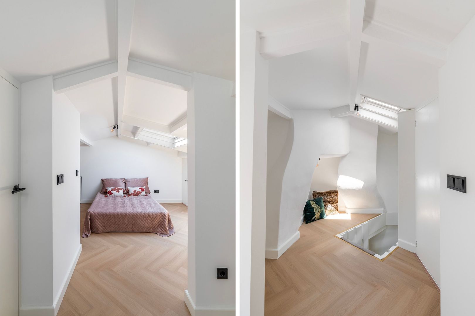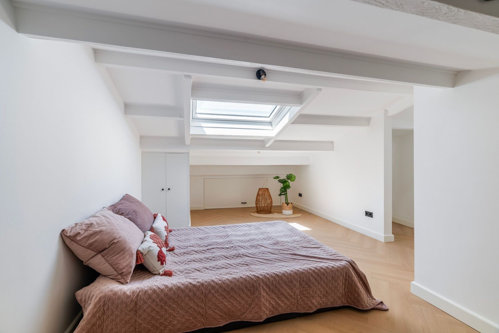 Overloop met berging; ruime slaapkamer met Velux dakraam; zeer veel bergruimtes aan zowel de voor als achterzijde.