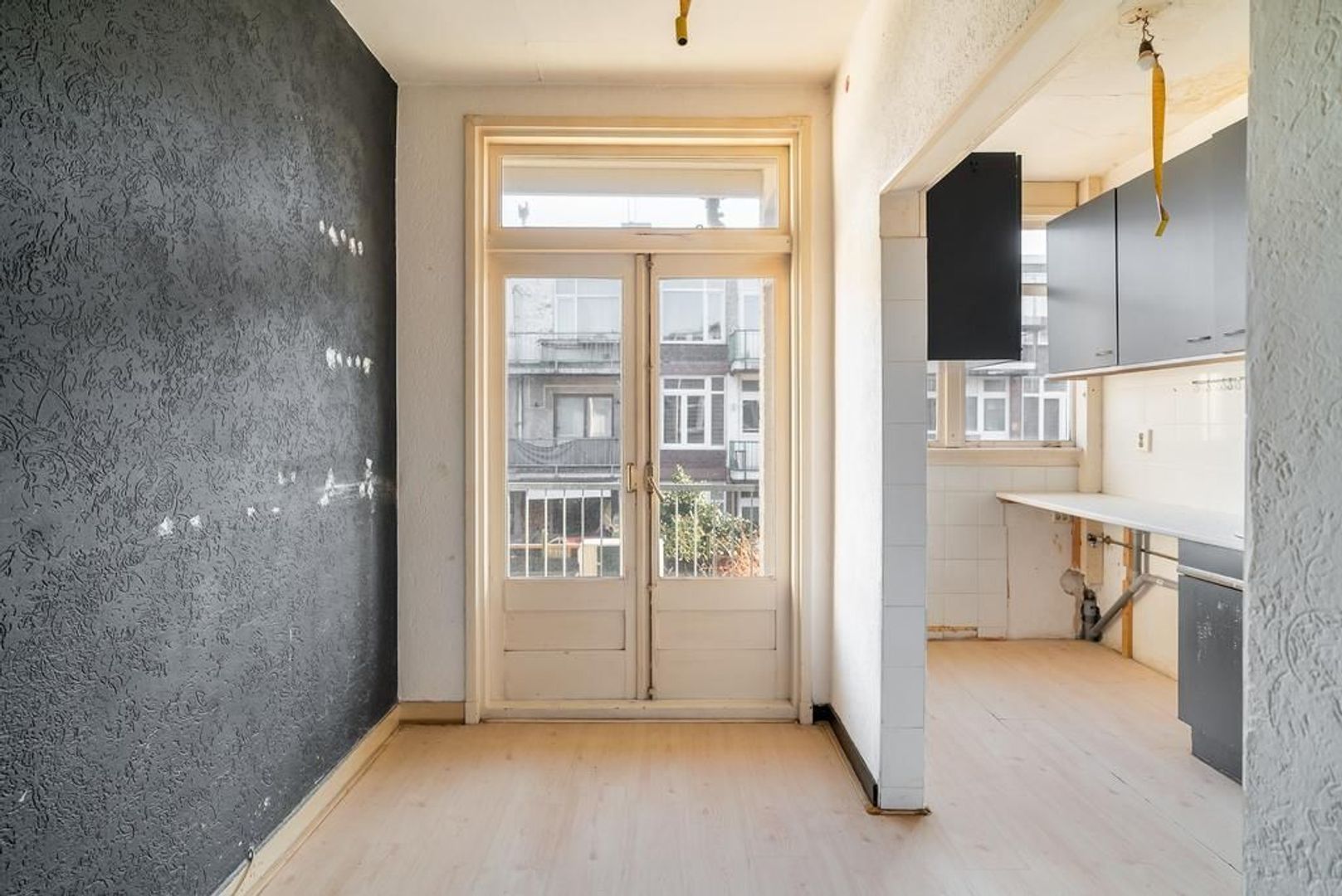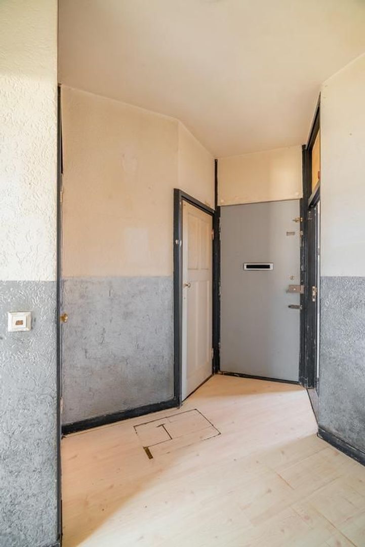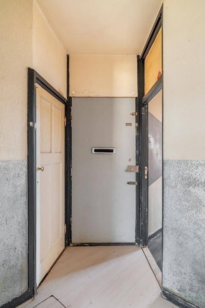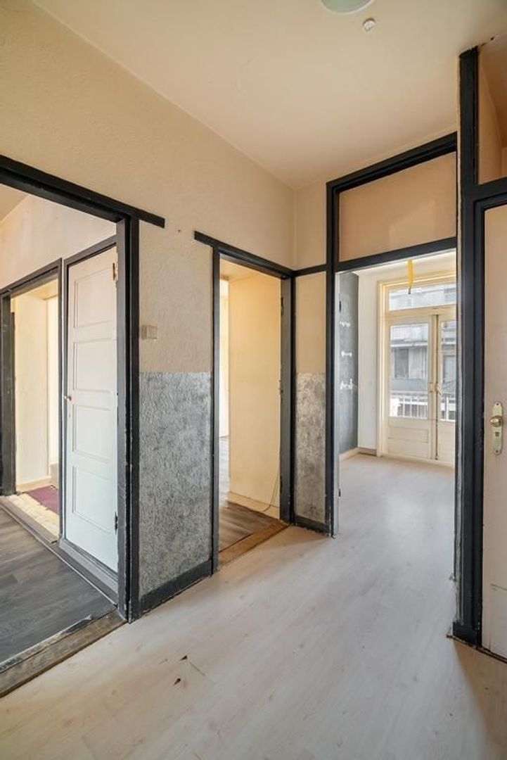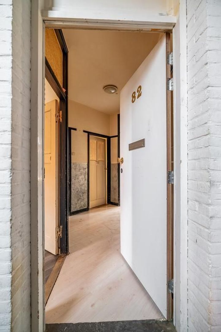 Woningentree via open portiek; gang met meterkast en een vaste kast; eenvoudig toilet; woonkamer en suite met een sfeervolle erker, 2 vaste kasten, schuifseparatie en openslaande deuren naar het balkon; nette keuken met gaskookplaat, afzuigkap, veel kastruimte en toegang tot het balkon; 1e slaapkamer aan de voorzijde; 2e slaapkamer aan de achterzijde met toegang tot het balkon en een doucheruimte; een 3e slaapkamer is te realiseren in de achterkamer van de woonkamer;