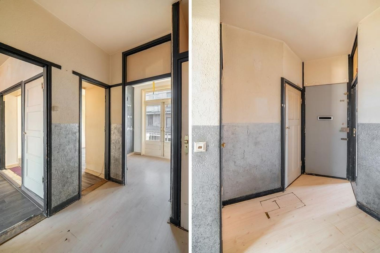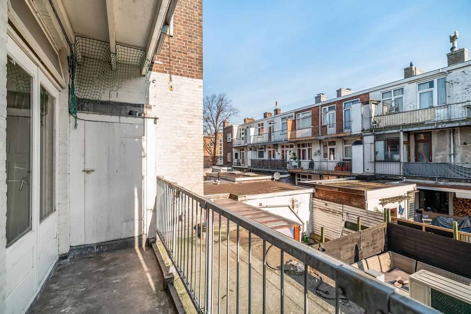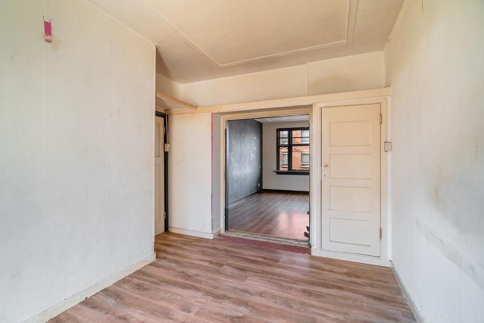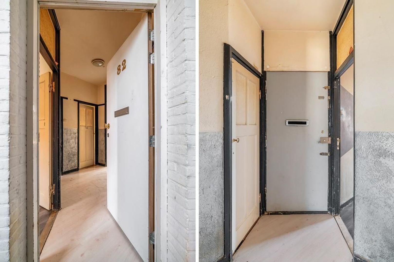 Woningentree via open portiek; gang met meterkast en een vaste kast; eenvoudig toilet; woonkamer en suite met een sfeervolle erker, 2 vaste kasten, schuifseparatie en openslaande deuren naar het balkon; nette keuken met gaskookplaat, afzuigkap, veel kastruimte en toegang tot het balkon; 1e slaapkamer aan de voorzijde; 2e slaapkamer aan de achterzijde met toegang tot het balkon en een doucheruimte; een 3e slaapkamer is te realiseren in de achterkamer van de woonkamer;