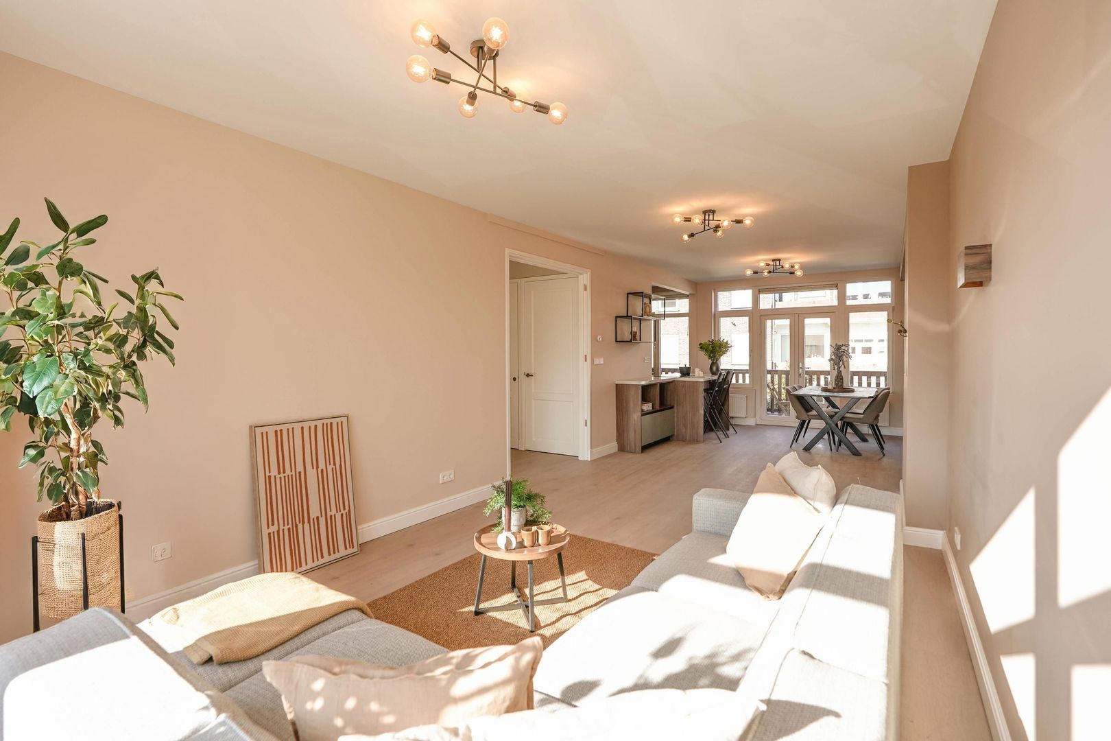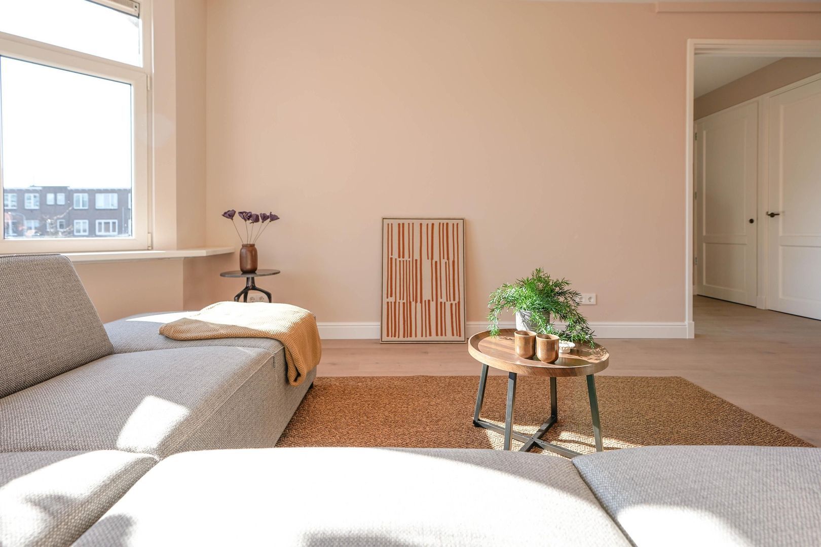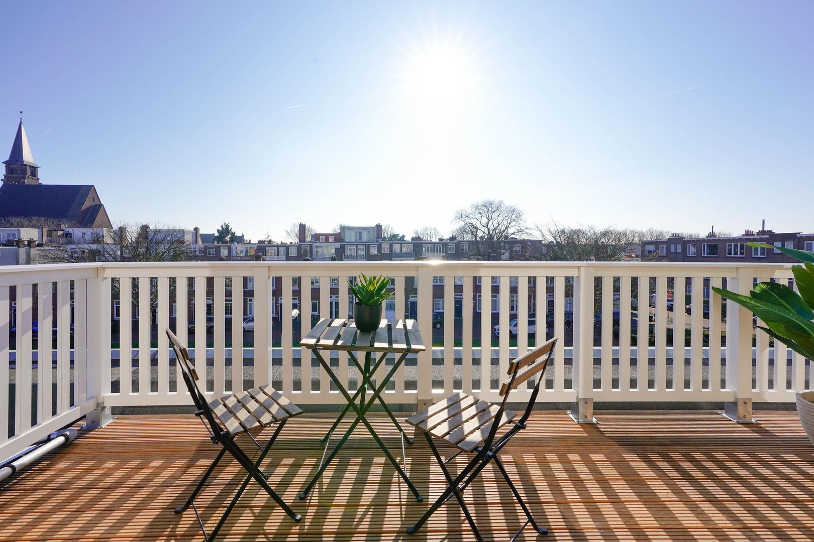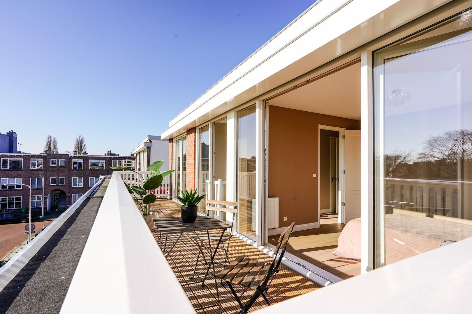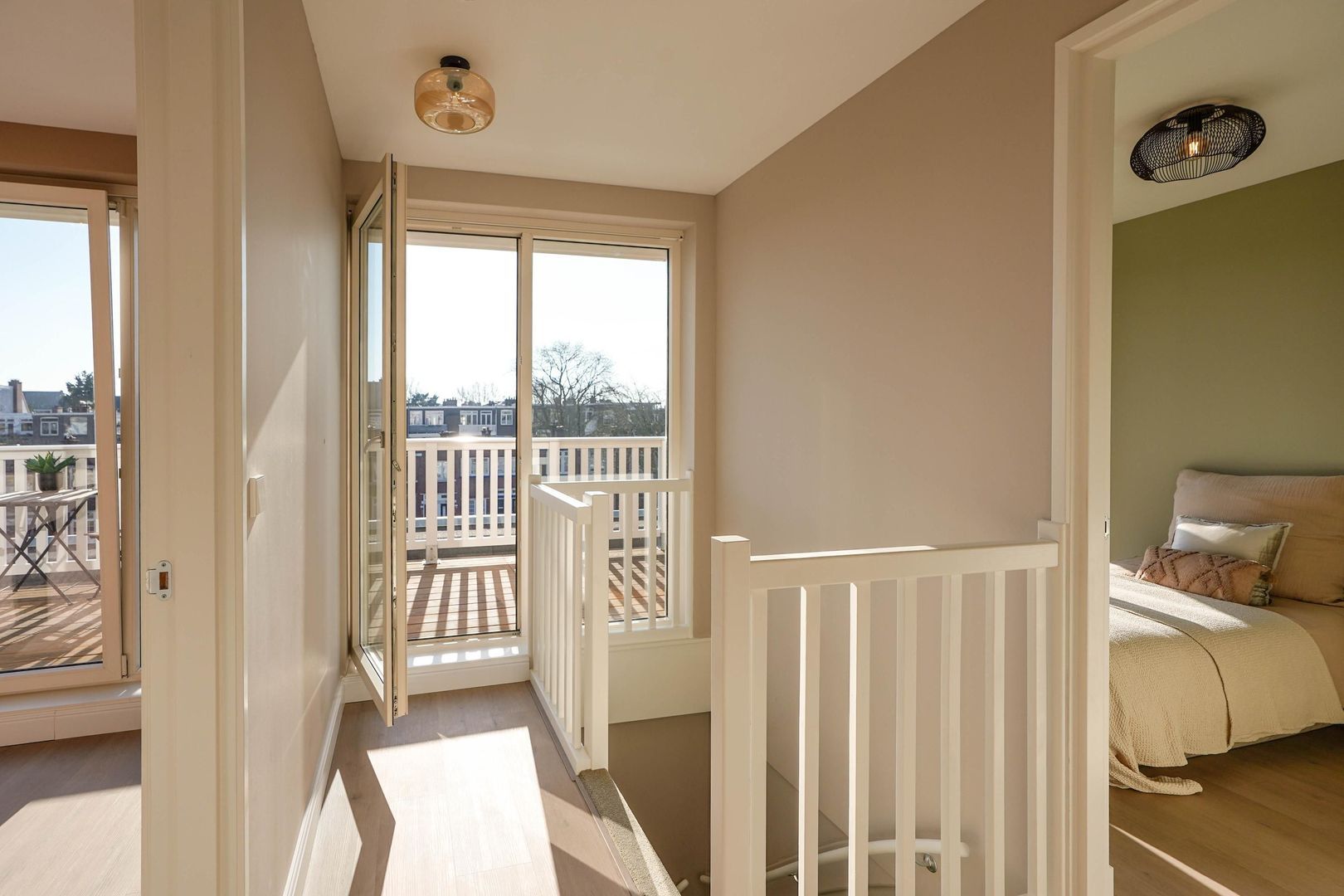 Bomenbuurt. Royaal en inpandig compleet gerenoveerd 6 kamer dubbel bovenhuis (117m²) op de 1e en 2e etage met 2 balkons en een fantastisch dakterras (16m²) met weids uitzicht! Dit luxe kantenklaarhuis is tijdens de renovatie voorzien van een dakopbouw en beschikt o.a. over een riante woonkamer met een luxe open keuken met high-end apparatuur, 5 slaapkamers, een luxe badkamers en 2 toiletten. Daarnaast beschikt de woning over kozijnen met HR++ glas, centrale verwarming met een nieuwe cv-ketel en radiatoren, strak stuc- en schilderwerk, nieuw leidingwerk (gas/water/elektra) en een fraaie eiken parketvloer. Bovendien wordt de woning geleverd met 6 maanden garantie op de renovatie en energielabel A!