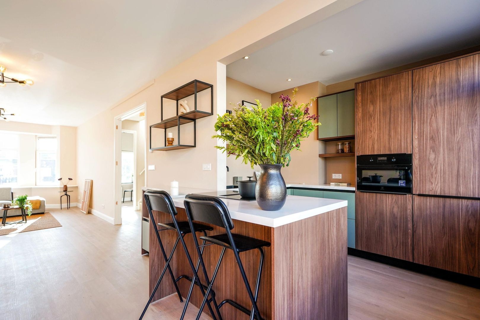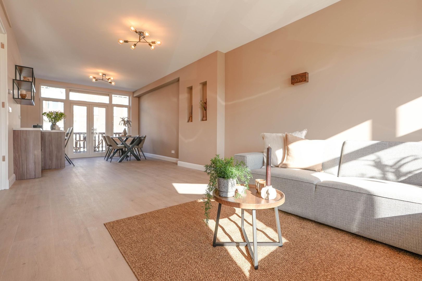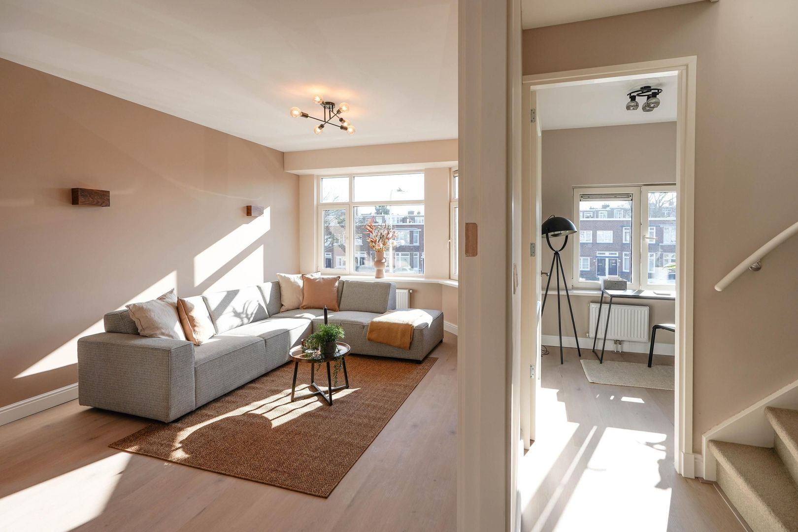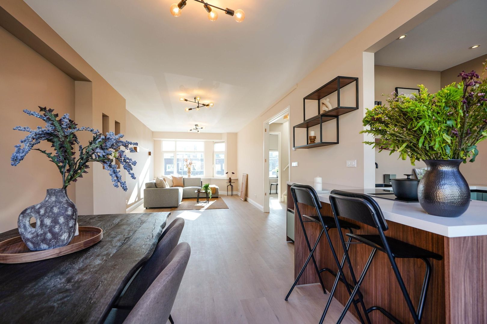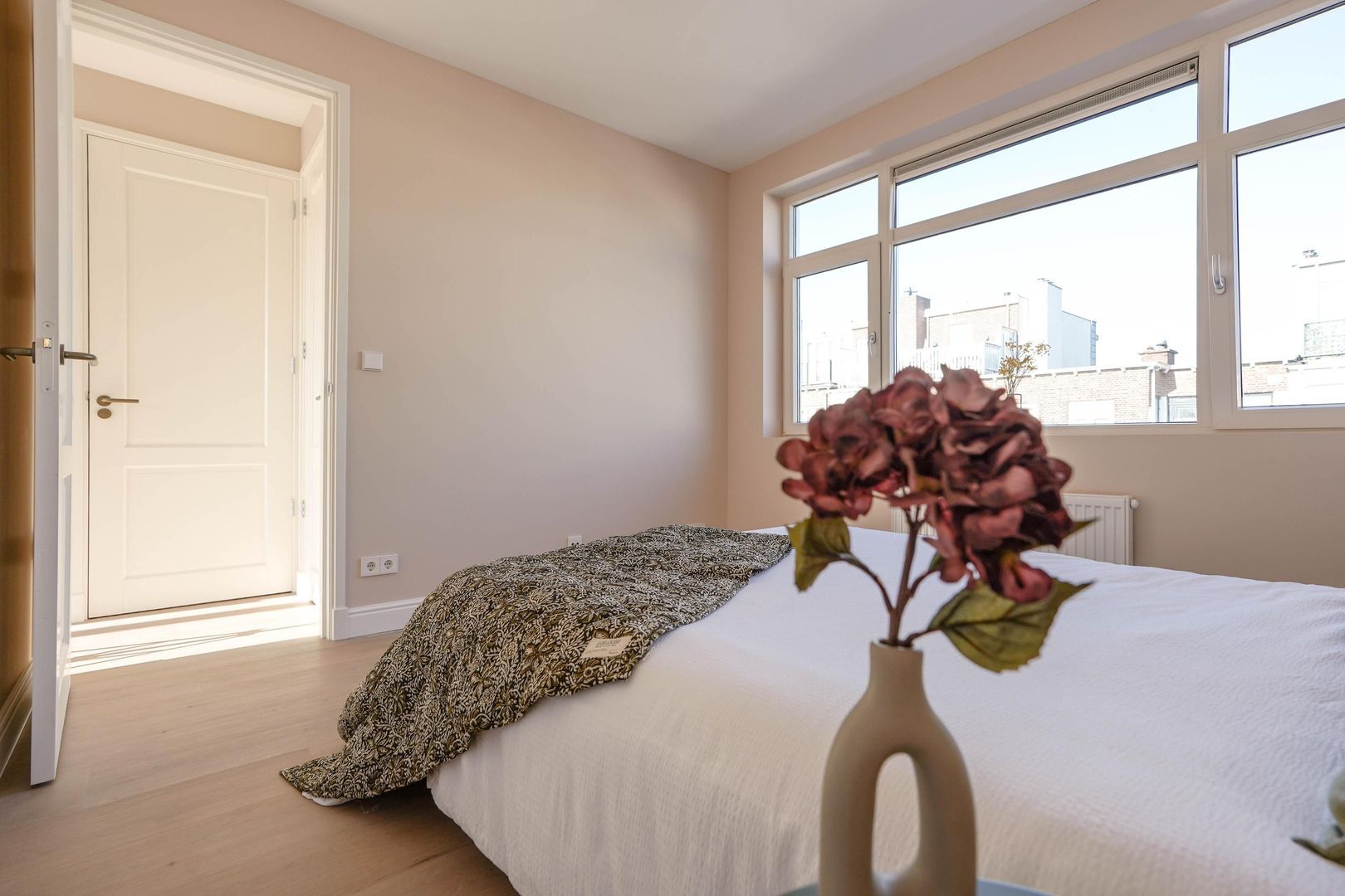 Bomenbuurt. Royaal en inpandig compleet gerenoveerd 6 kamer dubbel bovenhuis (117m²) op de 1e en 2e etage met 2 balkons en een fantastisch dakterras (16m²) met weids uitzicht! Dit luxe kantenklaarhuis is tijdens de renovatie voorzien van een dakopbouw en beschikt o.a. over een riante woonkamer met een luxe open keuken met high-end apparatuur, 5 slaapkamers, een luxe badkamers en 2 toiletten. Daarnaast beschikt de woning over kozijnen met HR++ glas, centrale verwarming met een nieuwe cv-ketel en radiatoren, strak stuc- en schilderwerk, nieuw leidingwerk (gas/water/elektra) en een fraaie eiken parketvloer. Bovendien wordt de woning geleverd met 6 maanden garantie op de renovatie en energielabel A!