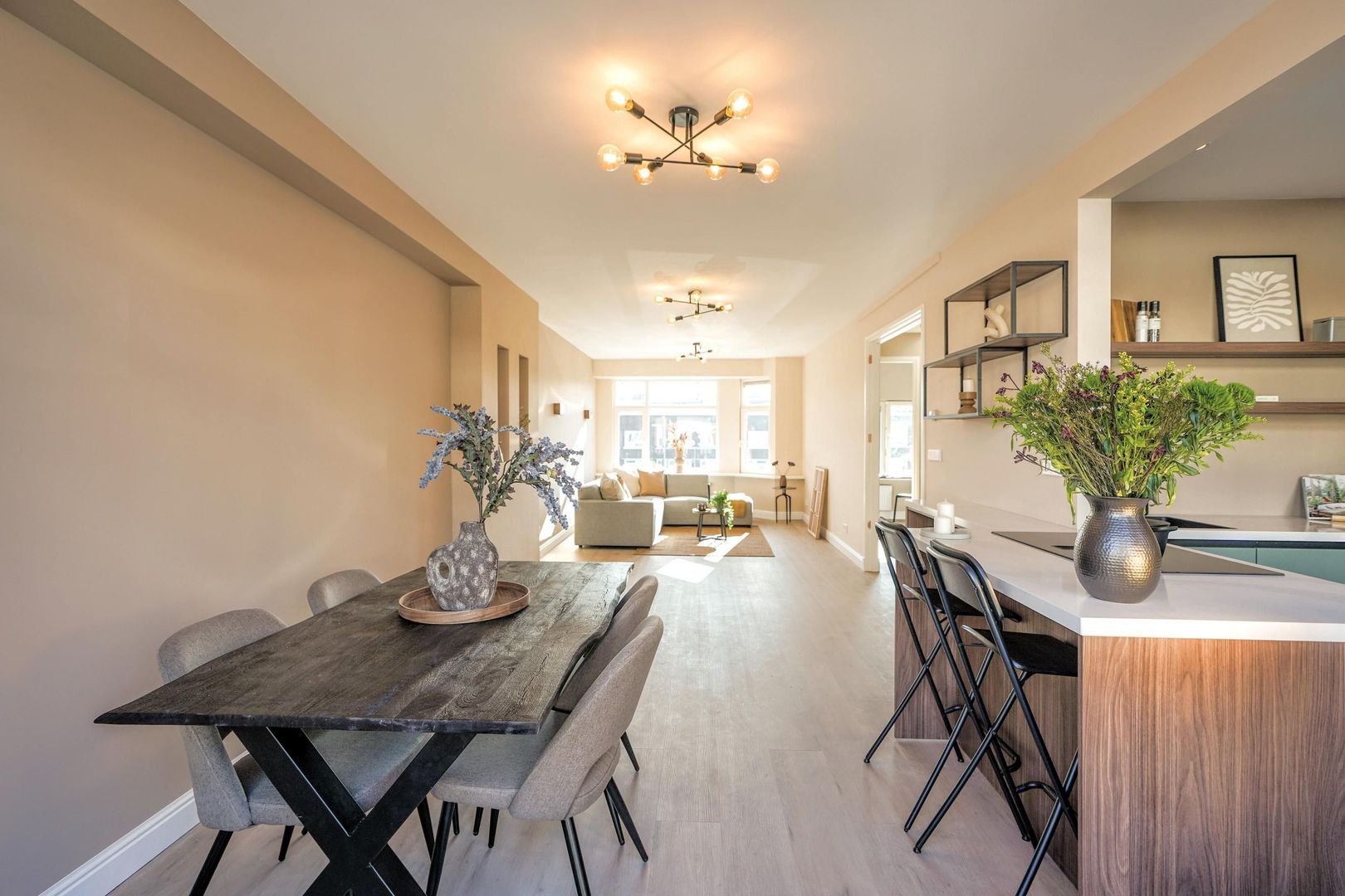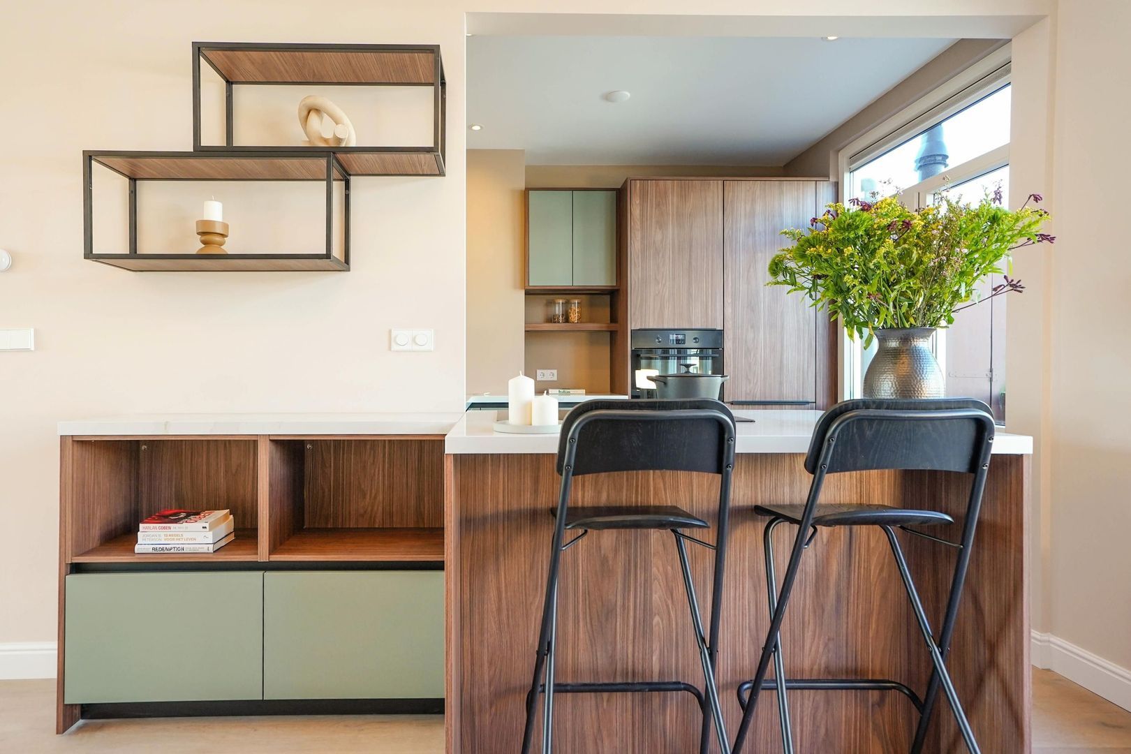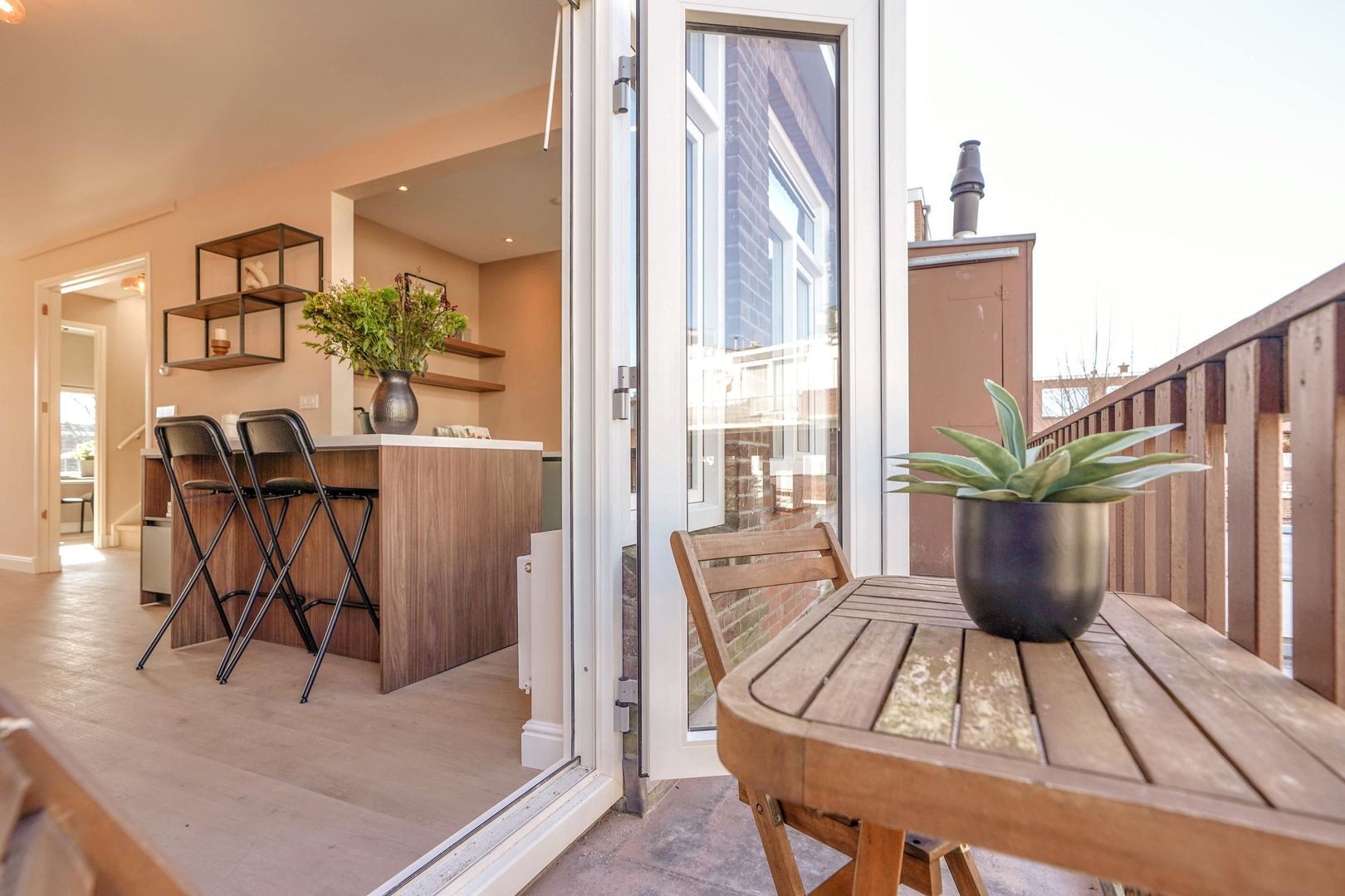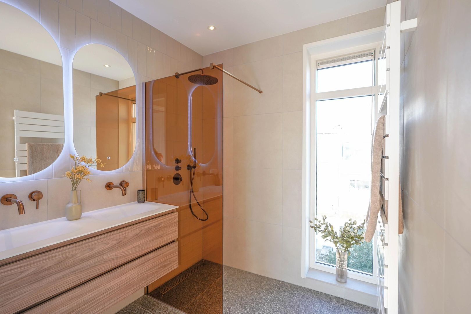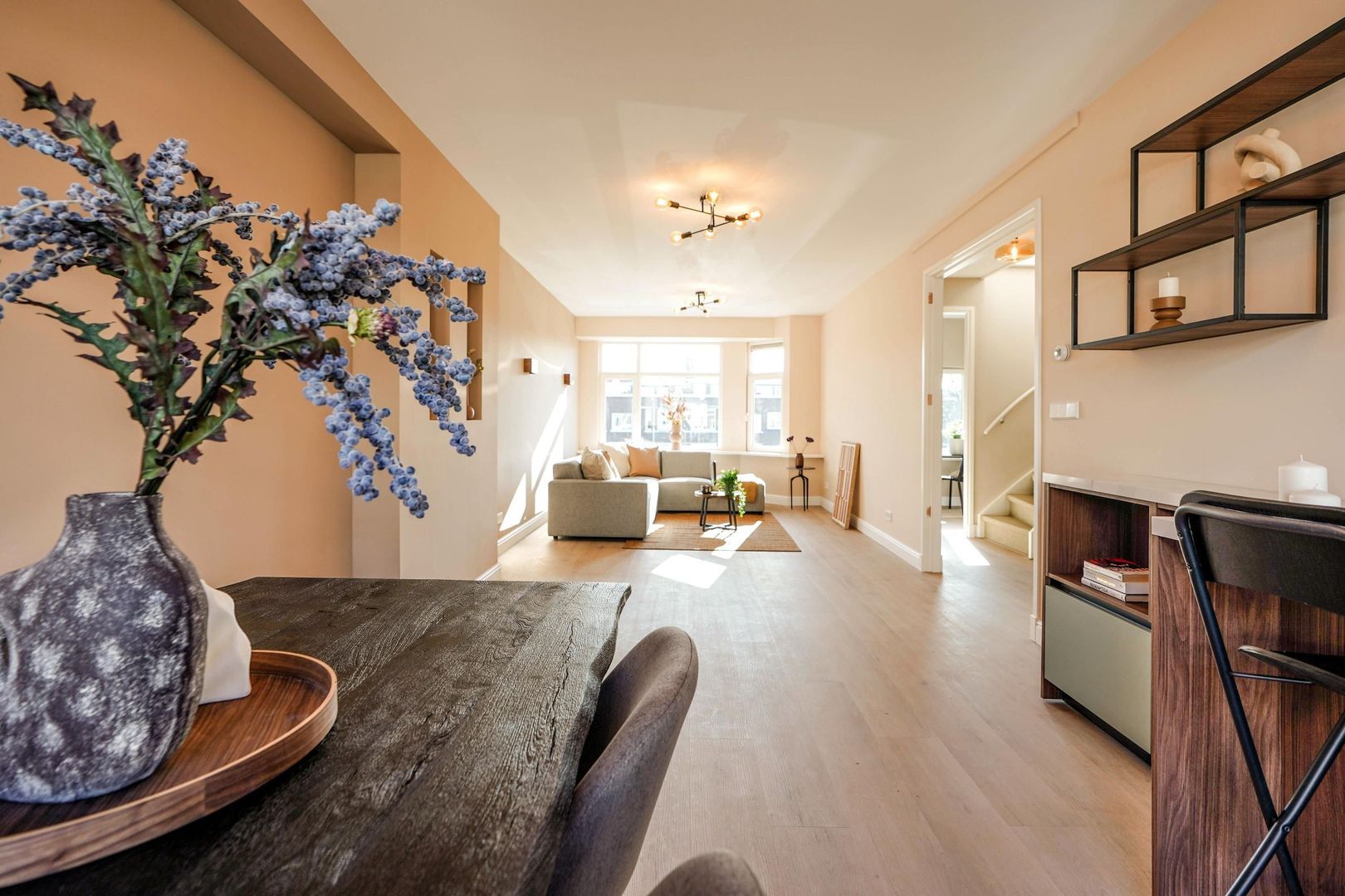 Bomenbuurt. Royaal en inpandig compleet gerenoveerd 6 kamer dubbel bovenhuis (117m²) op de 1e en 2e etage met 2 balkons en een fantastisch dakterras (16m²) met weids uitzicht! Dit luxe kantenklaarhuis is tijdens de renovatie voorzien van een dakopbouw en beschikt o.a. over een riante woonkamer met een luxe open keuken met high-end apparatuur, 5 slaapkamers, een luxe badkamers en 2 toiletten. Daarnaast beschikt de woning over kozijnen met HR++ glas, centrale verwarming met een nieuwe cv-ketel en radiatoren, strak stuc- en schilderwerk, nieuw leidingwerk (gas/water/elektra) en een fraaie eiken parketvloer. Bovendien wordt de woning geleverd met 6 maanden garantie op de renovatie en energielabel A!