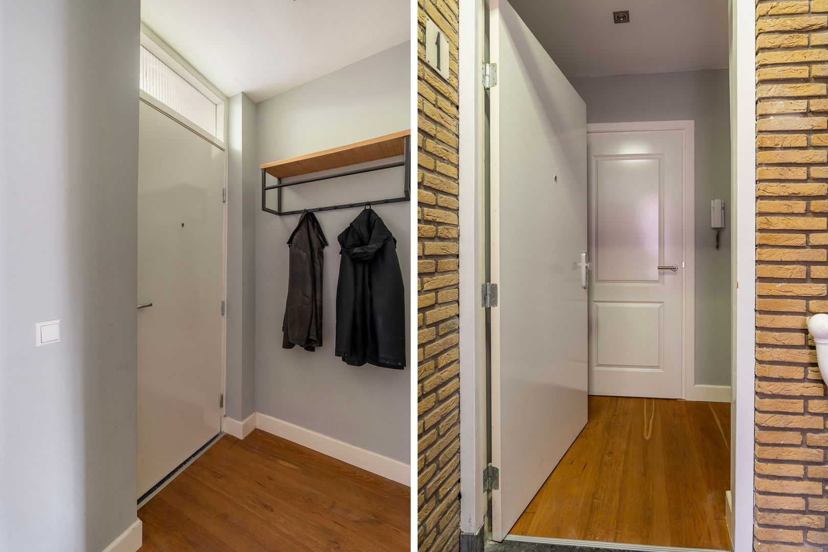 Afgesloten portiek; trapopgang naar entree woning op 1e etage; Gang; ruime woonkamer (ca. 6,51x4,55m) mooie houten lamel parketvloer; moderne open eetkeuken voorzien van alle apparatuur (Siemens); o.a. vaatwasser, kookplaat, design afzuigkap, oven, magnetron, koel-vriescombi en vaatwasser; luxe badkamer (ca. 2,35x1.,6m) met wastafel met natuurstenen werkblad en een inloopdouche en toilet; slaapkamer (ca. 3,67x3,02m) en 2e slaapkamer/werkkamer (ca. 3,95x2,08m) met deur naar balkon.