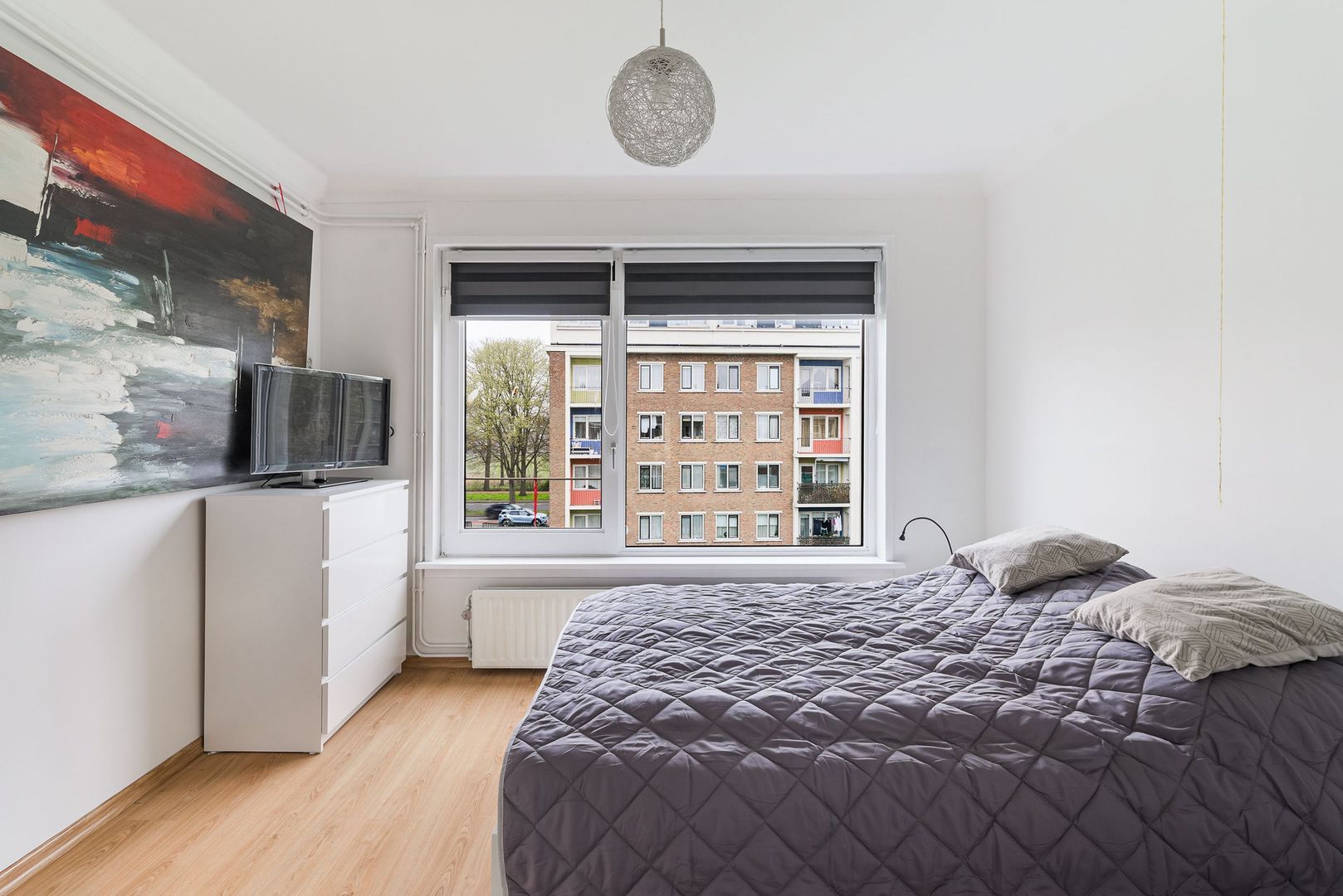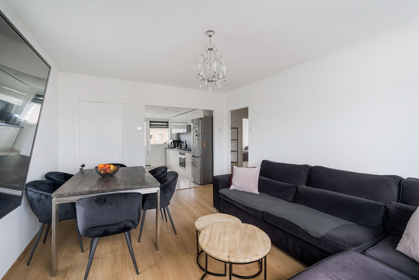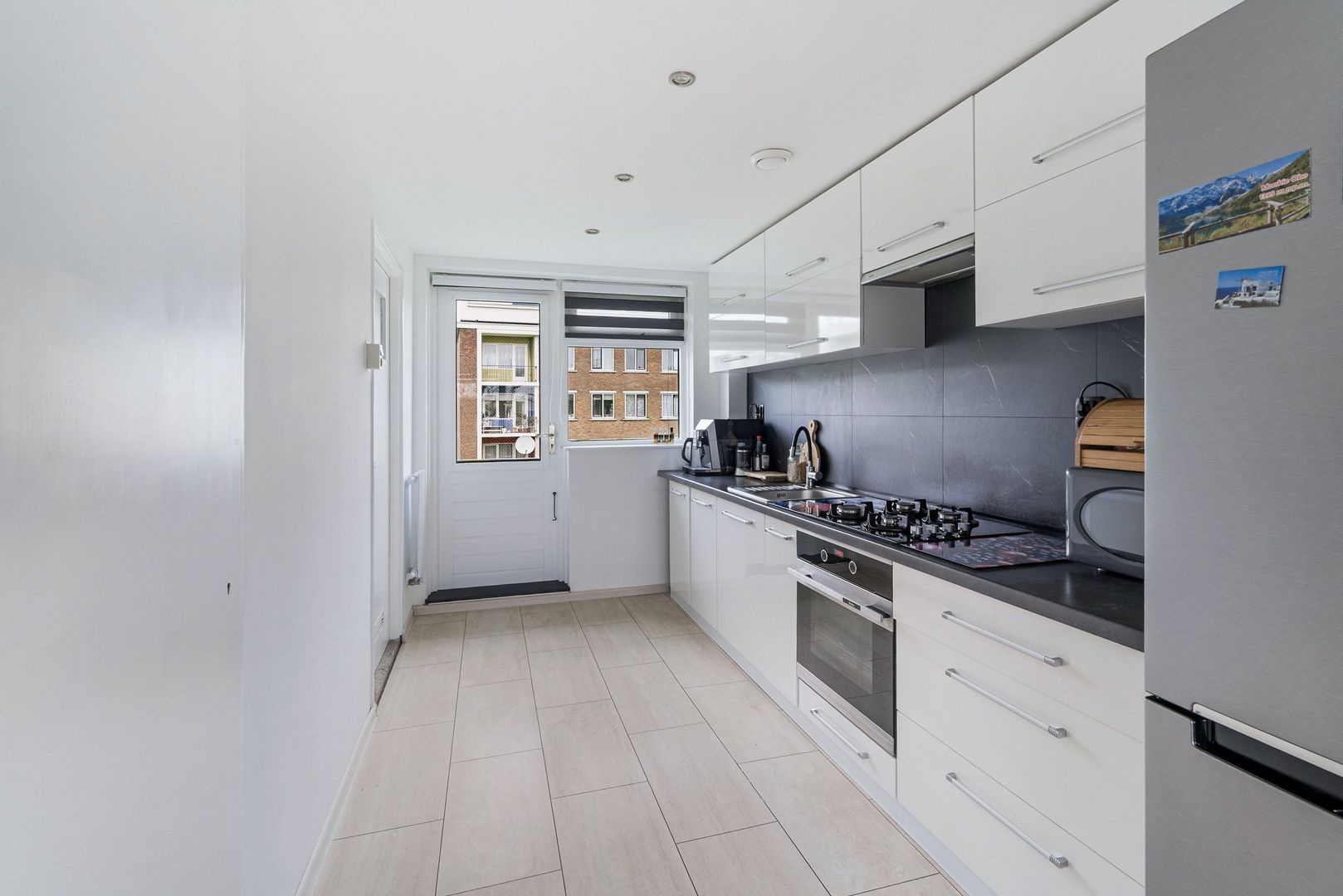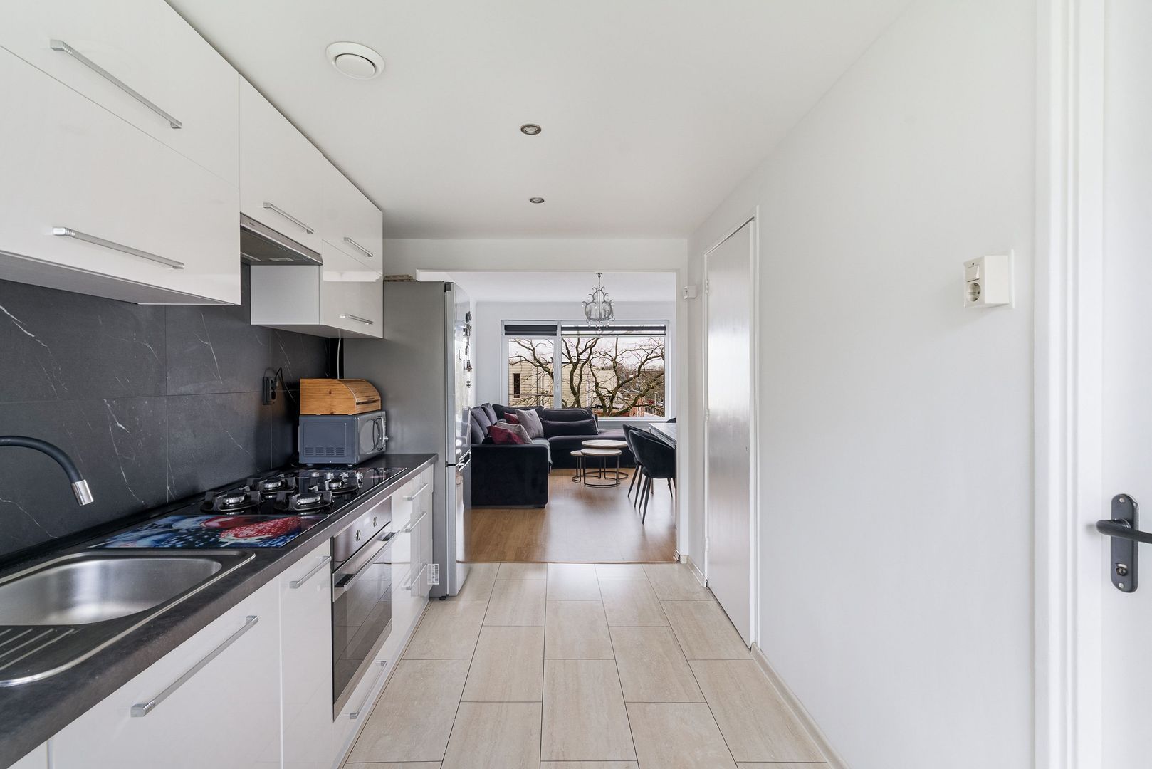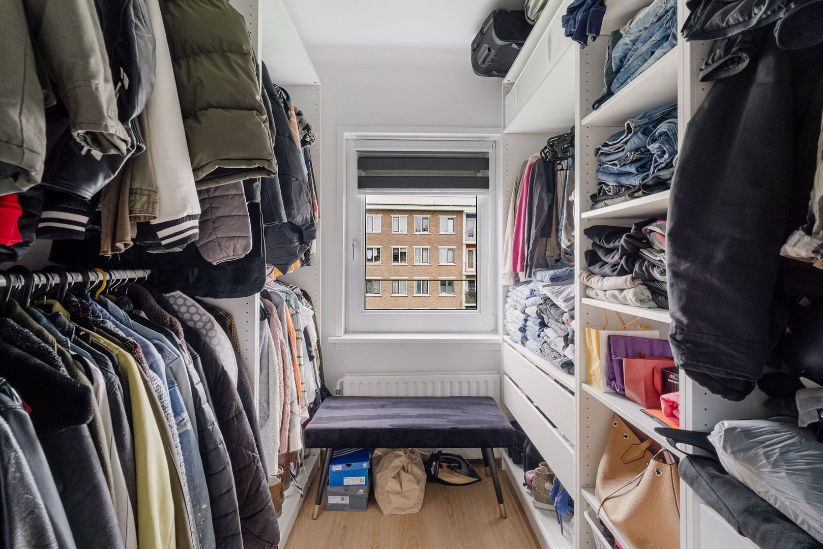 Entree via gesloten portiek; trap naar de entree woning op de 2e etage; riante hal met meterkast; woonkamer met veel licht door hoekligging, vaste kast, moderne open keuken voorzien van 4-pits gaskookplaat, afzuigkap, oven, vaatwasser en toegang tot het balkon met vaste kast en cv-opstelling; vaste berging in keuken met wasmachineaansluiting; 1e slaapkamer aan de achterzijde; 2e slaapkamer aan de voorzijde; 3e slaapkamer aan de voorzijde; kamertje in gebruik als walk in closet aan de achterzijde; moderne badkamer met inloopdouche en wastafelmeubel; separaat toilet met fonteintje;