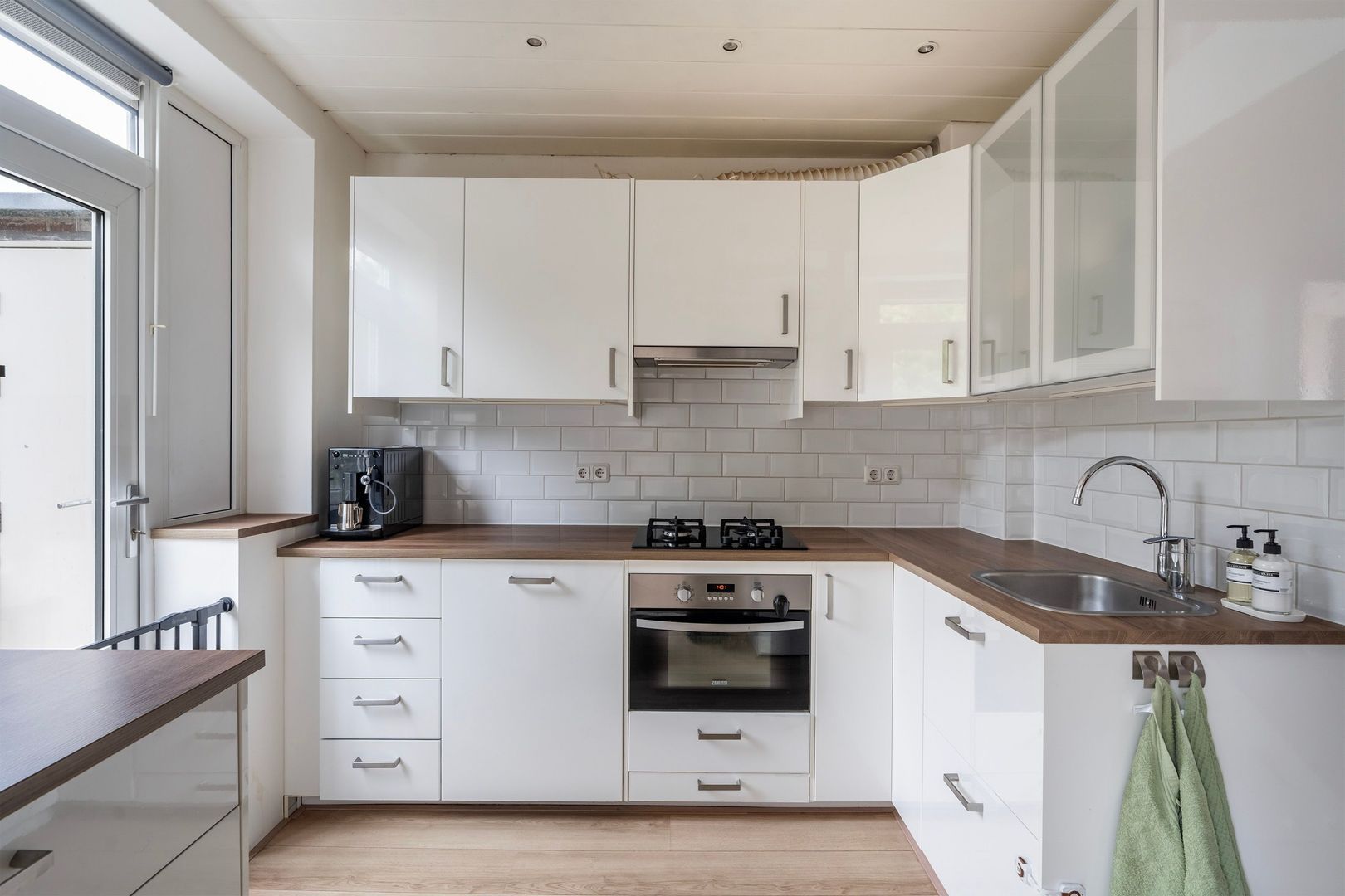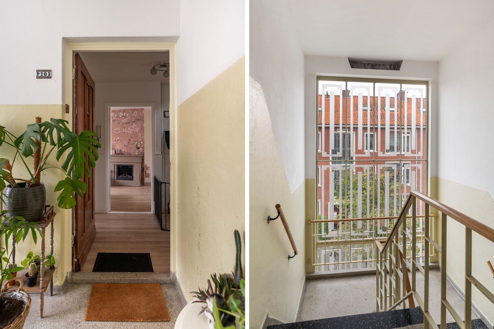 Afgesloten centrale entree met trappenhuis naar de berging en woningentree op de 2e etage; hal met meterkast; net toilet; woonkamer met toegang tot het balkon; moderne open keuken in U opstelling welke o.a. is voorzien van een een gaskookplaat, afzuigkap, oven, vaatwasser, koel-vriescombinatie en toegang tot het balkon; 1e slaapkamer aan de voorzijde;
