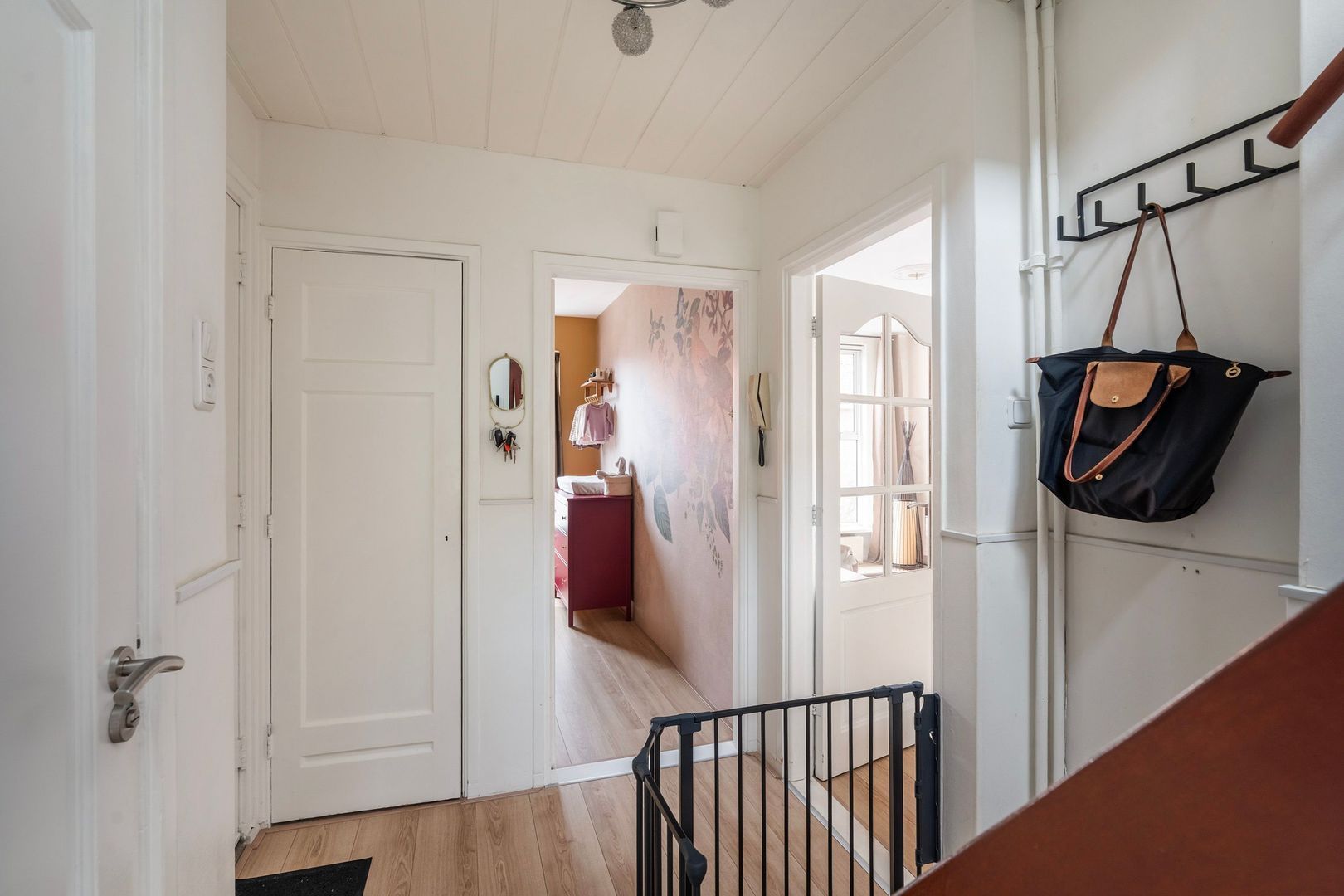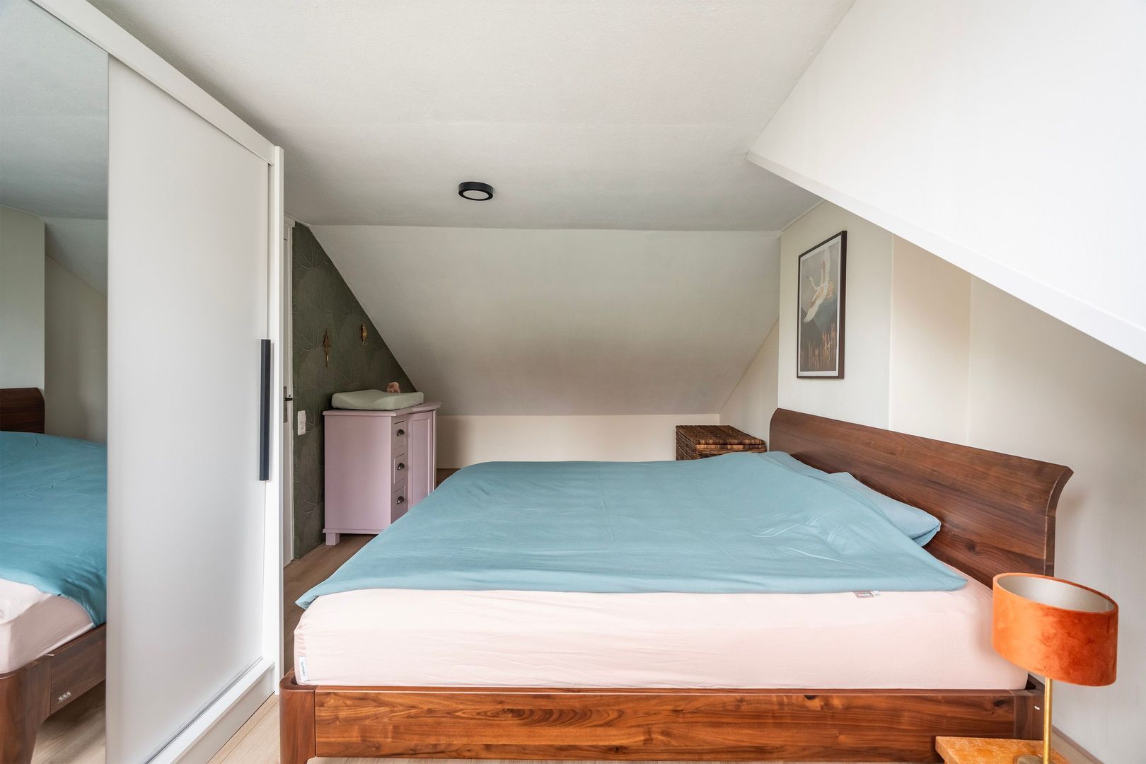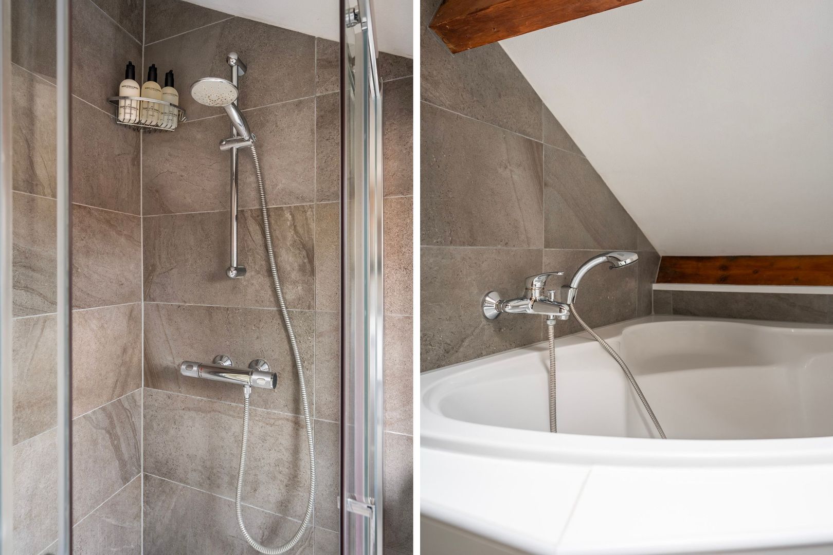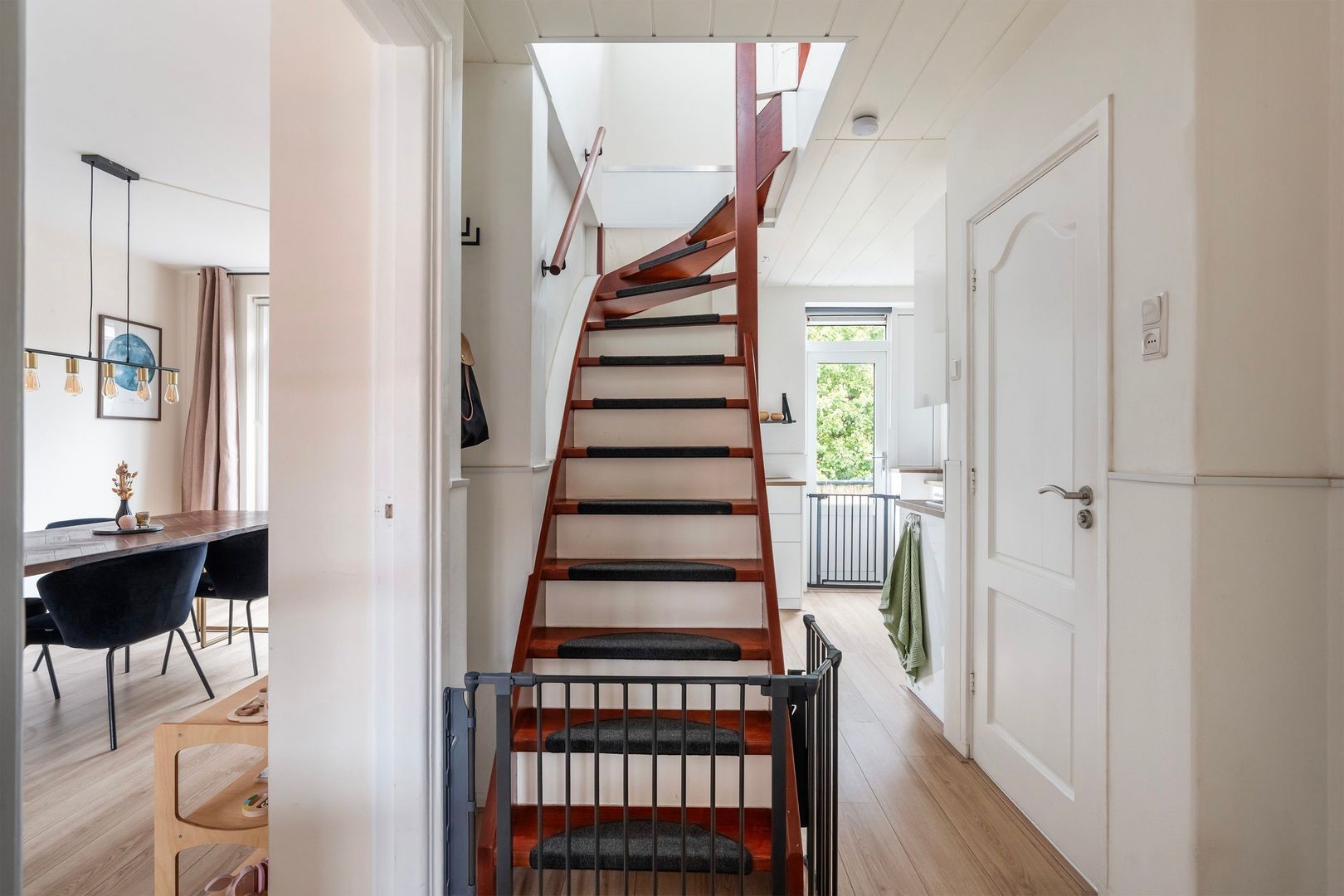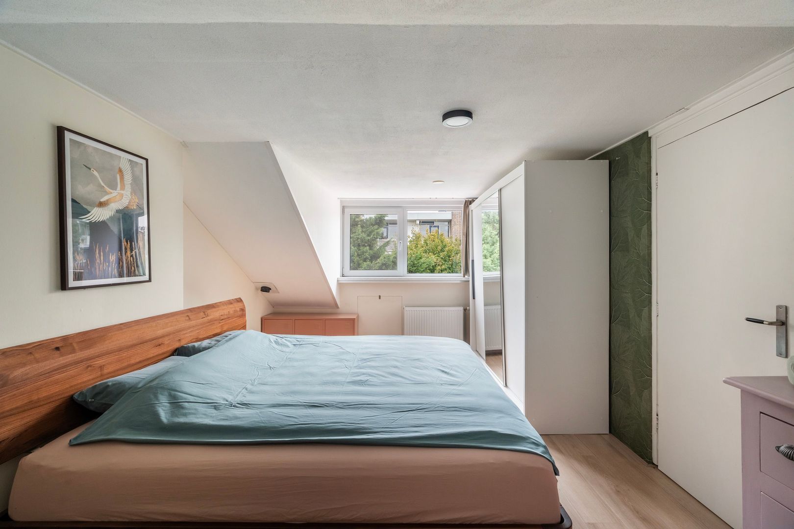 Trap vanuit de hal naar de overloop op de 3e etage; overloop met de wasmachineaansluiting en een vaste kast met de cv-opstelling; ruime 2e slaapkamer met dakkapel; moderne ruime badkamer met een douchecabine, hoekligbad, wastafel en toilet;