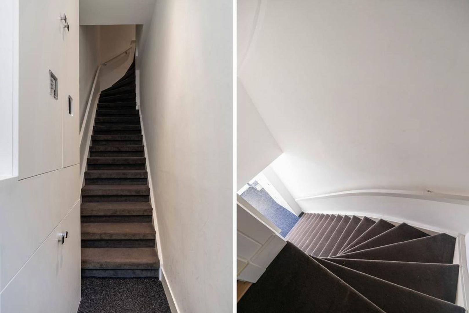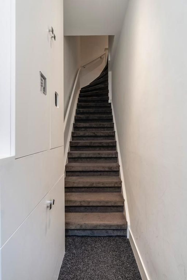 Gezamenlijke entree met brievenbussen, videofooninstallatie en meterkasten; trappenhuis naar 1e etage.