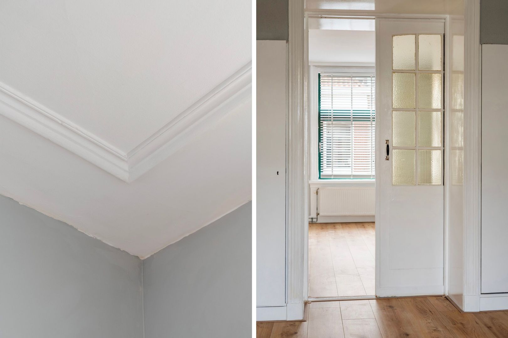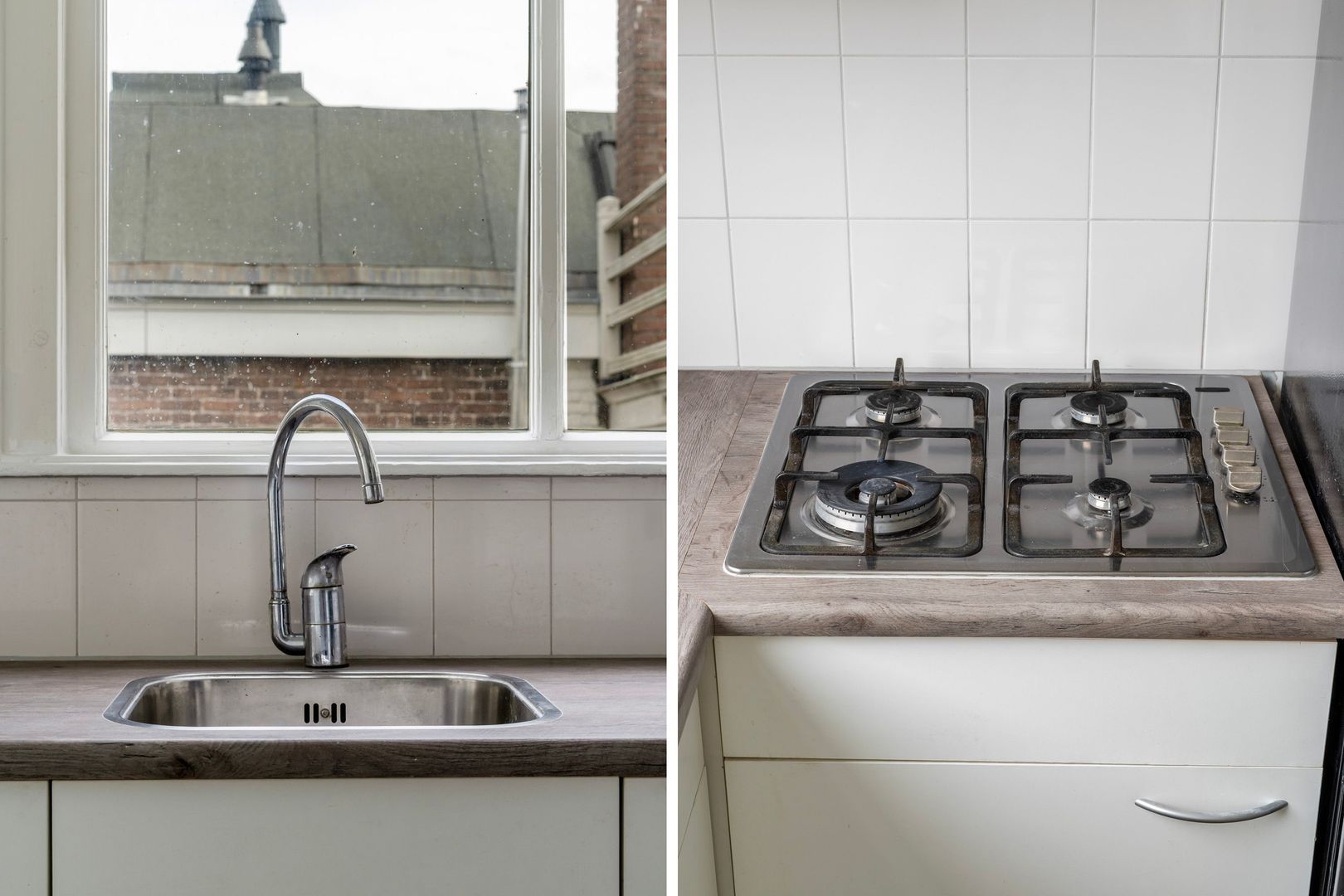 Royaal centraal entree op de begane grond; Trap naar de 2e etage. Entree appartement. Royale voorkamer ensuite met de achterkamer met toegang tot het balkon en toegang tot een halletje vanuit waar de toilet en de keuken bereikbaar. Via hier ook de toegang tot de nette douche. De keuken is netjes met diverse apparatuur. De woning is voorzien van laminaat vloeren.