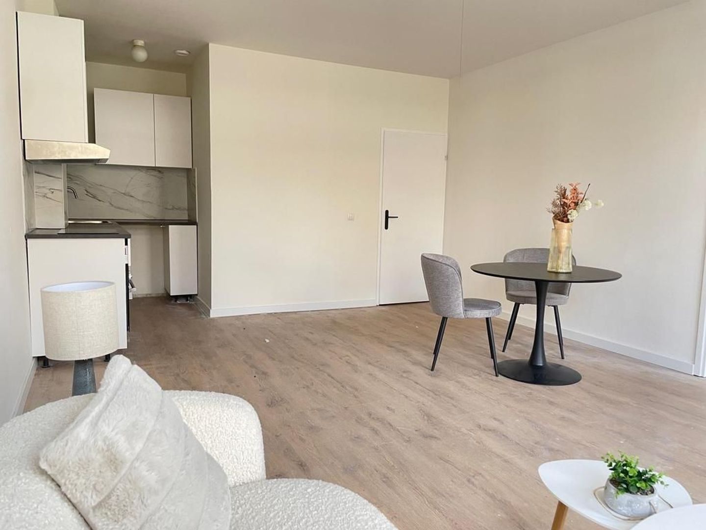 Centrale entree met toegang tot de fietsenruimte en wasruimte. Via trappenhuis naar de 2e etage. Entree woning halletje: woonkamer met open keuken. De keuken is voorzien van ingebouwde inductiekookplaat, afzuigkap, onderbouw koelkast, oven, ruimte voor vaatwasser of wasmachine, bovenkasten en boiler.; via woonkamer toegang tot slaapkamer aan de voorzijde; via halletje toegang tot de badkamer met douche, toilet en wastafelmeubel.