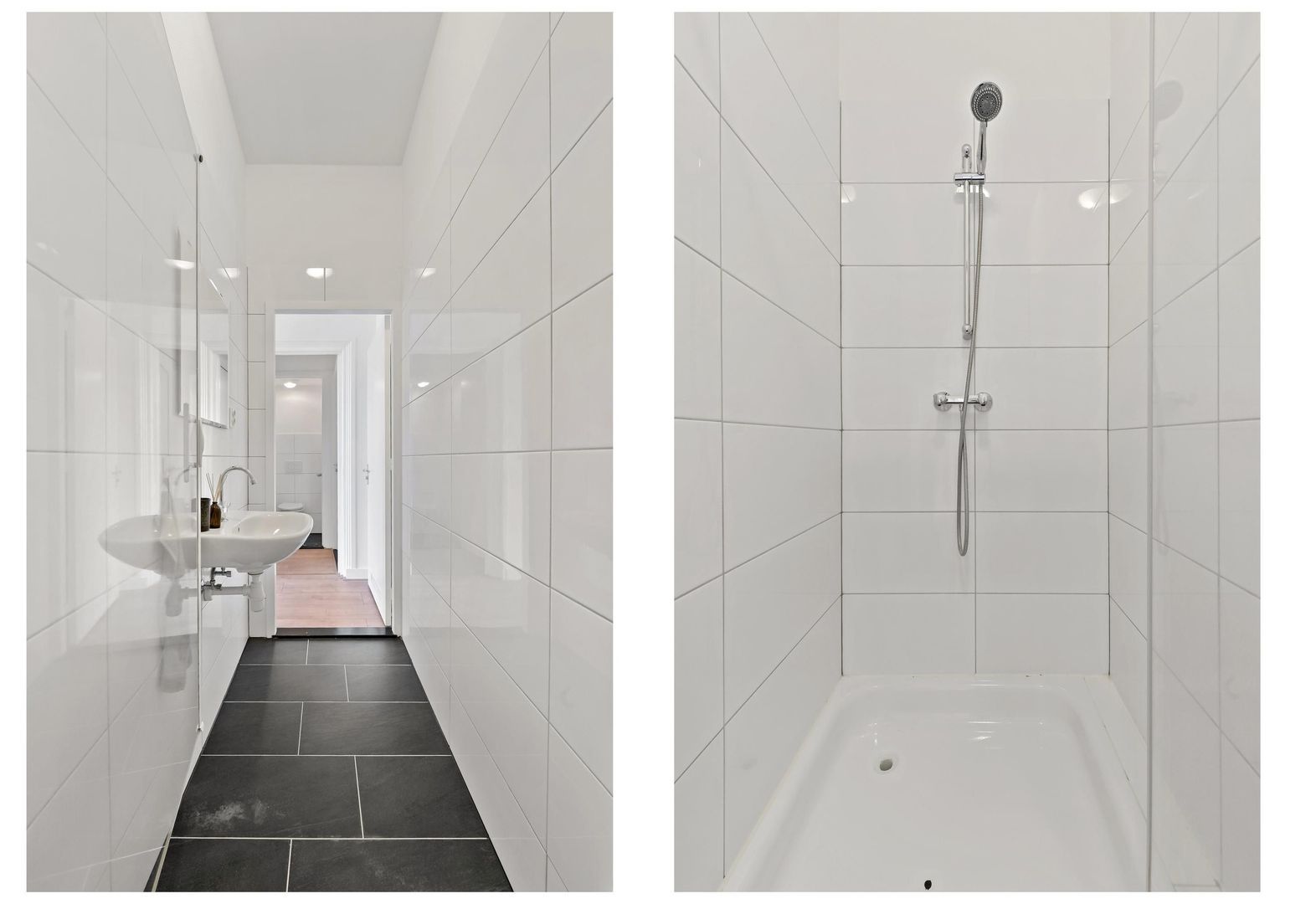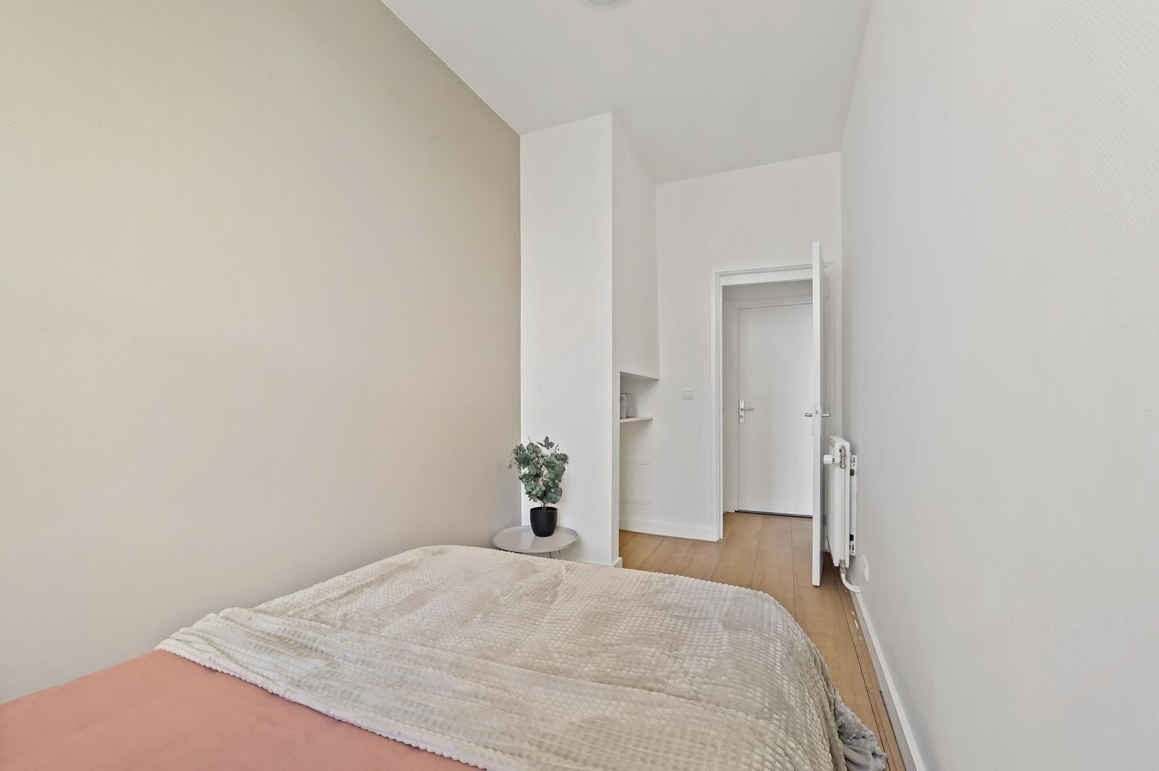 ruime slaapkamer; Vanuit de woonkamer bereikt u de moderne badkamer met wastafel en douche.