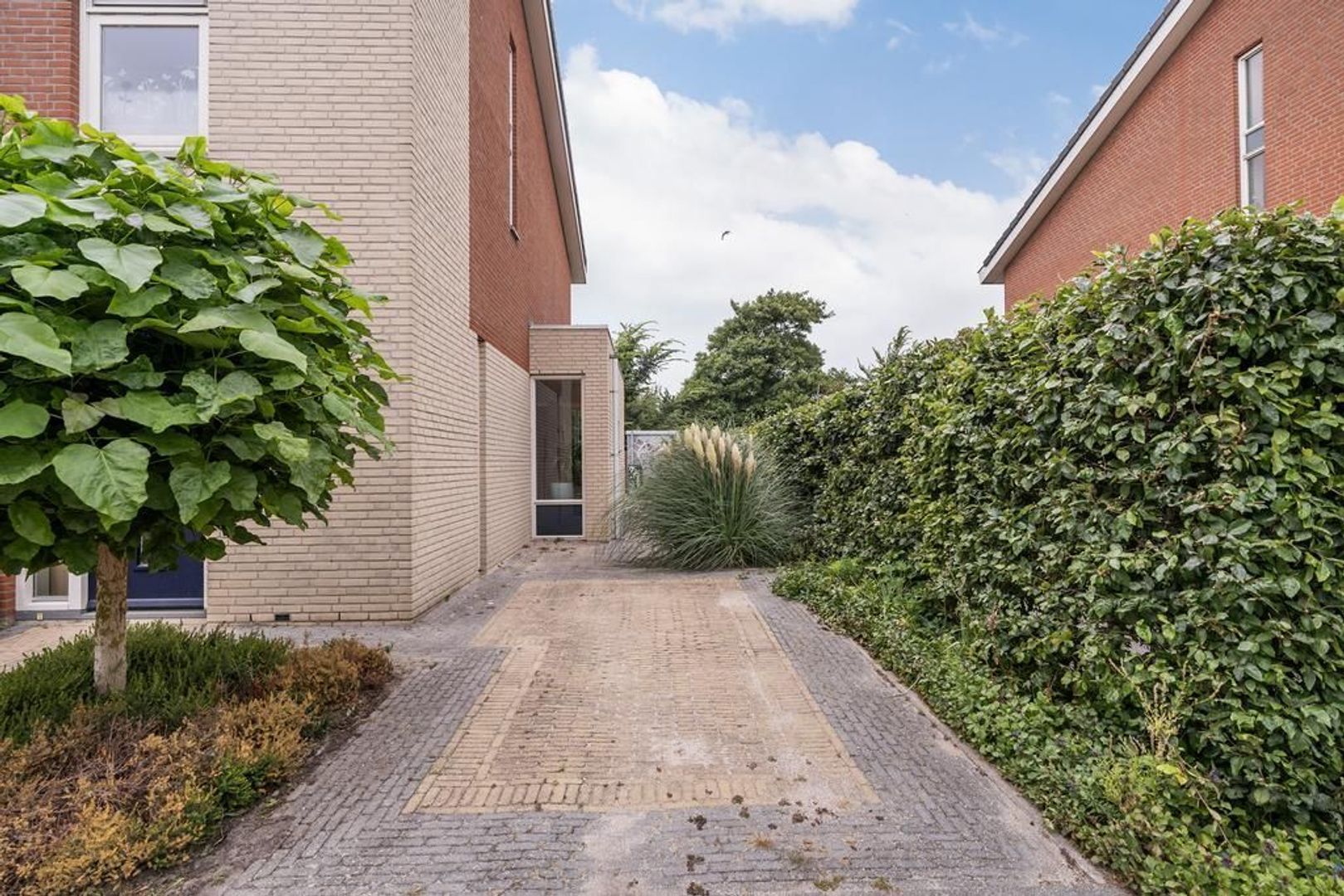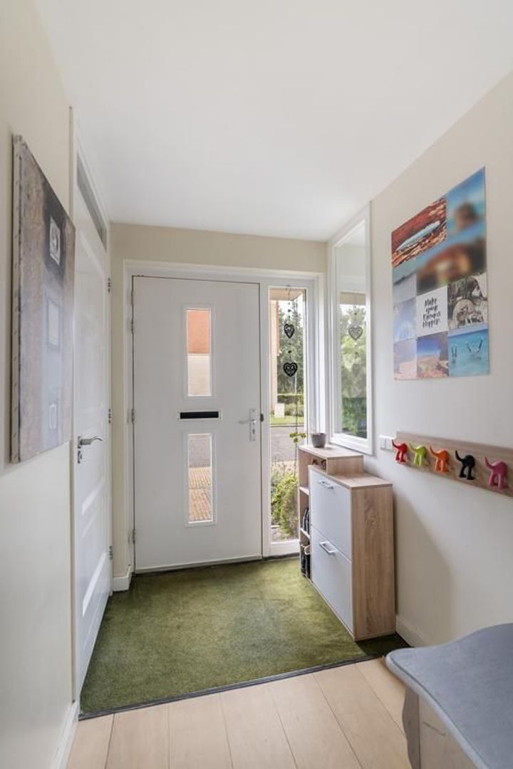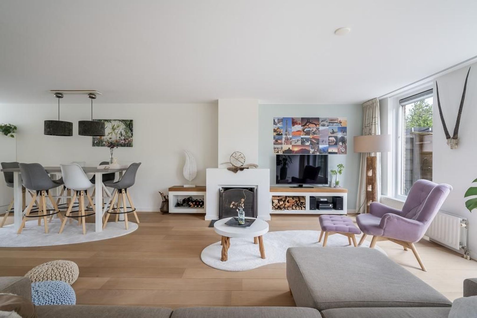 Fraai aangelegde en keurig verzorgde voortuin met eigen oprit; entree woning; ruime hal met meterkast; toilet met fonteintje; trapopgang en deur naar de extra brede woonkamer; de woonkamer heeft zeer veel prettige lichtinval en kent een natuurlijke en rustige uitstraling. De woonkamer grenst aan de open keuken, geplaatst in een hoekopstelling en voorzien van diverse inbouwapparatuur.