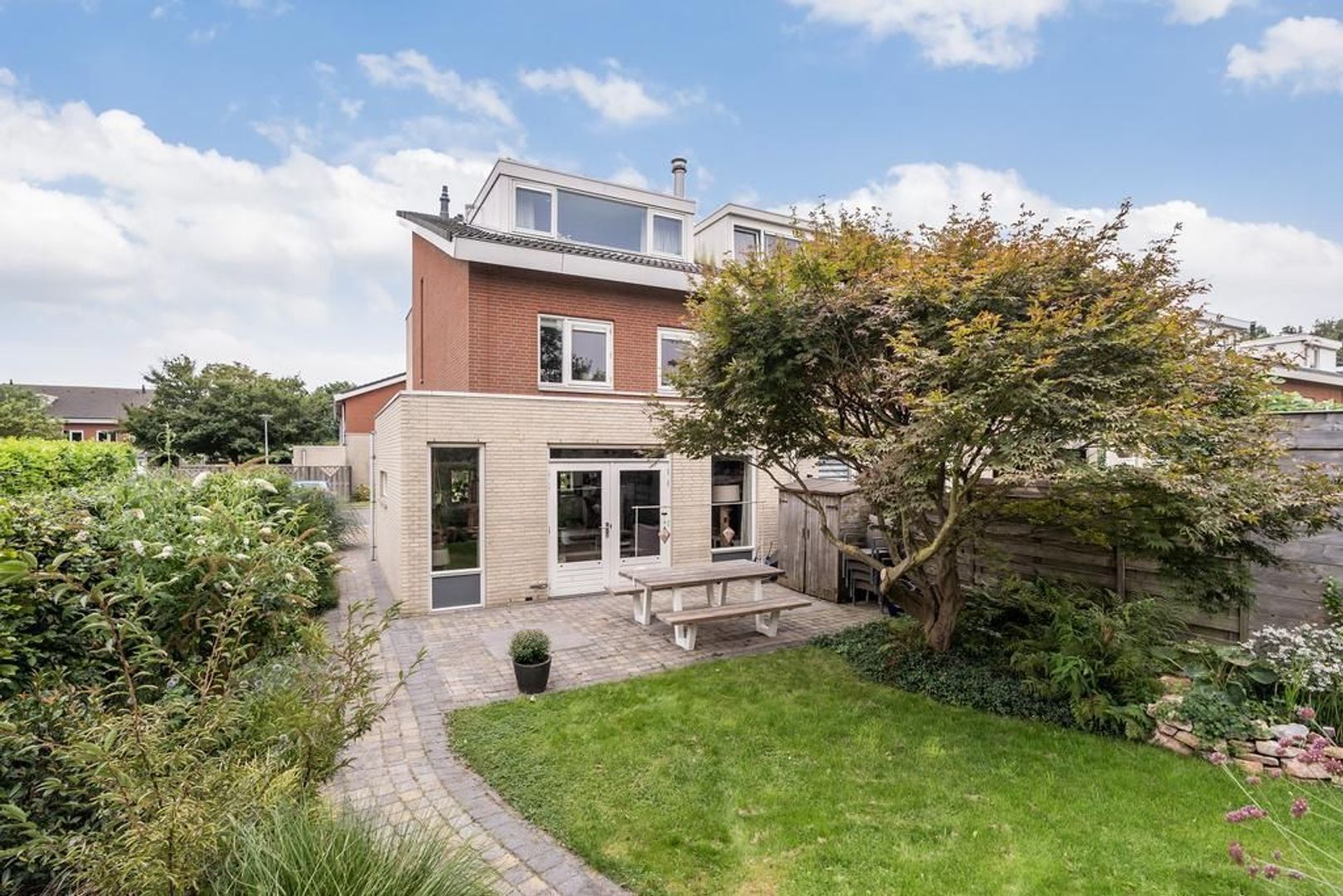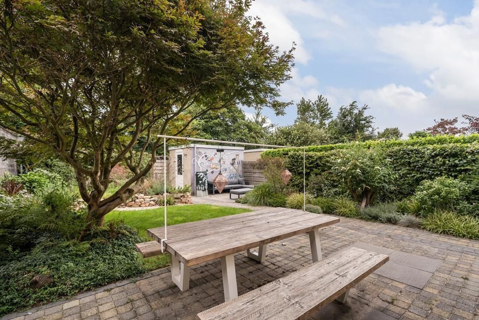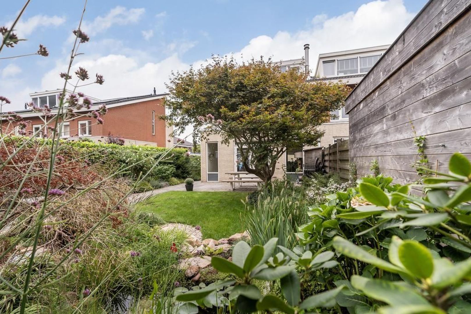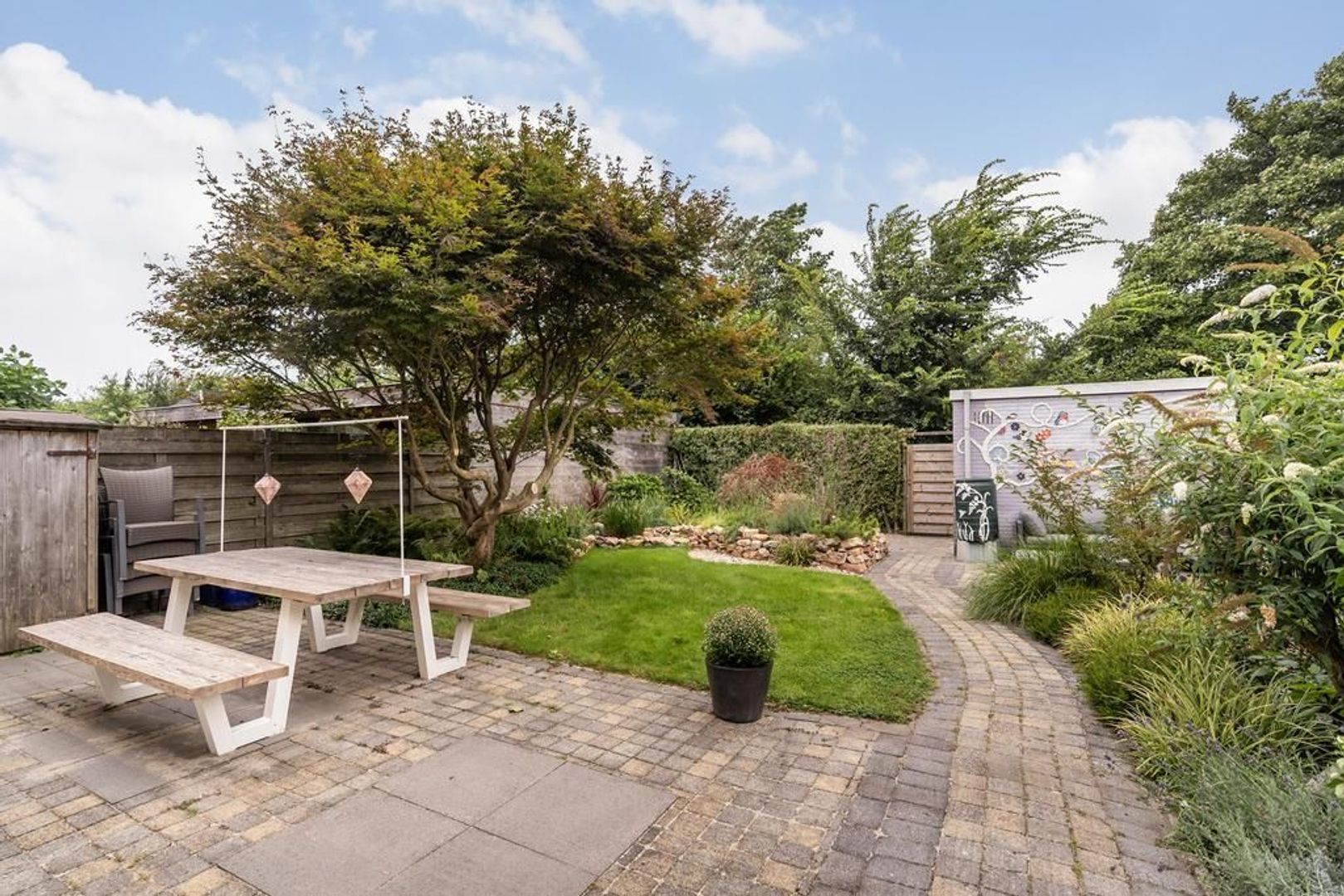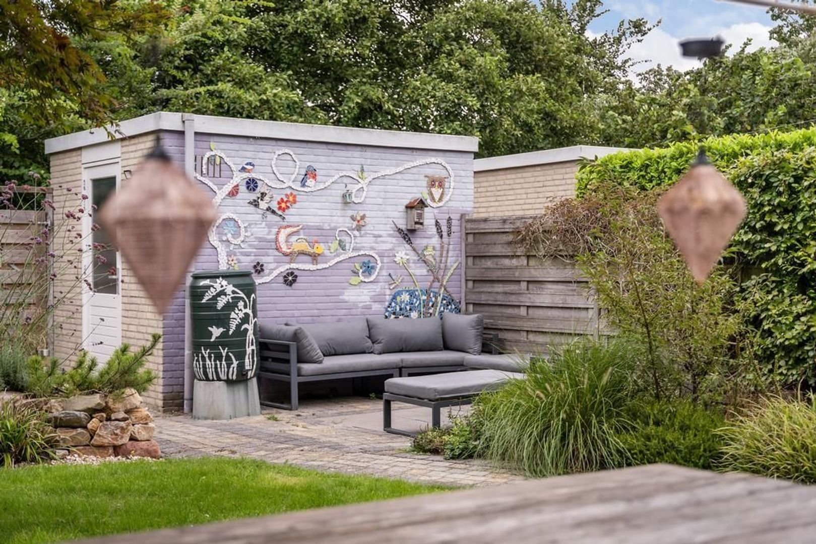 Vanuit de woonkamer geven openslaande deuren toegang tot de riante achtertuin, een heerlijks stukje eigen natuur gelegen op het noordoosten omgeven door groen. Door de ruimte en de hoekligging heeft de tuin op elk gewenst moment van de dag een plek in de zon of juist in de schaduw. De achtertuin beschikt tevens over een ruime, stenen berging en achterom. Achter de achtertuin ligt een groenstrook met doorgaand vaarwater.