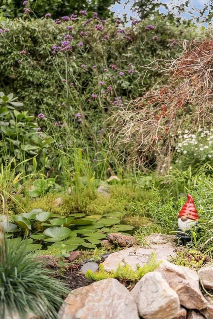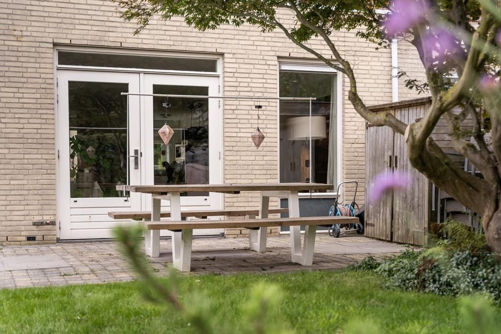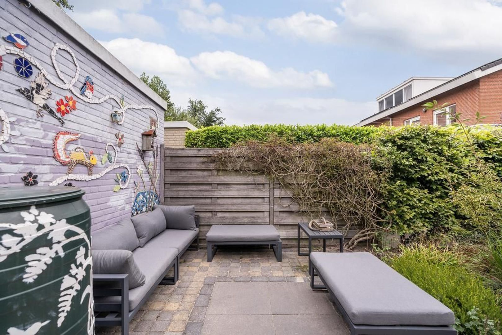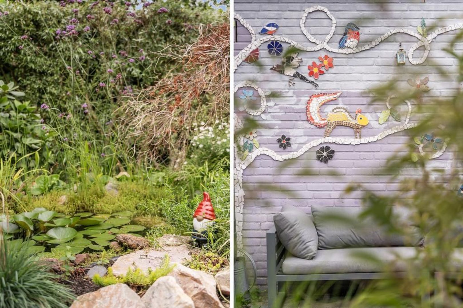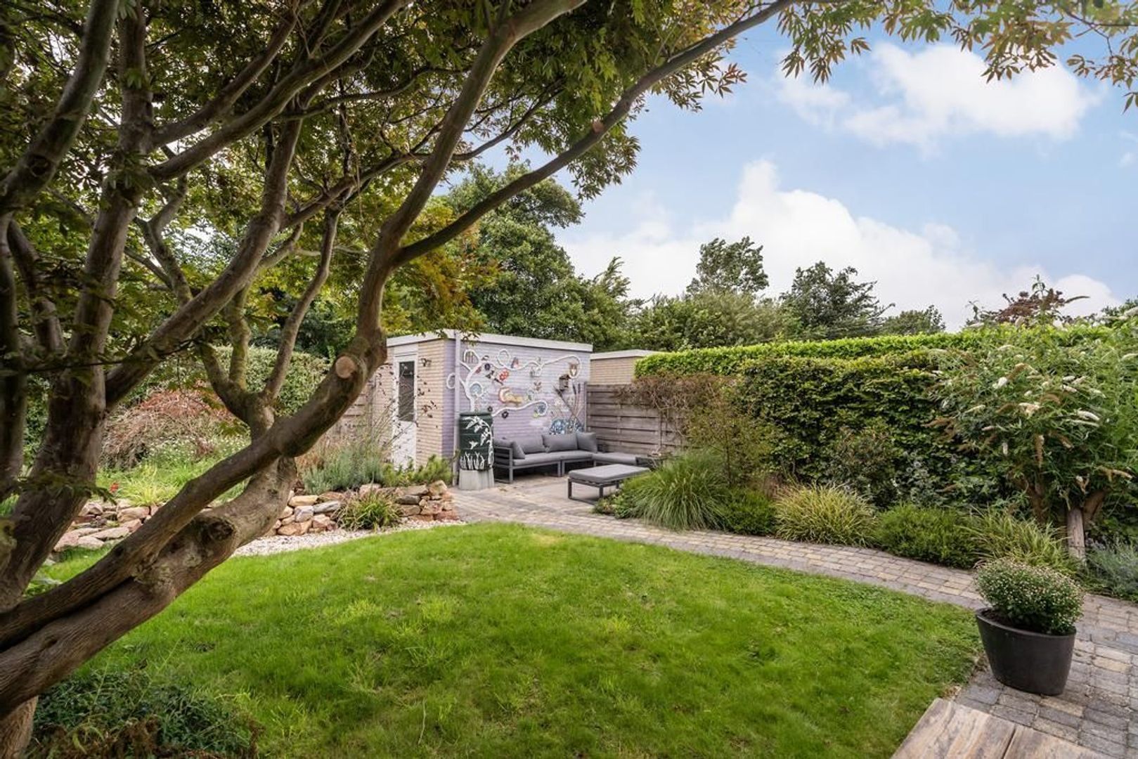 Vanuit de woonkamer geven openslaande deuren toegang tot de riante achtertuin, een heerlijks stukje eigen natuur gelegen op het noordoosten omgeven door groen. Door de ruimte en de hoekligging heeft de tuin op elk gewenst moment van de dag een plek in de zon of juist in de schaduw. De achtertuin beschikt tevens over een ruime, stenen berging en achterom. Achter de achtertuin ligt een groenstrook met doorgaand vaarwater.