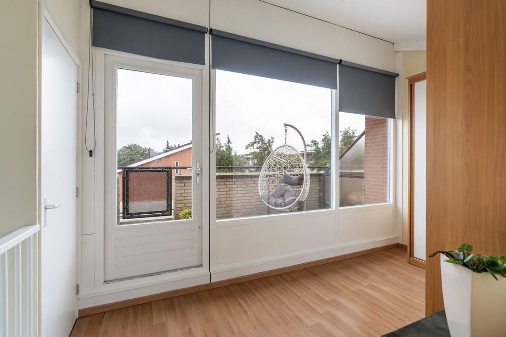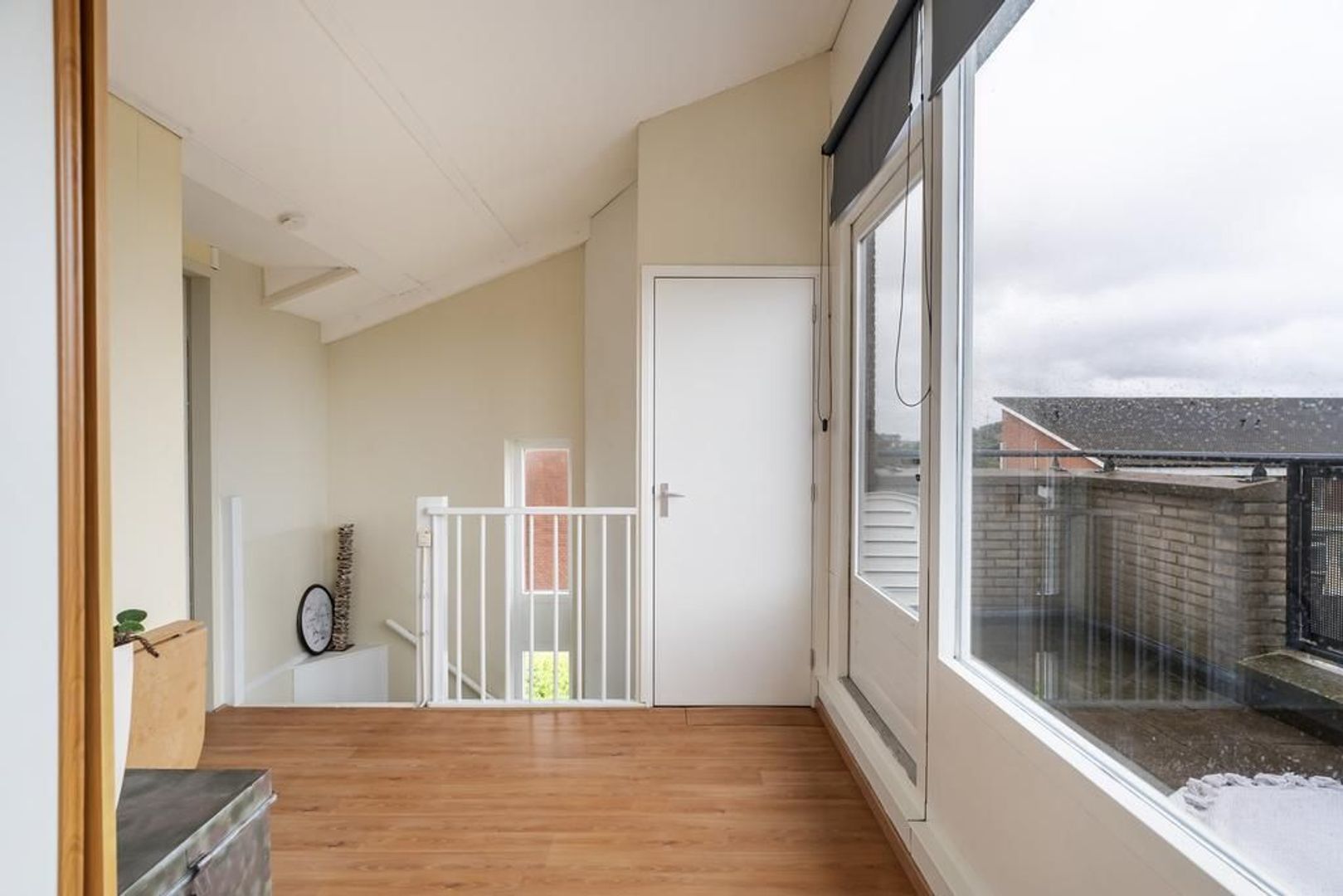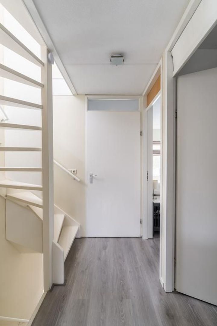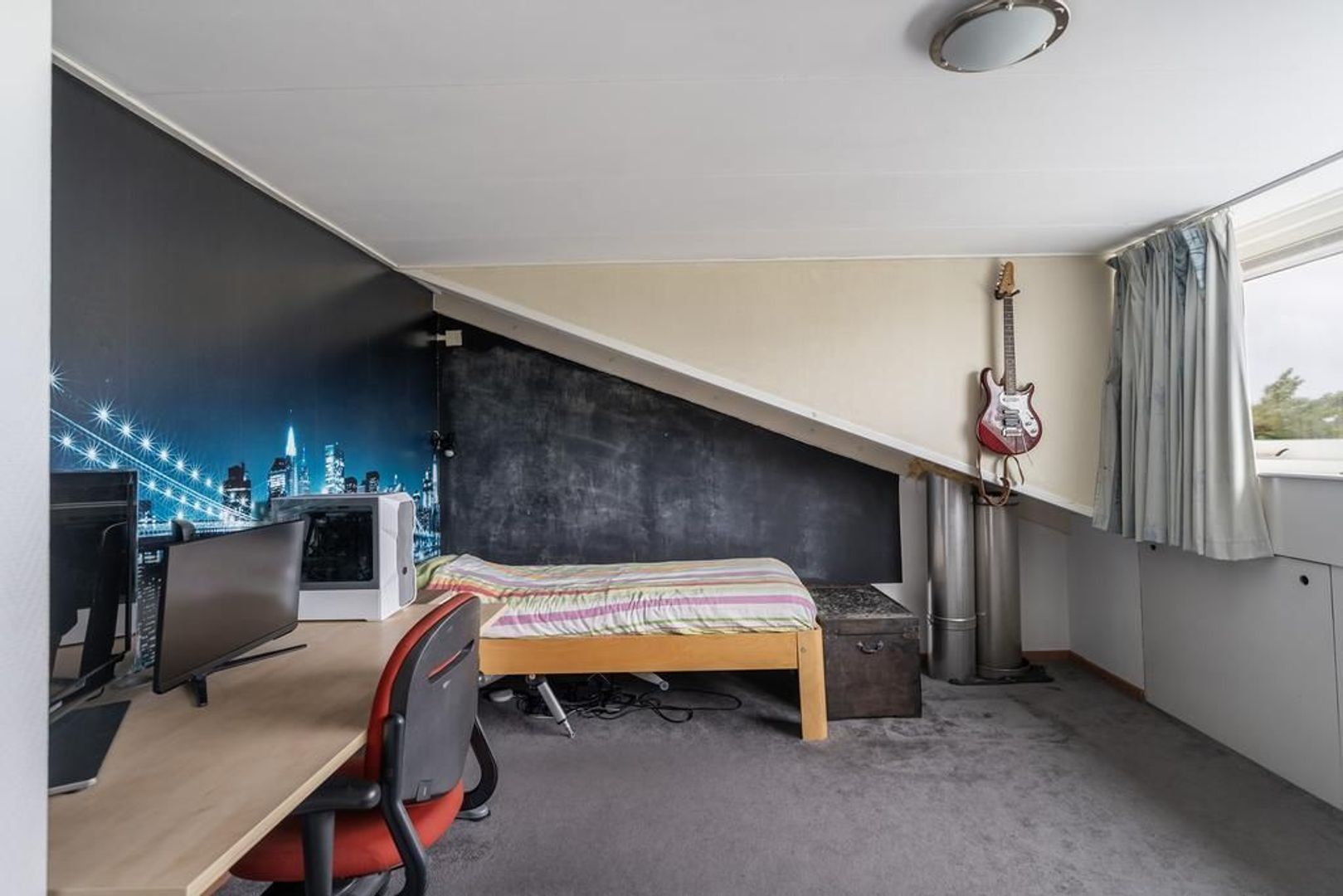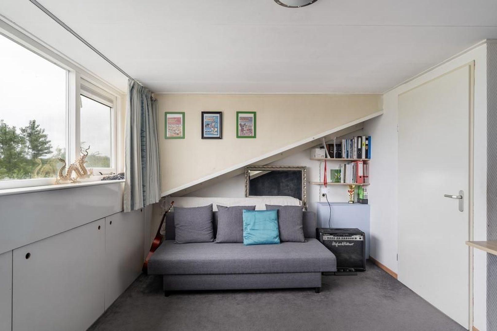Via een vaste trap bereikt u de zolderetage; riante overloop (eventueel mogelijk hier eenvoudig een extra slaapkamer te creëren) met toegang tot een ruim en zonnig dakterras; ruime slaapkamer aan de achterzijde met zeer veel opbergruimte achter knieschotten.