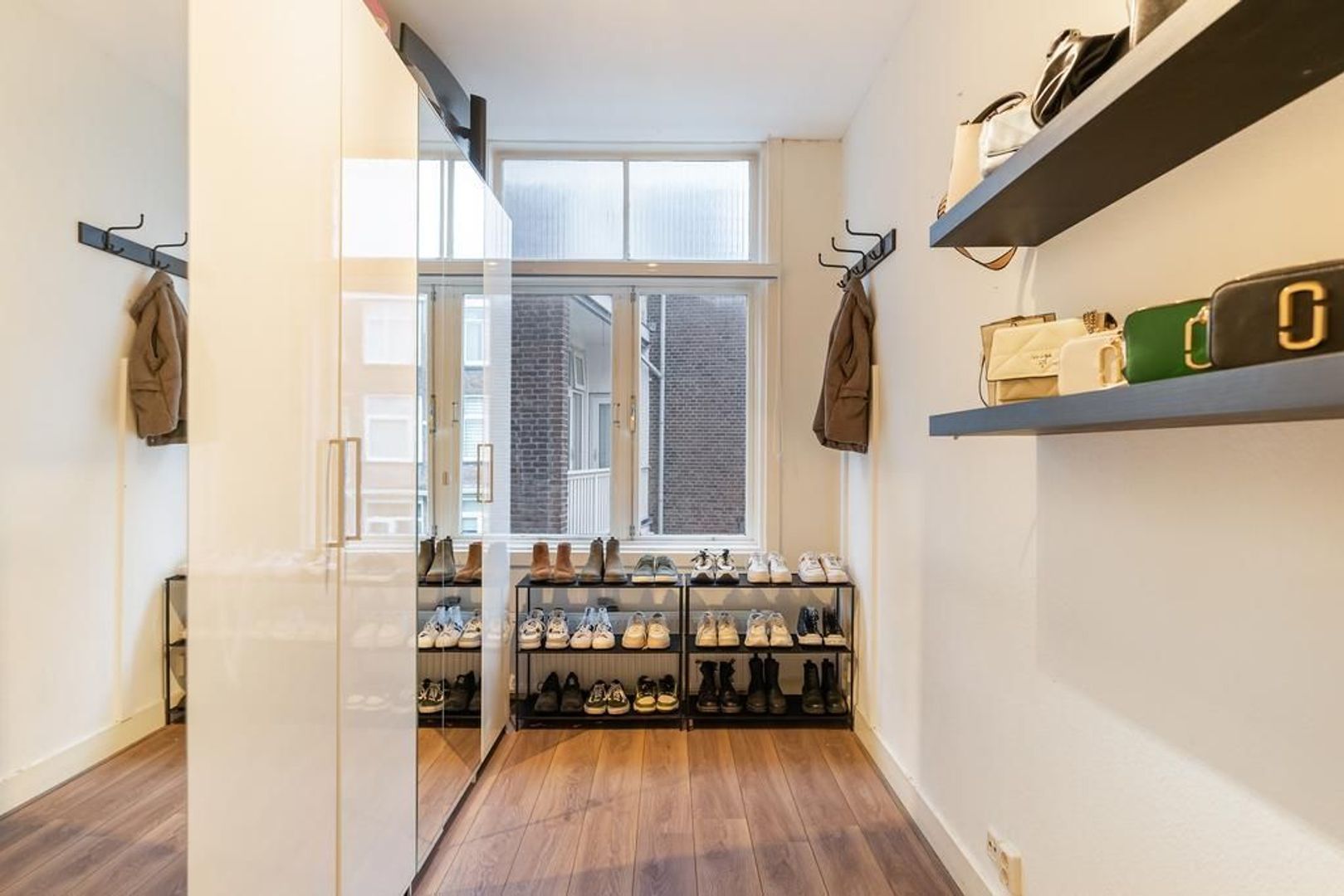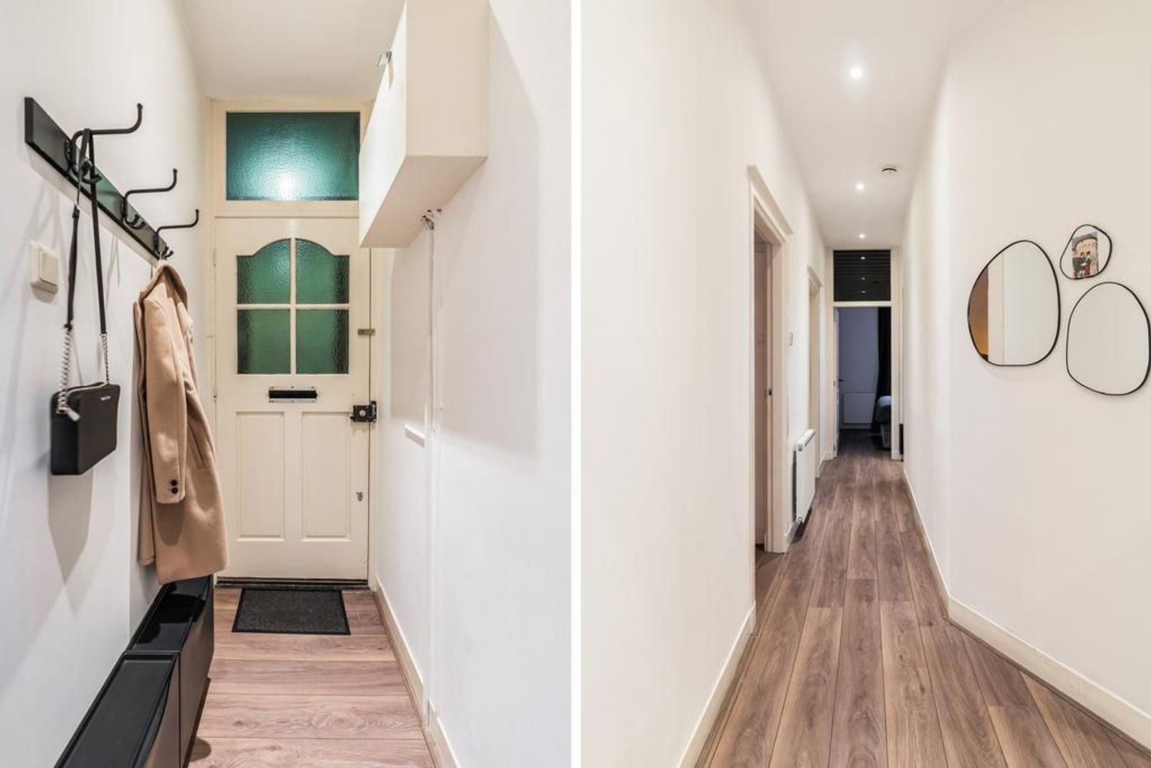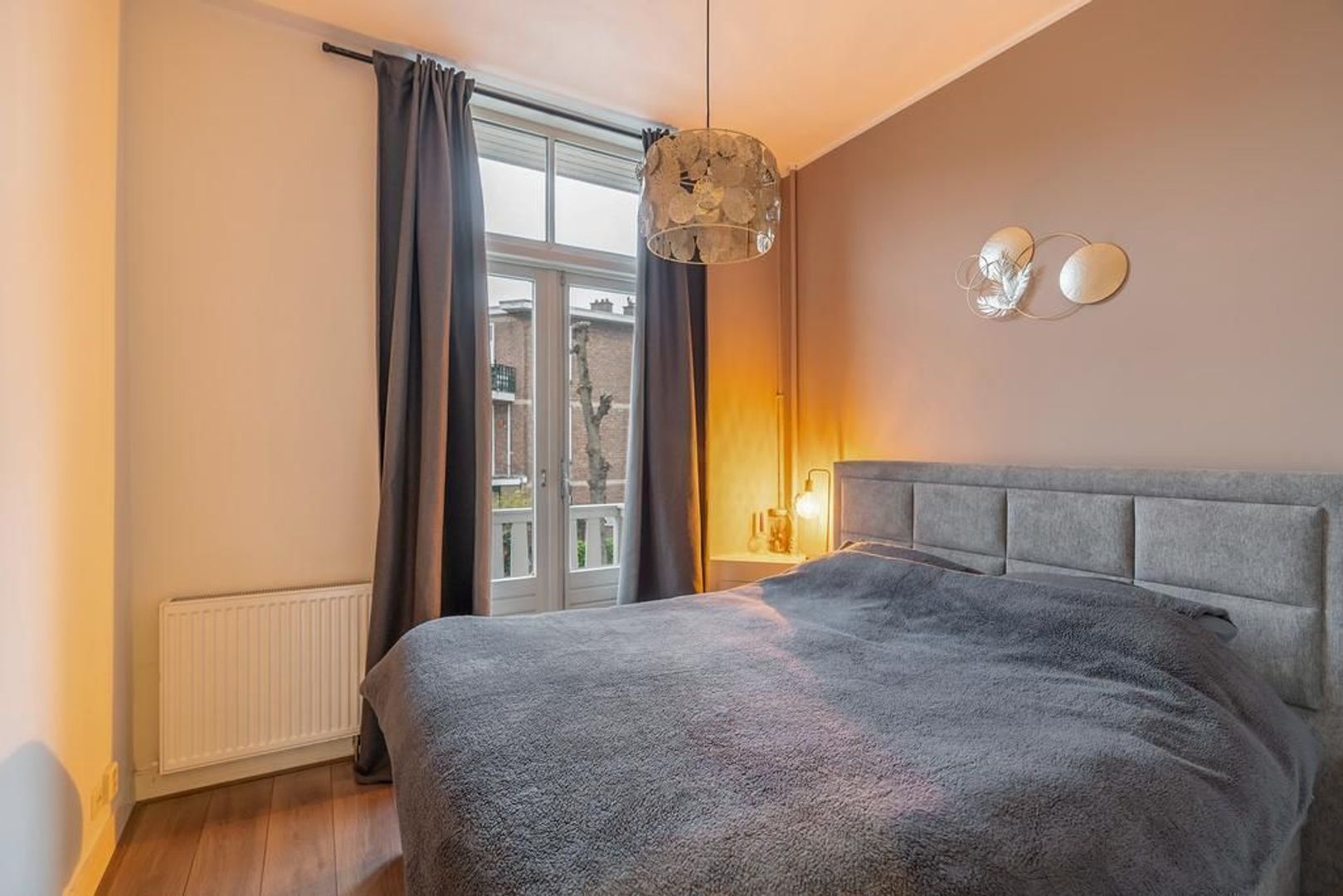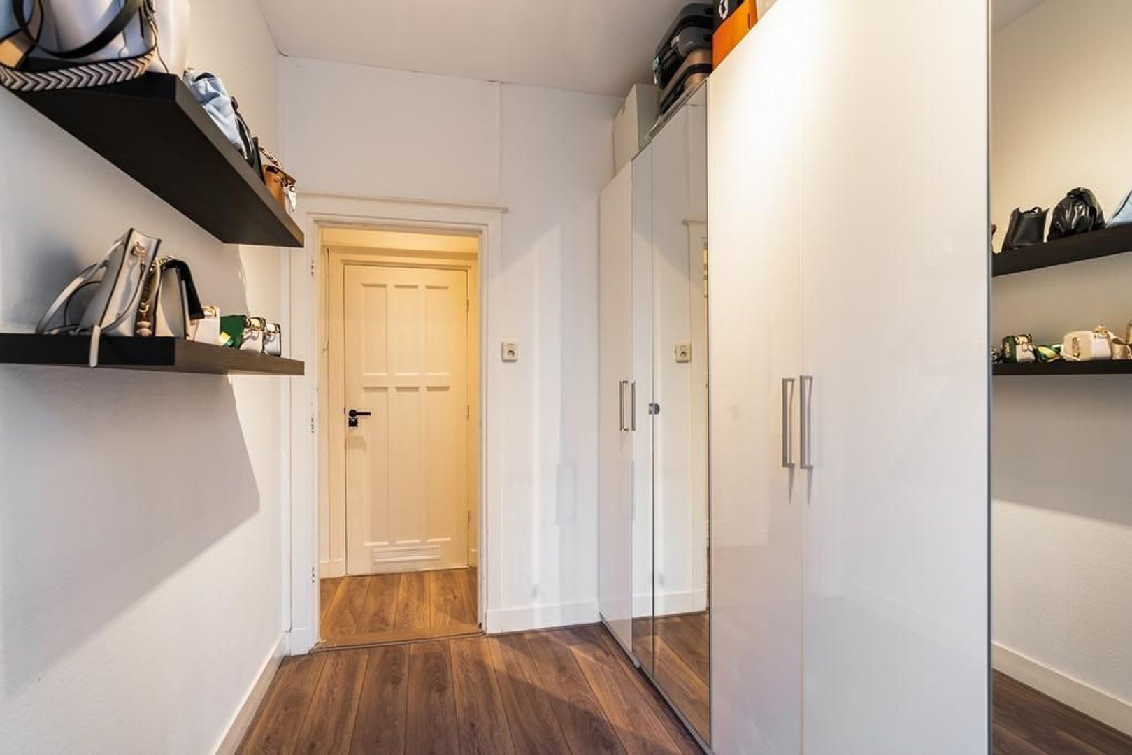Entree op de 1e etage via open portiek; gang met vaste kast met de opstelplaats wasmachine en wasdroger; Fraaie kamer en suite met erkerkozijn aan de voorzijde, schuifseparatie met vaste kasten en openslaande deuren naar het beschut gelegen balkon aan de achterzijde (noordoost ligging). Slaapkamer aan de voorzijde met openslaande deuren naar het voorbalkonnetje (zuidwest ligging). Slaapkamer aan de achterzijde. Moderne badkamer met grote, lichtgrijze en witte tegels. Inloopdouche met thermostaatkraan, wastafel, spiegelkast, wandcloset en mechanische ventilatie.