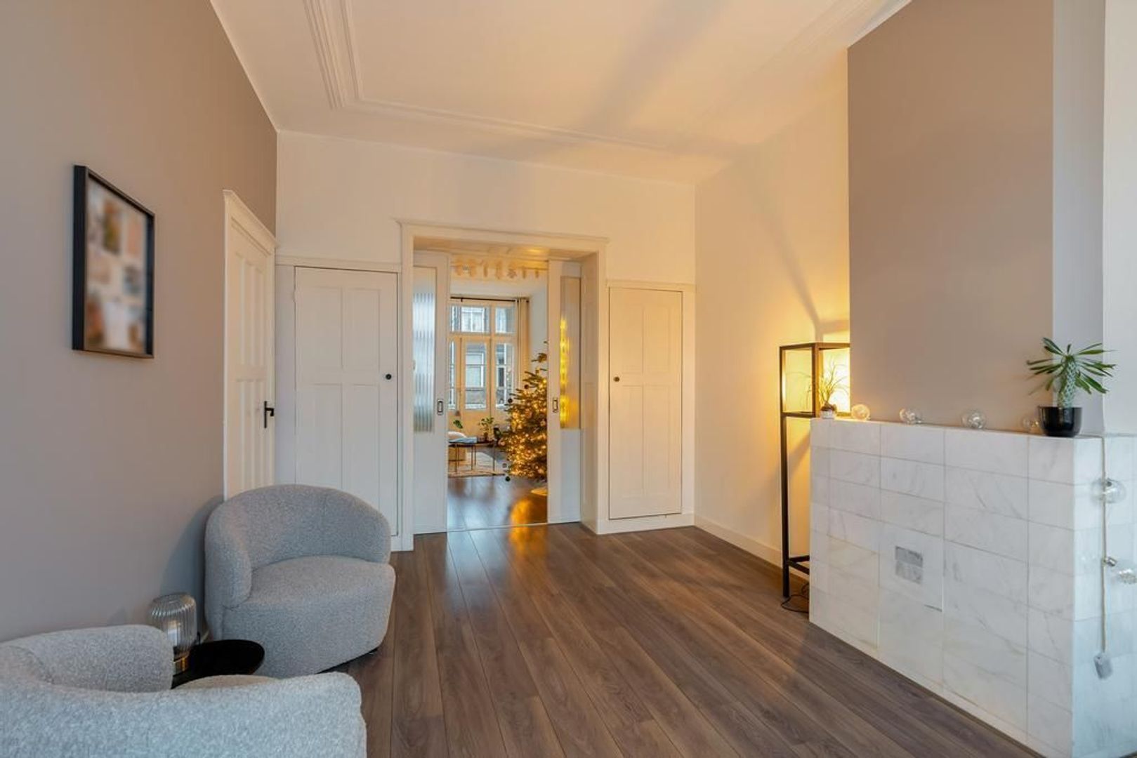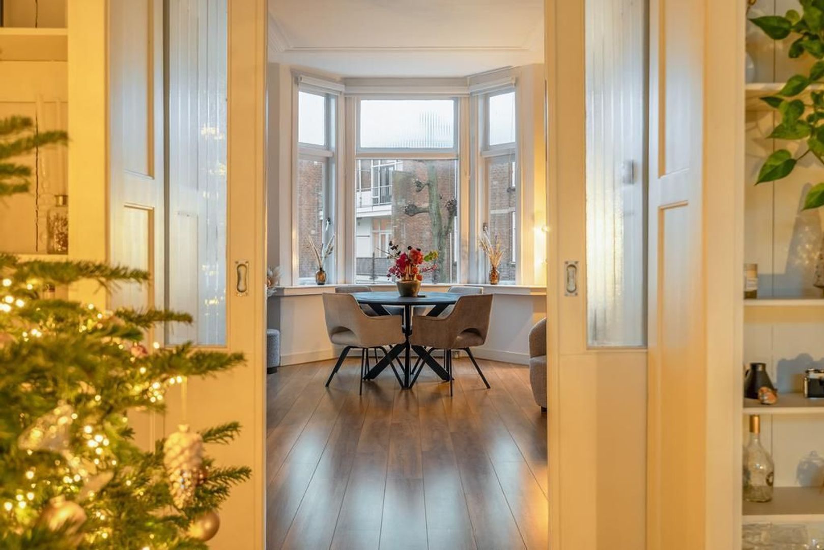 Oud Rijswijk. Op de 1e verdieping gelegen keurig verzorgd jaren '30 appartement ( ca 83m²) met veel originele stijlelementen zoals de schuifseparatie, hoge plafonds met sierlijsten en paneeldeuren maar wel met een moderne keuken en sanitair. Balkon aan de voor- en achterzijde waardoor er altijd een zonnig of schaduwrijk plekje is.