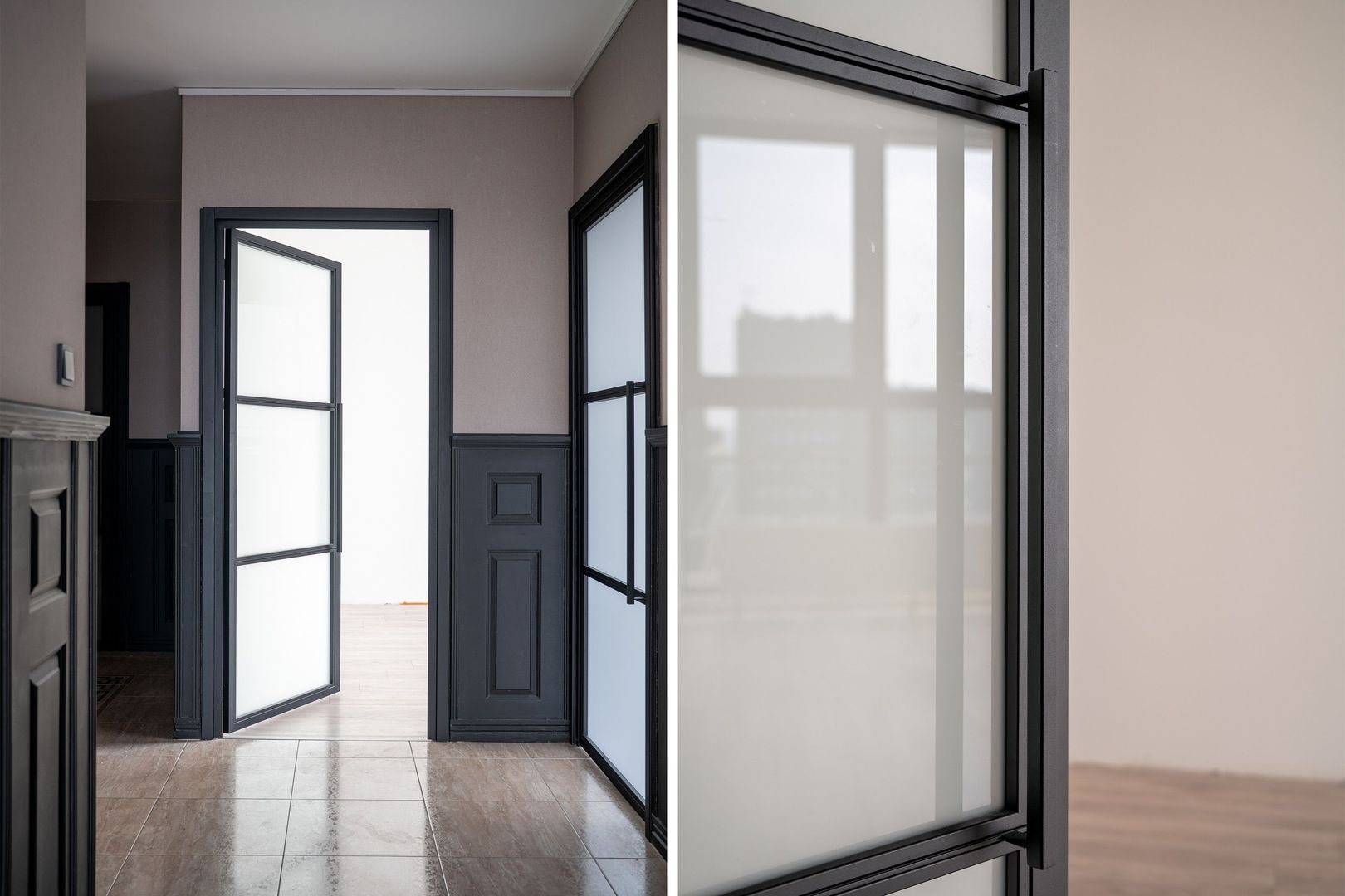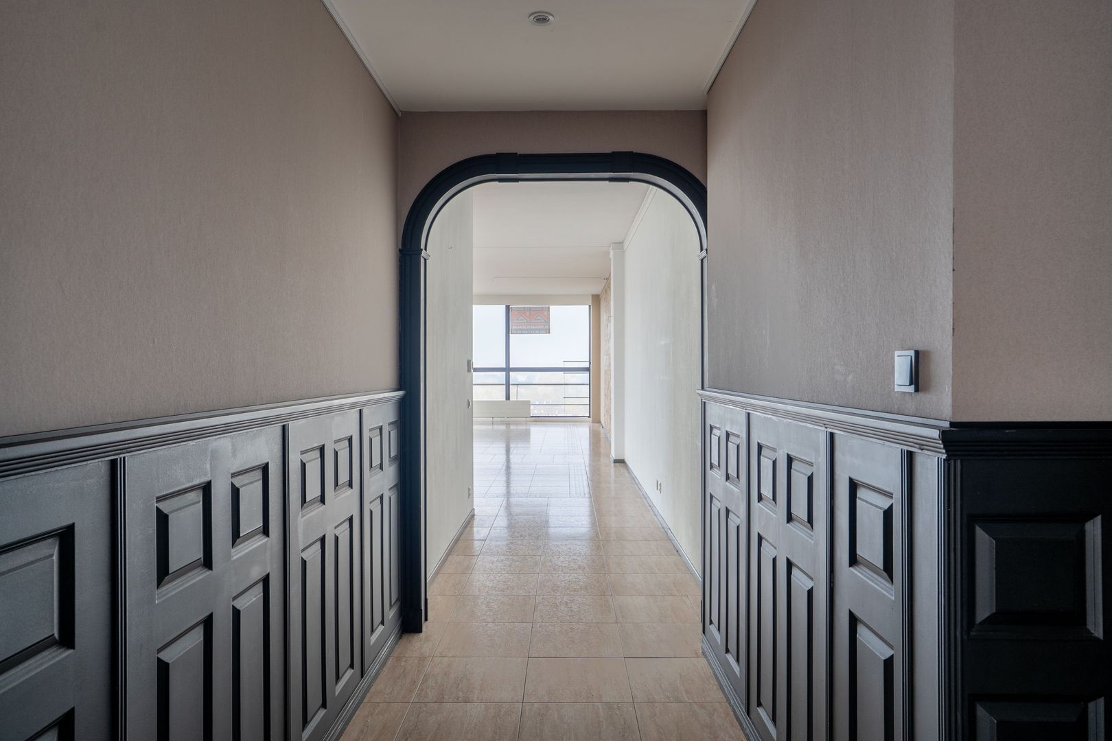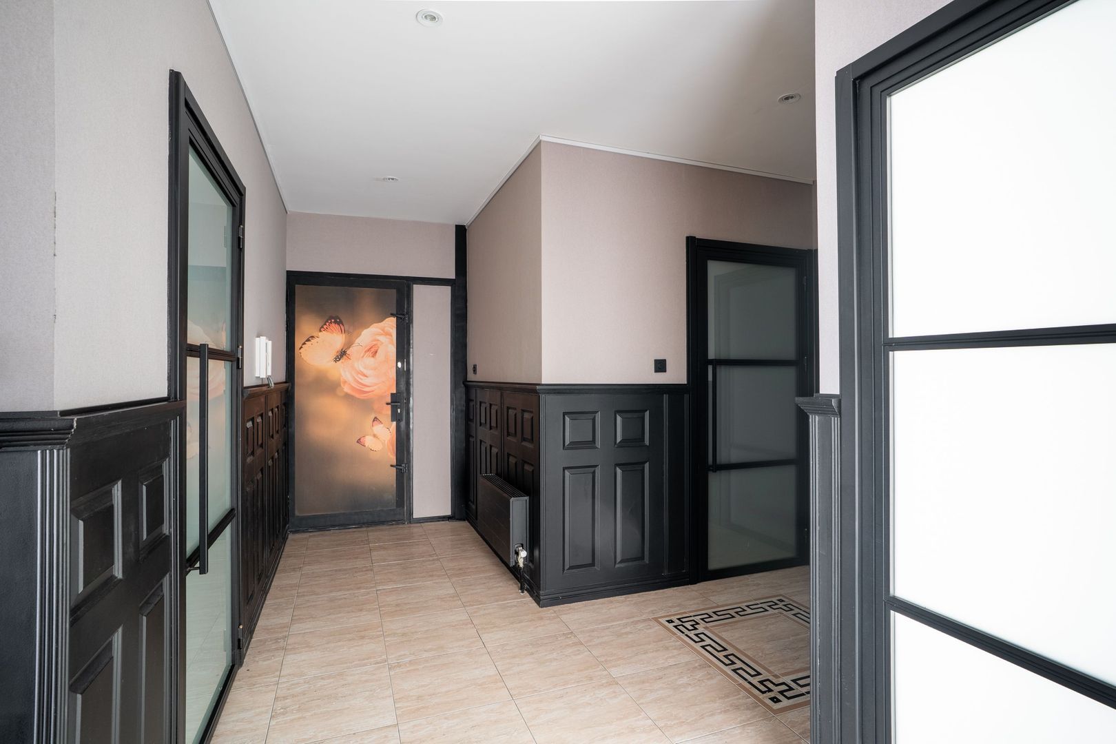 Vanuit de lifthal toegang tot een extra tussenhal met van daaruit de toegang tot het appartement; de binnenhal geeft toegang tot alle ruimtes.