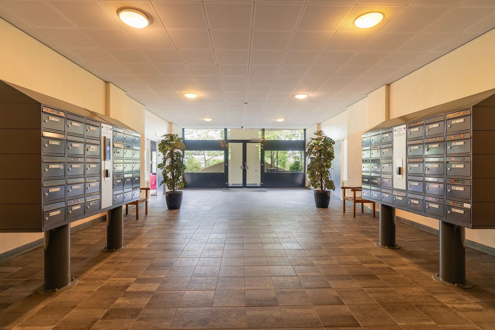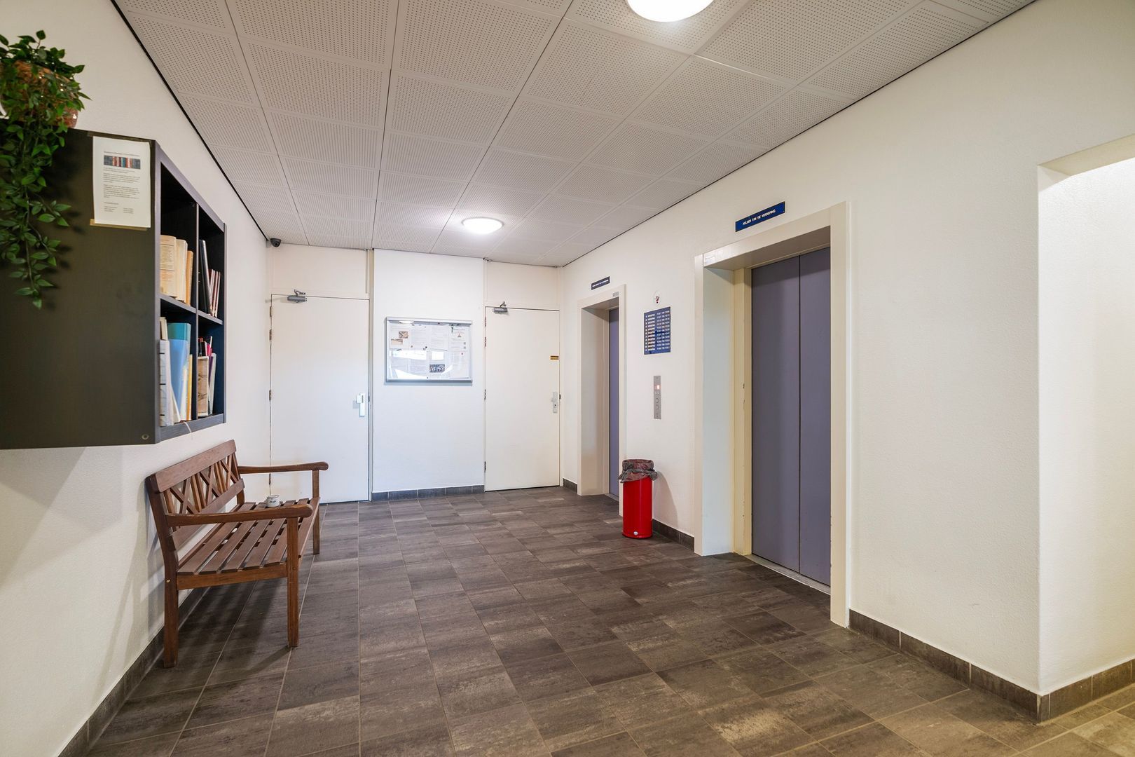 Centrale afgesloten hal met videofoon en toegang naar de appartementen middels twee liften.