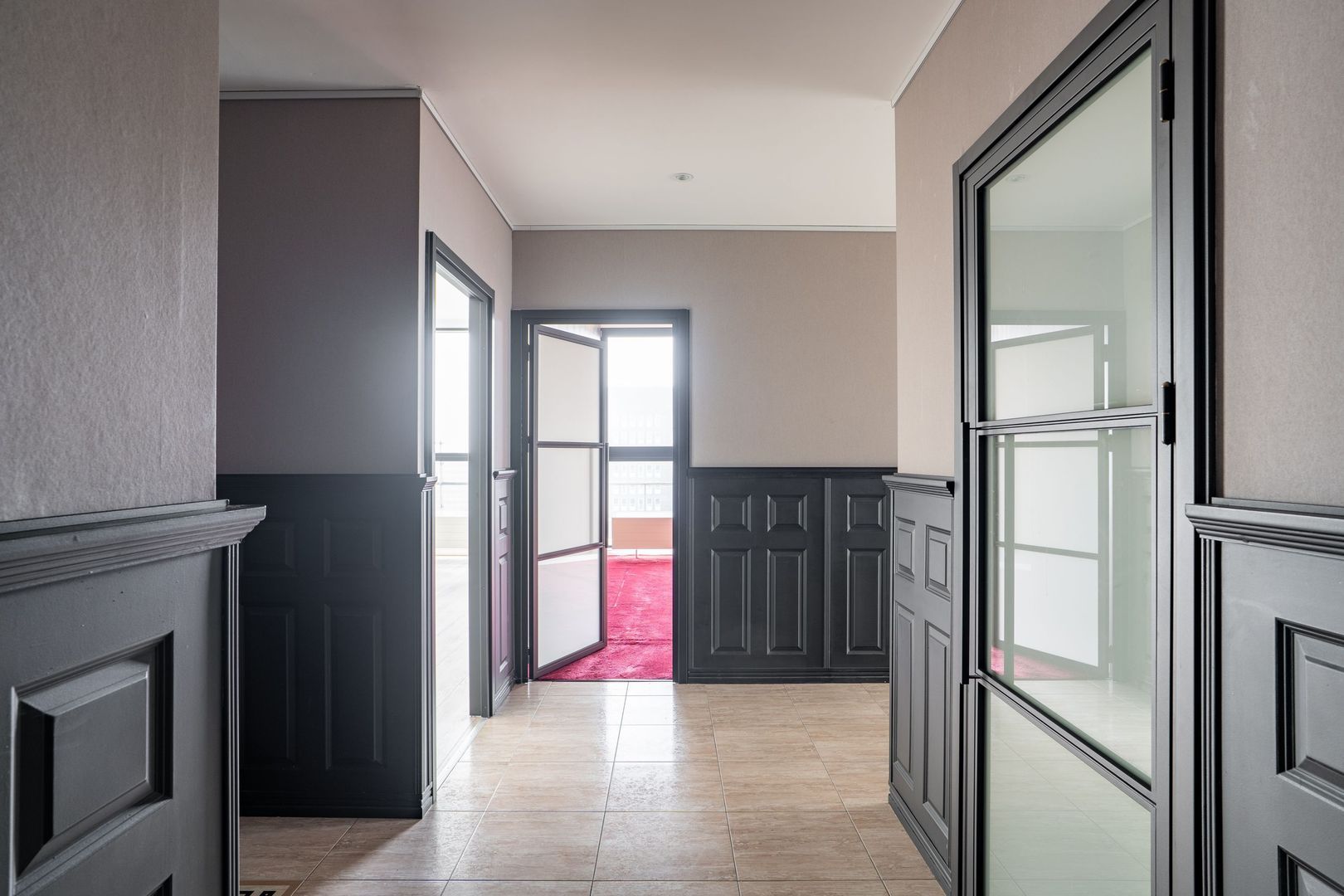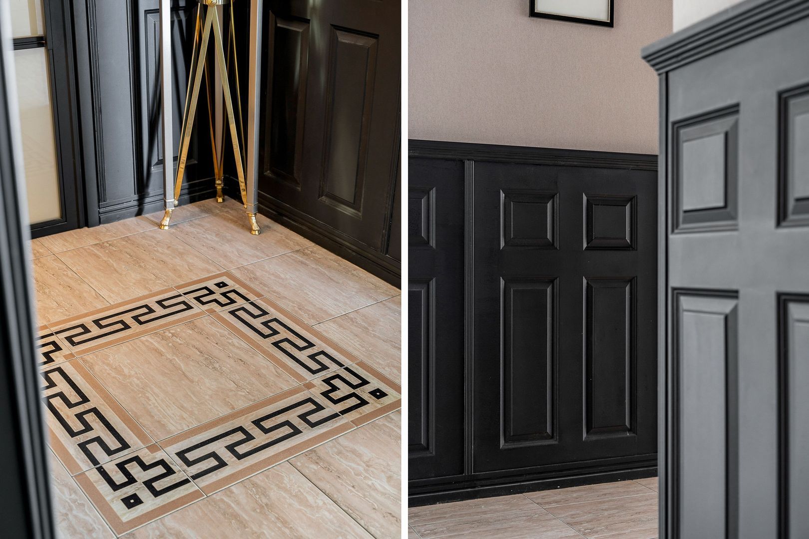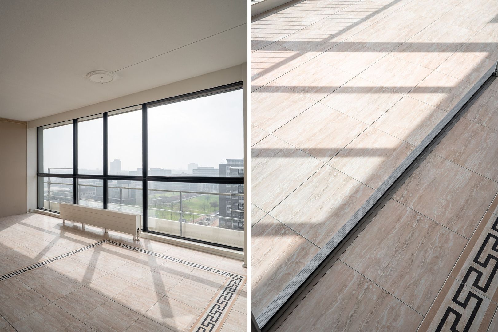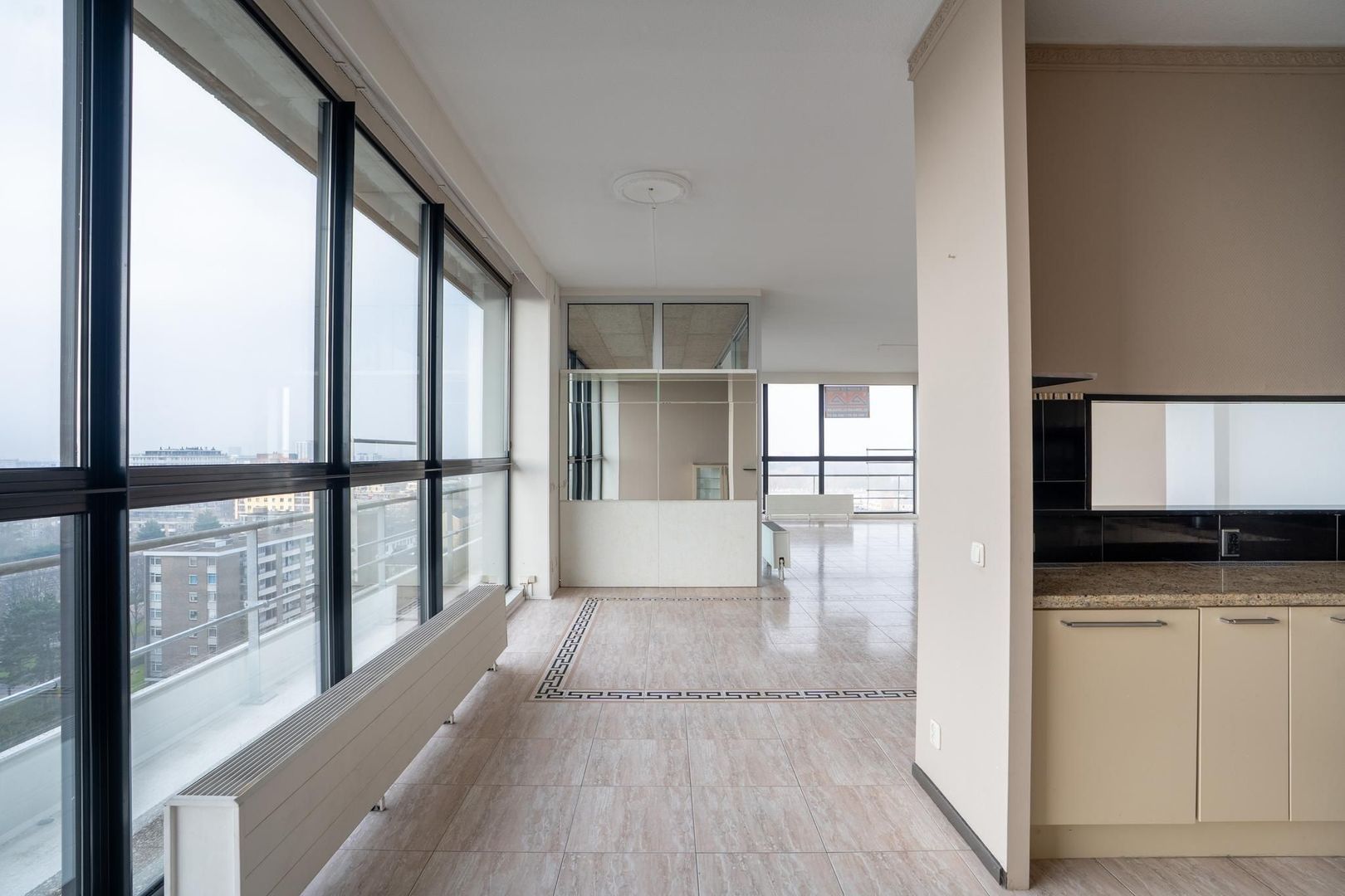 - Woonkamer en hal voorzien van Versace tegelvloer