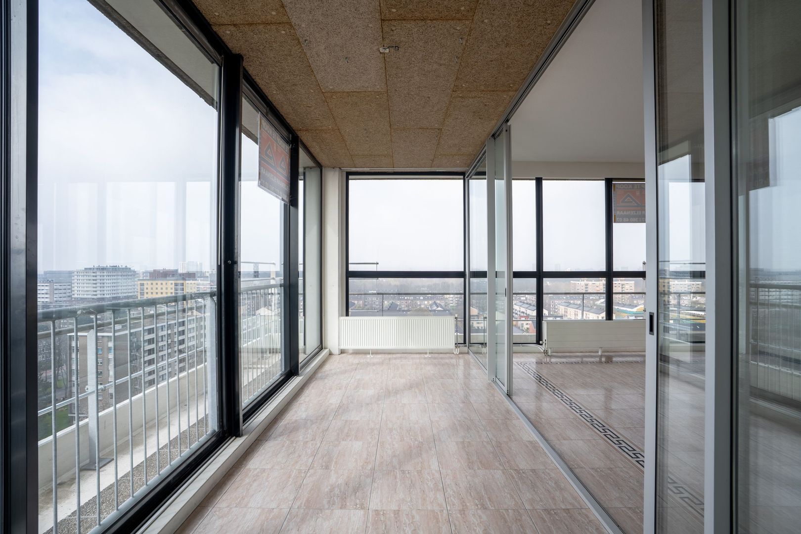 Ook in de woonkamer zit een op het Zuid-Westen georiënteerde serre van ca. 15m2 met verwarming die zowel vanuit de woonkamer als naar buiten een schuifpui heeft. De serre dient daardoor direct als balkon/loggia.