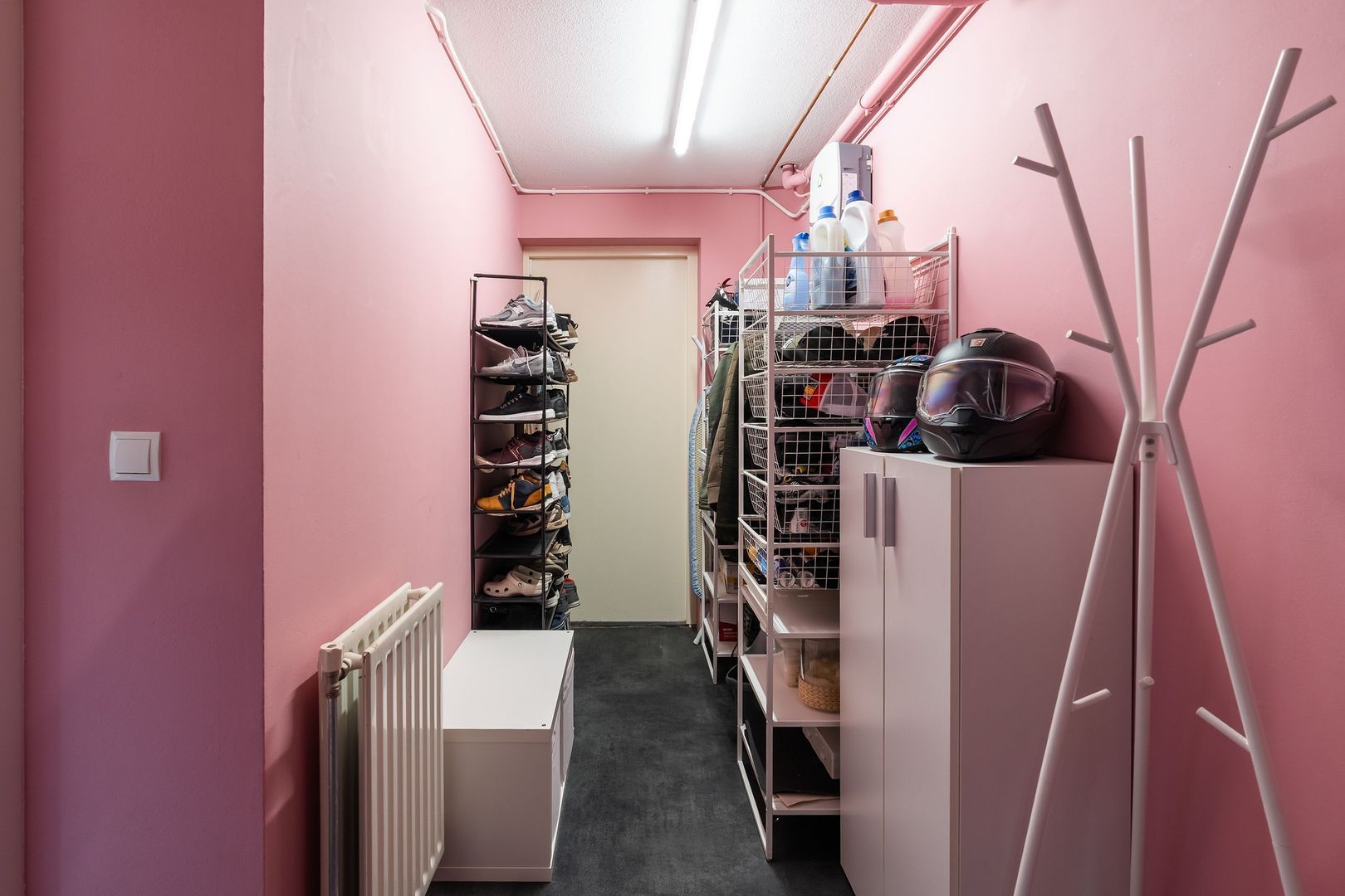 Entree via de voortuin, hal, toilet en fonteintje ruime lichte woonkamer (H=2,47m) met grote raampartijen en toegang naar de voortuin. In de woonkamer bevindt zich de volledig uitgeruste keuken met inbouwapparatuur. Aparte berging met opstelplaats wasmachine.